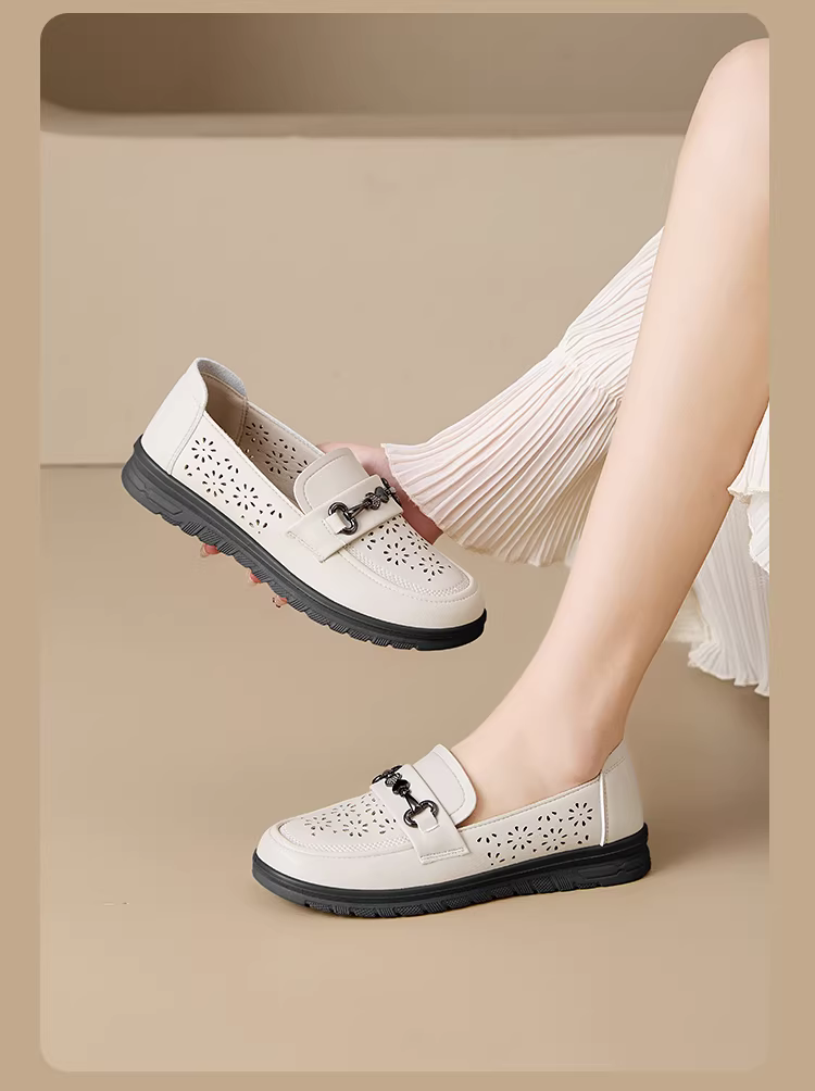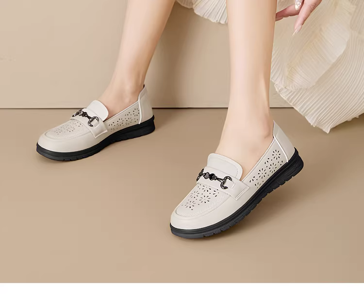 Giày bà ngoại Dadong dành cho phụ nữ trung niên và người già, thoải mái và không gây mệt mỏi, đế mềm, chống trơn trượt, giày đơn khoét lỗ dành cho nữ, thích hợp cho mùa thu, phối cùng váy, giày người già.