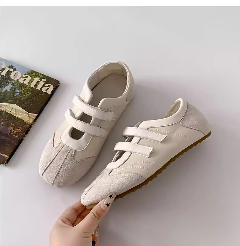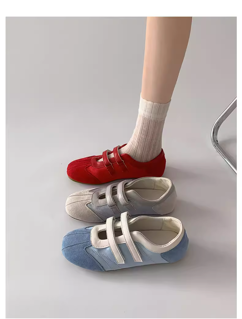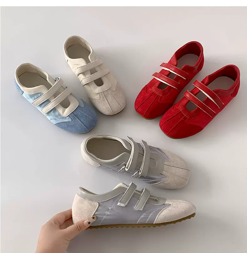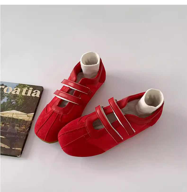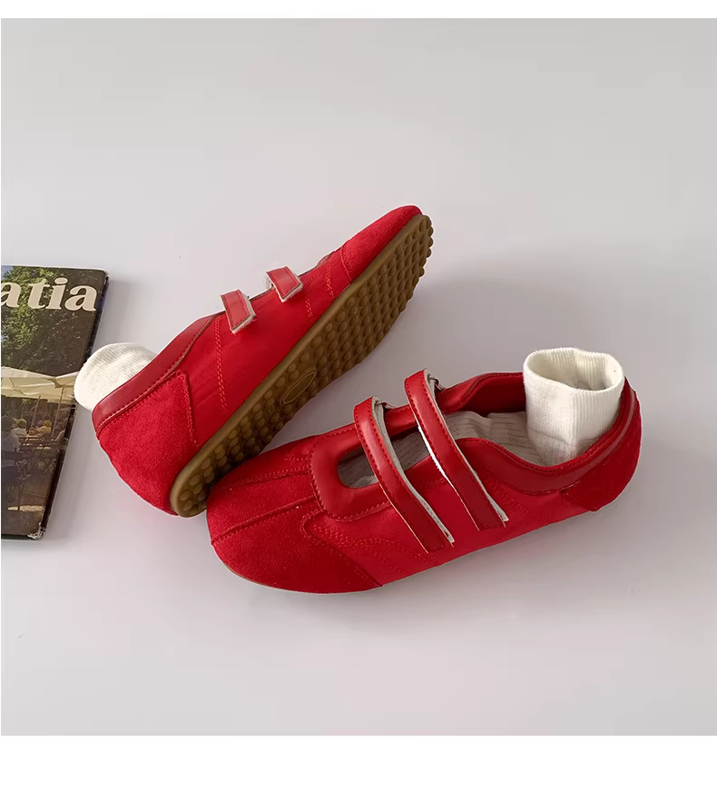 Giày bệt kiểu Mary Jane màu đỏ cổ điển phong cách múa ba lê Pháp dành cho nữ, kiểu mới mùa thu 2025, giày tập luyện thường ngày phối chân váy