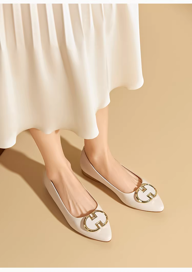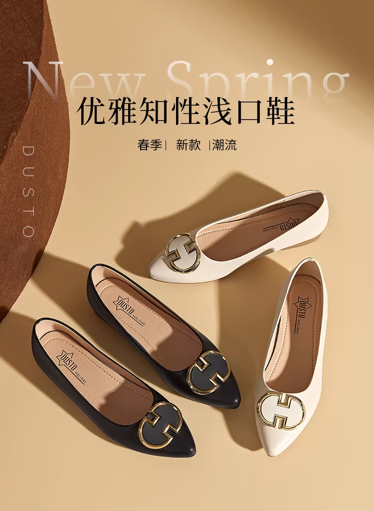 - Giày bệt mũi nhọn Dadong thanh lịch dành cho nữ 2025, mẫu mới mùa thu, đế thấp, đế mềm, kiểu lười, miệng giày nông, giày đi làm, giày nữ