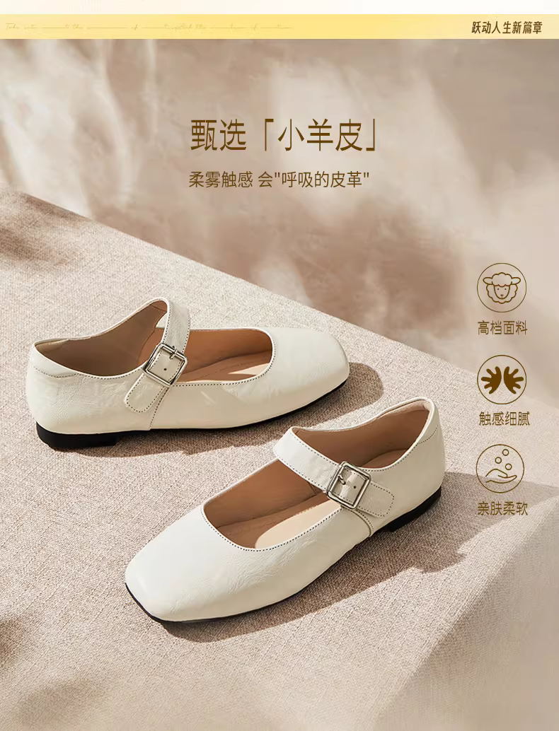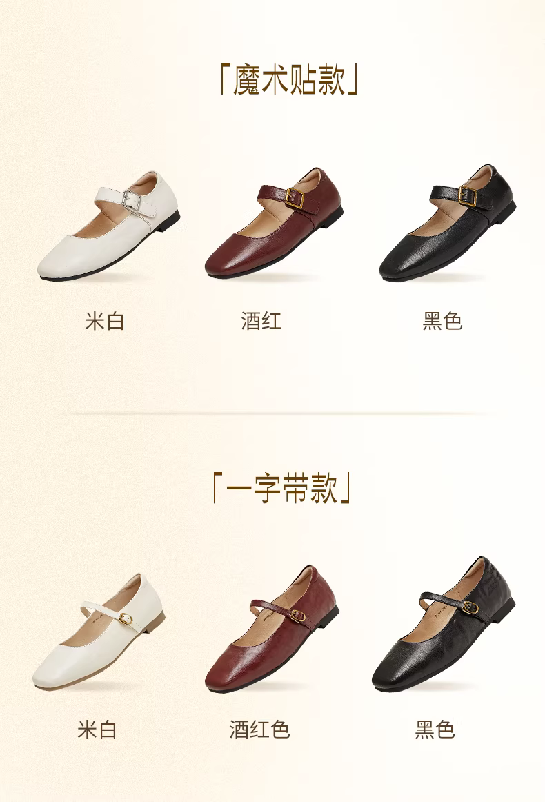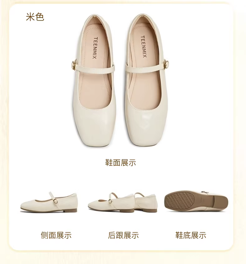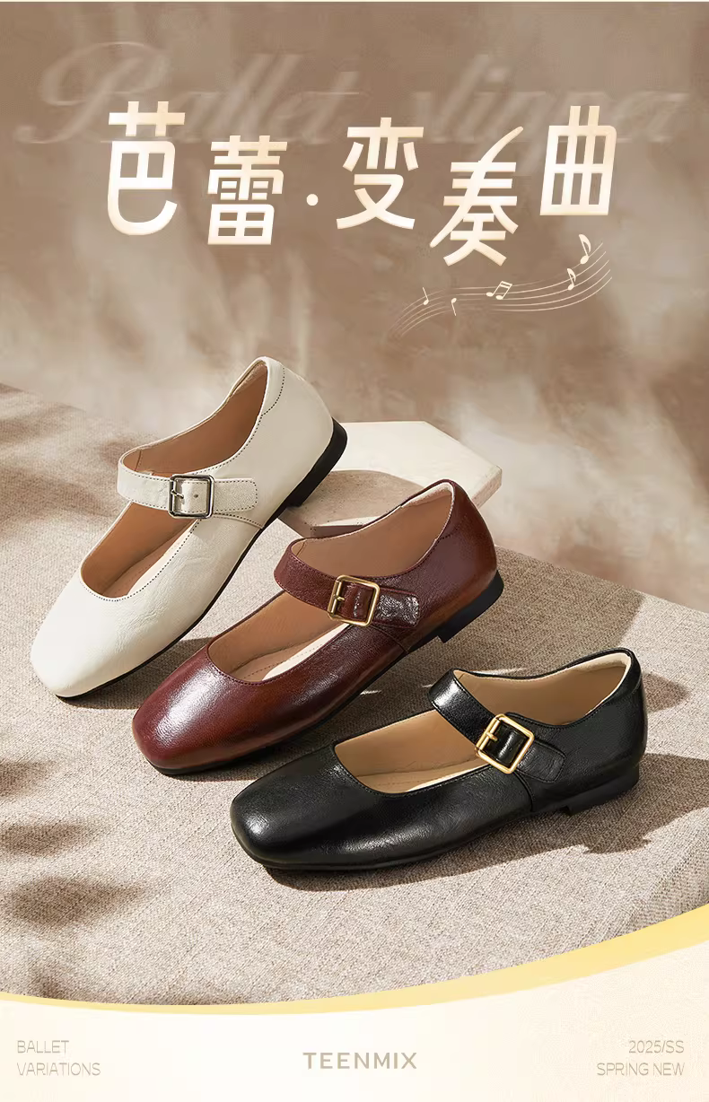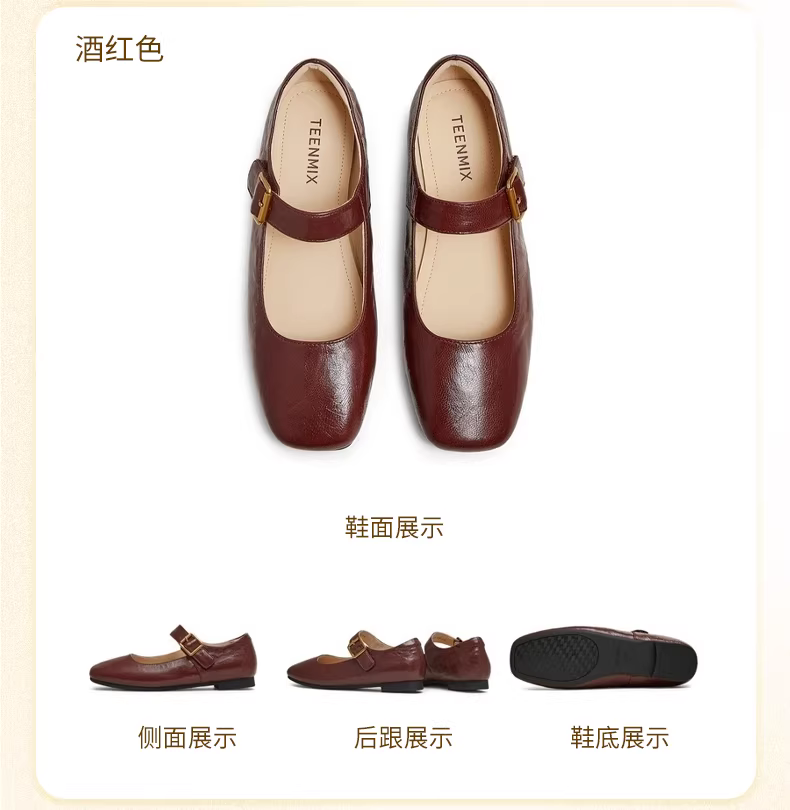 - Giày bệt nữ da Mary Jane kiểu cổ điển đỏ Tianmei Yi Fangtang, đế mềm, miệng giày nông, mẫu mới 2025