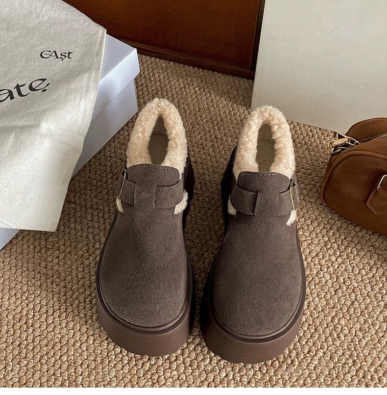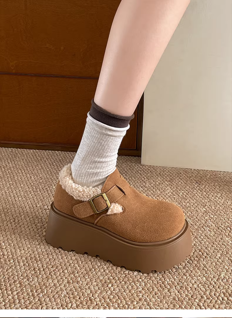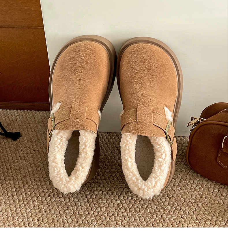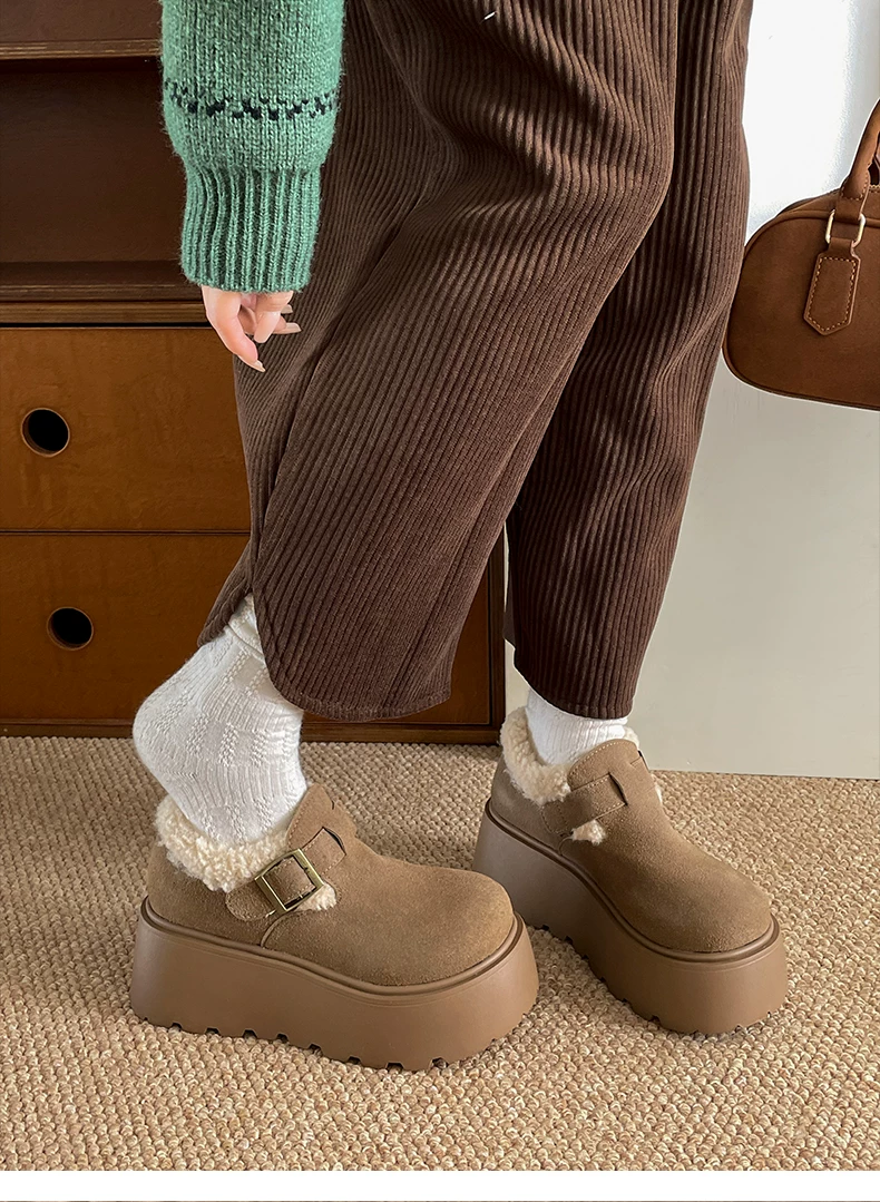 - Giày Birkenstock đế dày cổ điển màu nâu, kiểu quấn toàn bộ, dành cho nữ, mẫu mới thu đông 2025, lót lông ấm áp, chất liệu cotton.