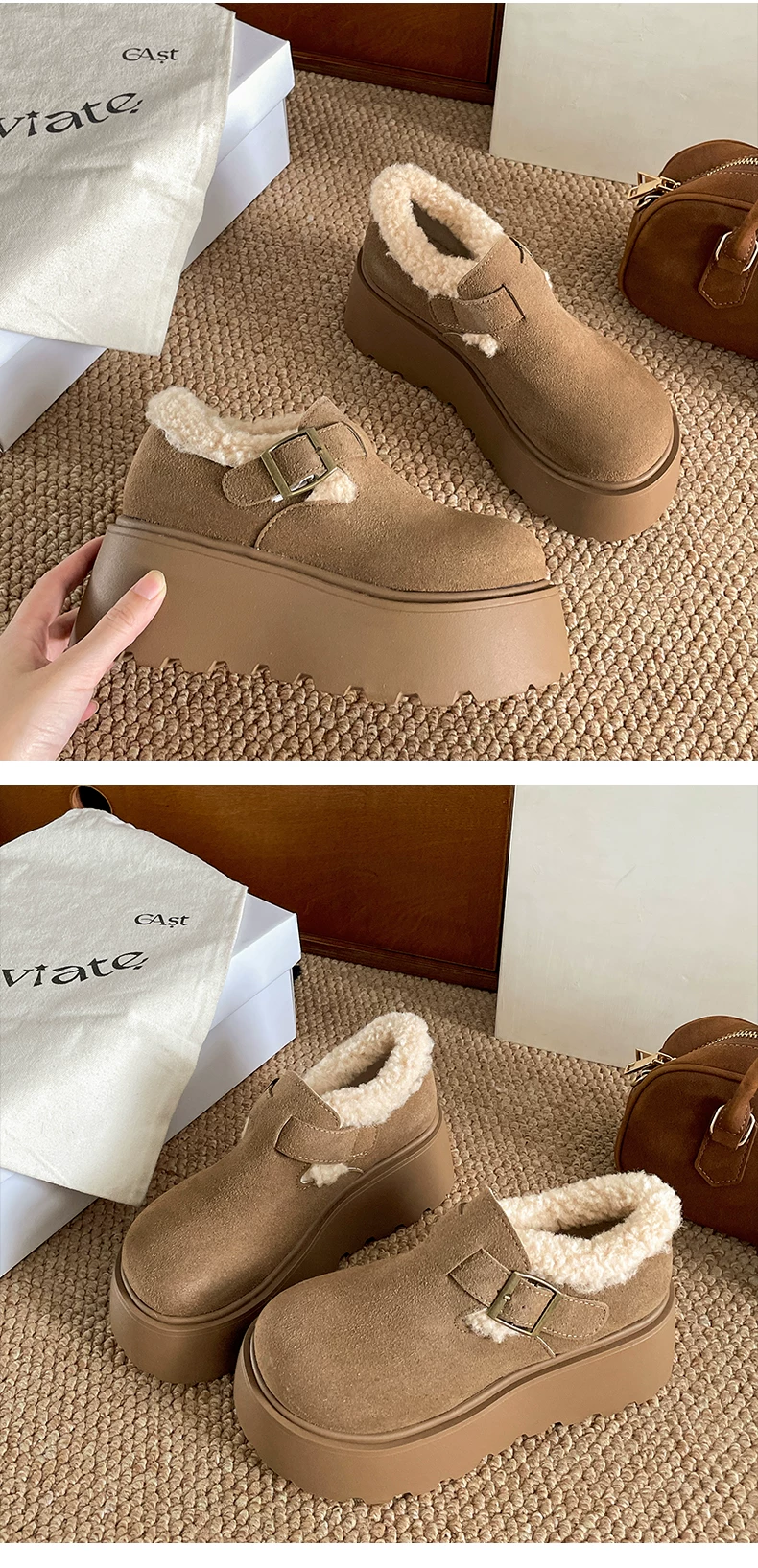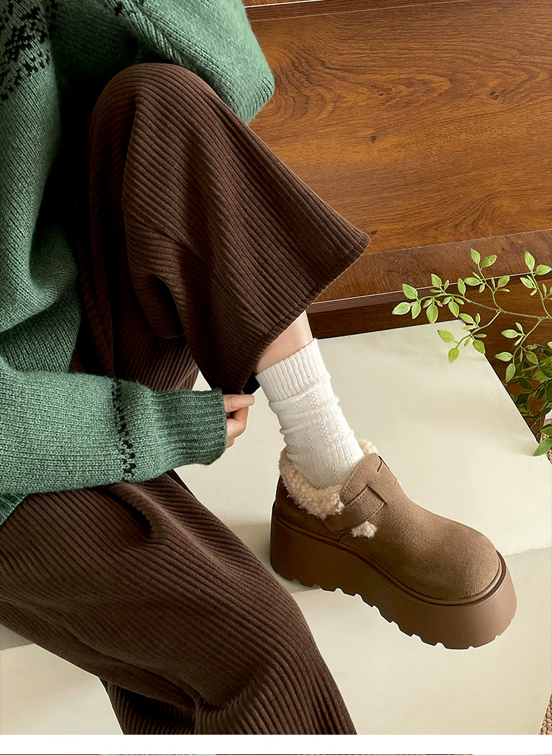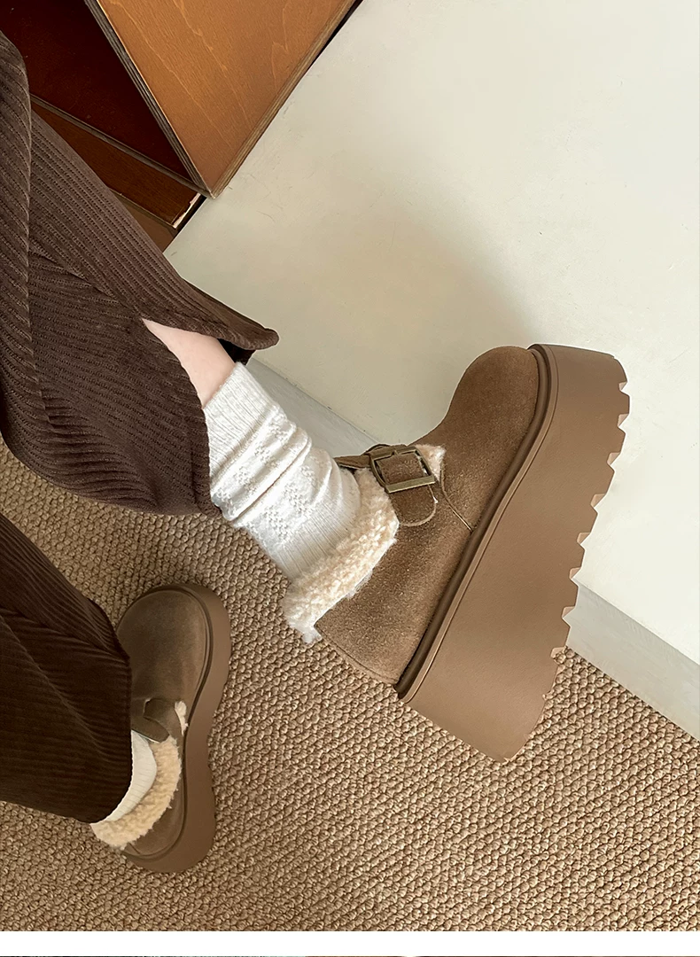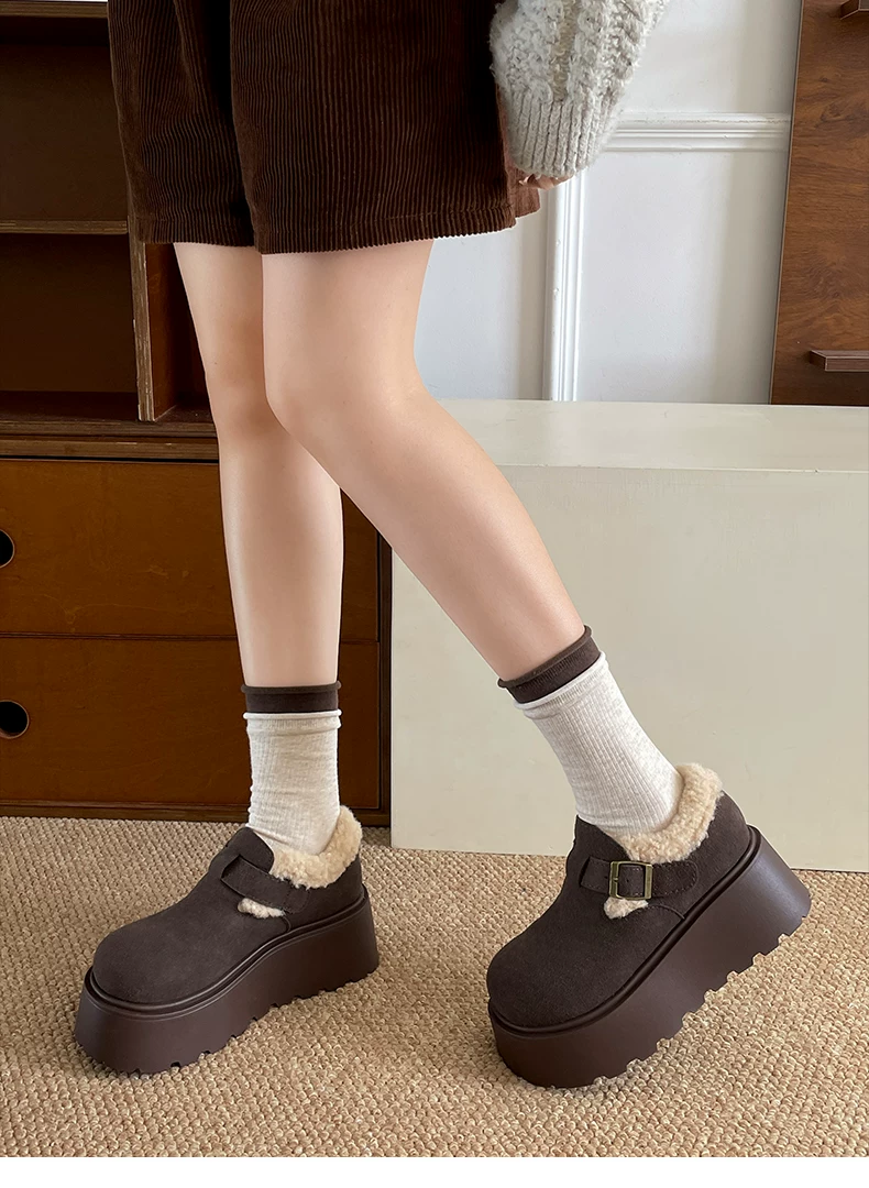 - Giày Birkenstock đế dày cổ điển màu nâu, kiểu quấn toàn bộ, dành cho nữ, mẫu mới thu đông 2025, lót lông ấm áp, chất liệu cotton.