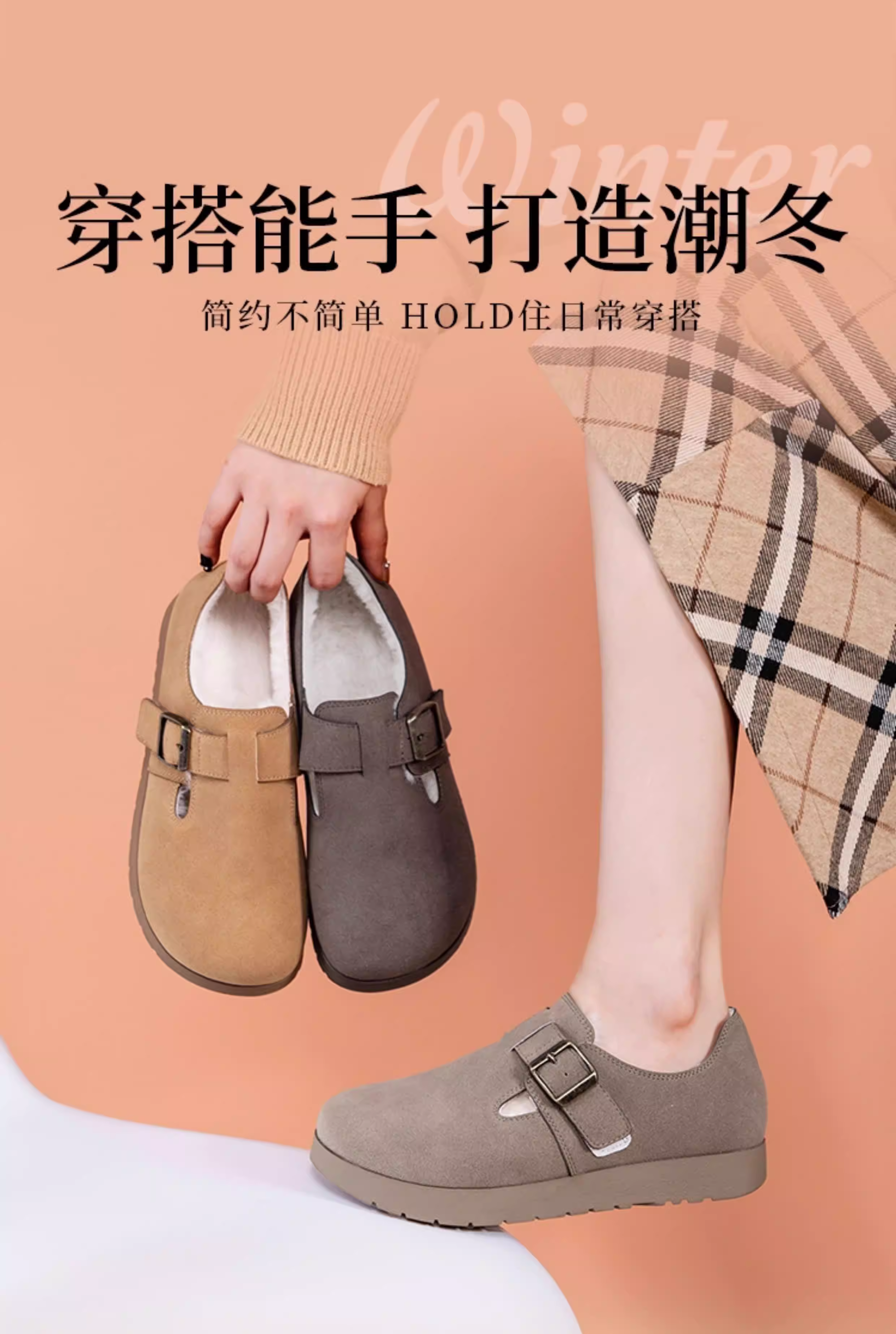 - Giày Birkenstock đế dày Dadong dành cho nữ 2025, mẫu mới thu đông, lót lông giữ ấm, giày cotton, giày Birkenstock kiểu lười mùa đông