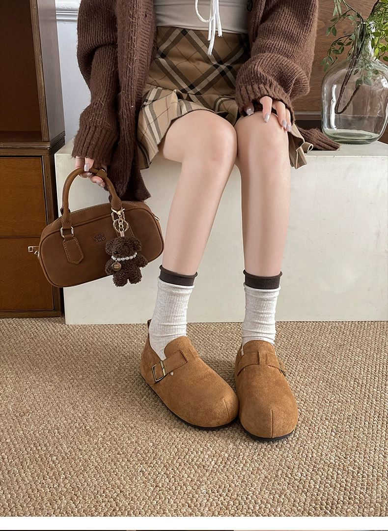 - Giày Birkenstock đế dày, kiểu dáng cổ điển, che kín toàn bộ bàn chân dành cho nữ, phong cách thu mới 2025, đa năng với chân váy, giày đế mềm.