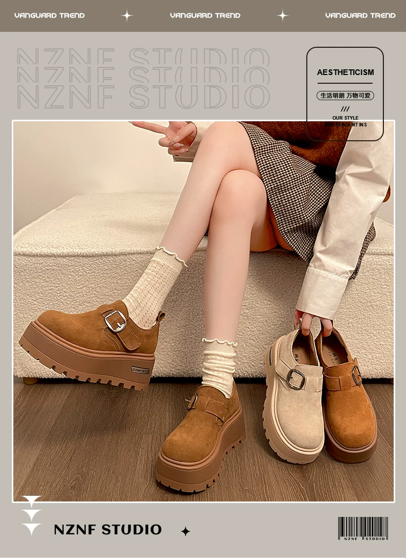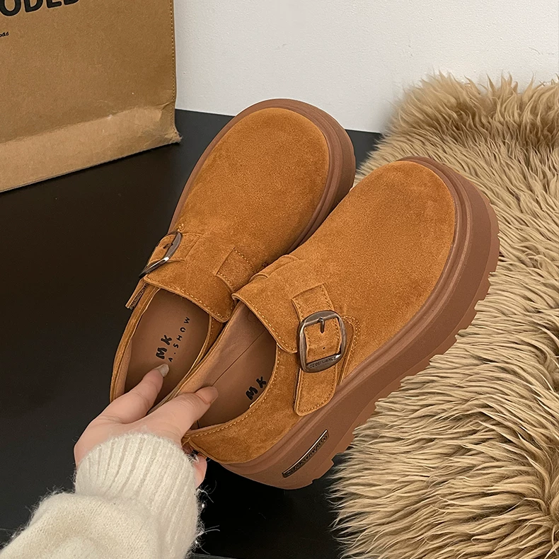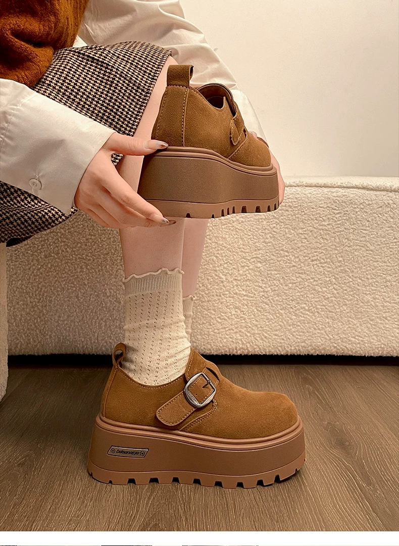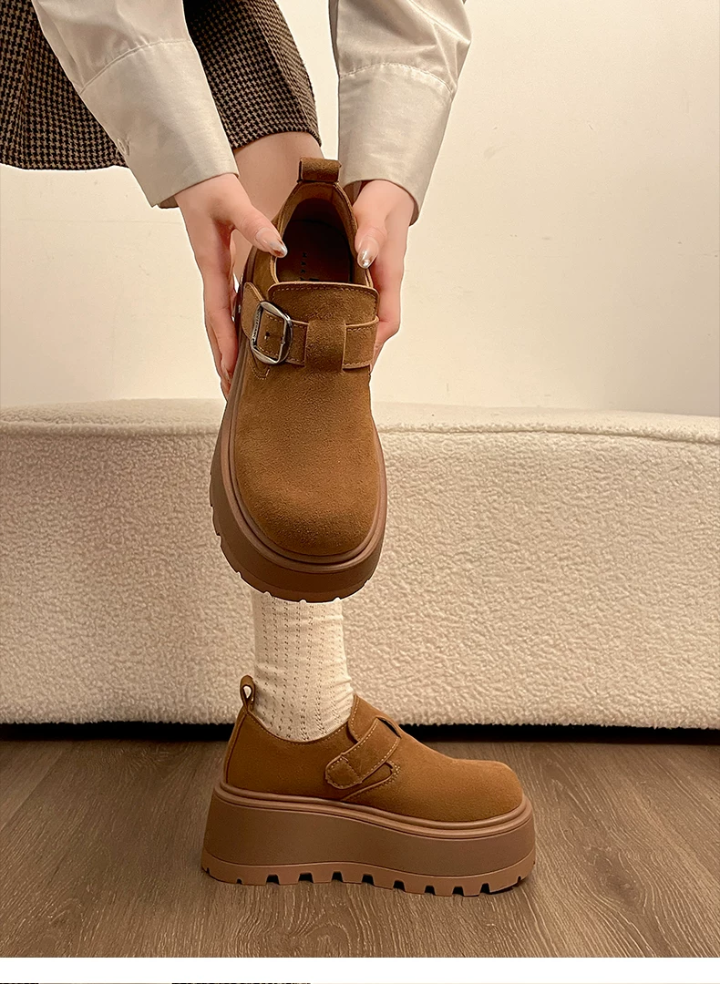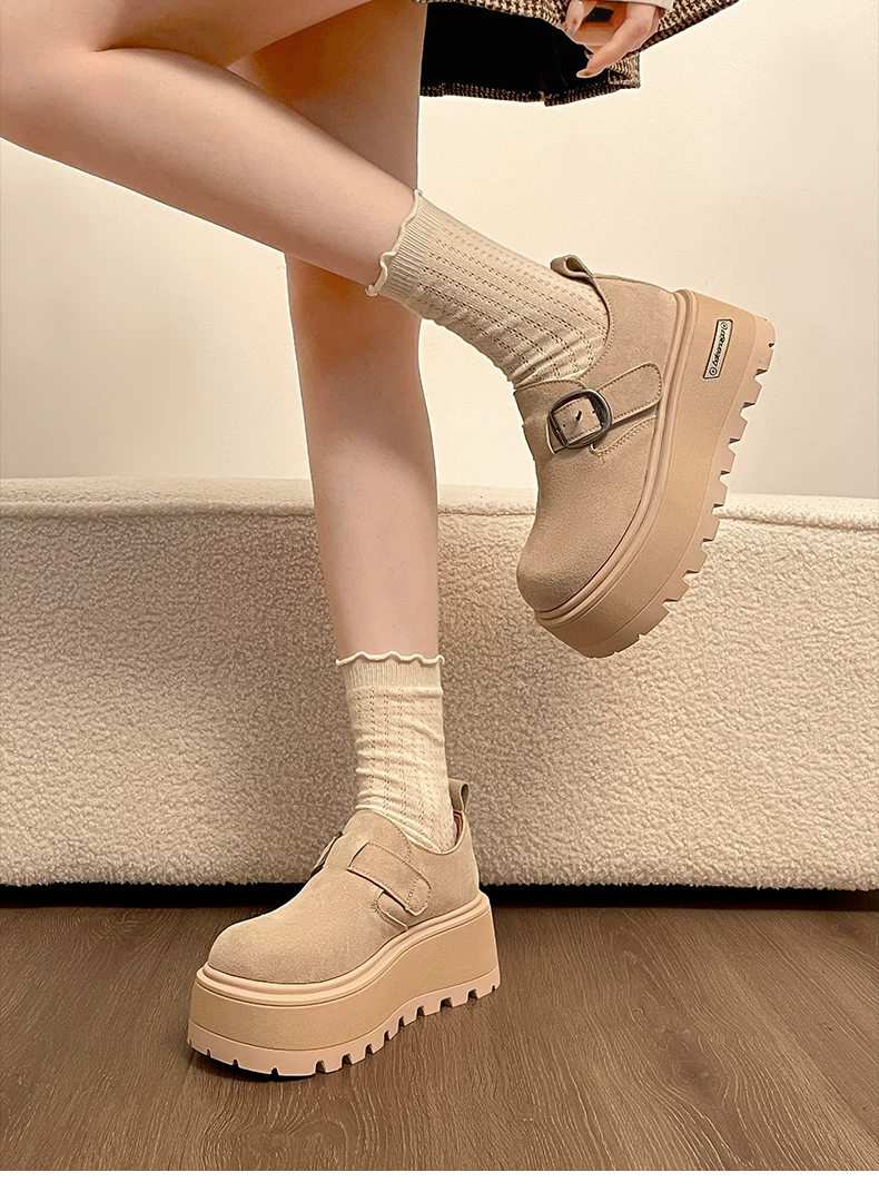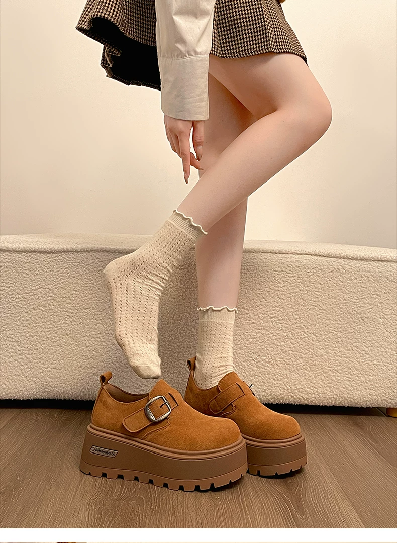 Giày Birkenstock đế dày, kiểu dáng cổ điển, đa năng, ôm chân dành cho nữ, kiểu mới mùa đông 2025, phối cùng chân váy, chống trơn, tăng chiều cao.