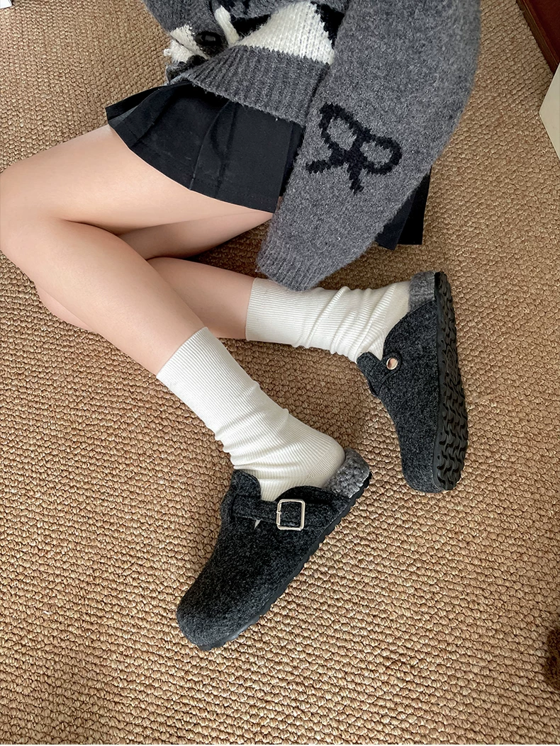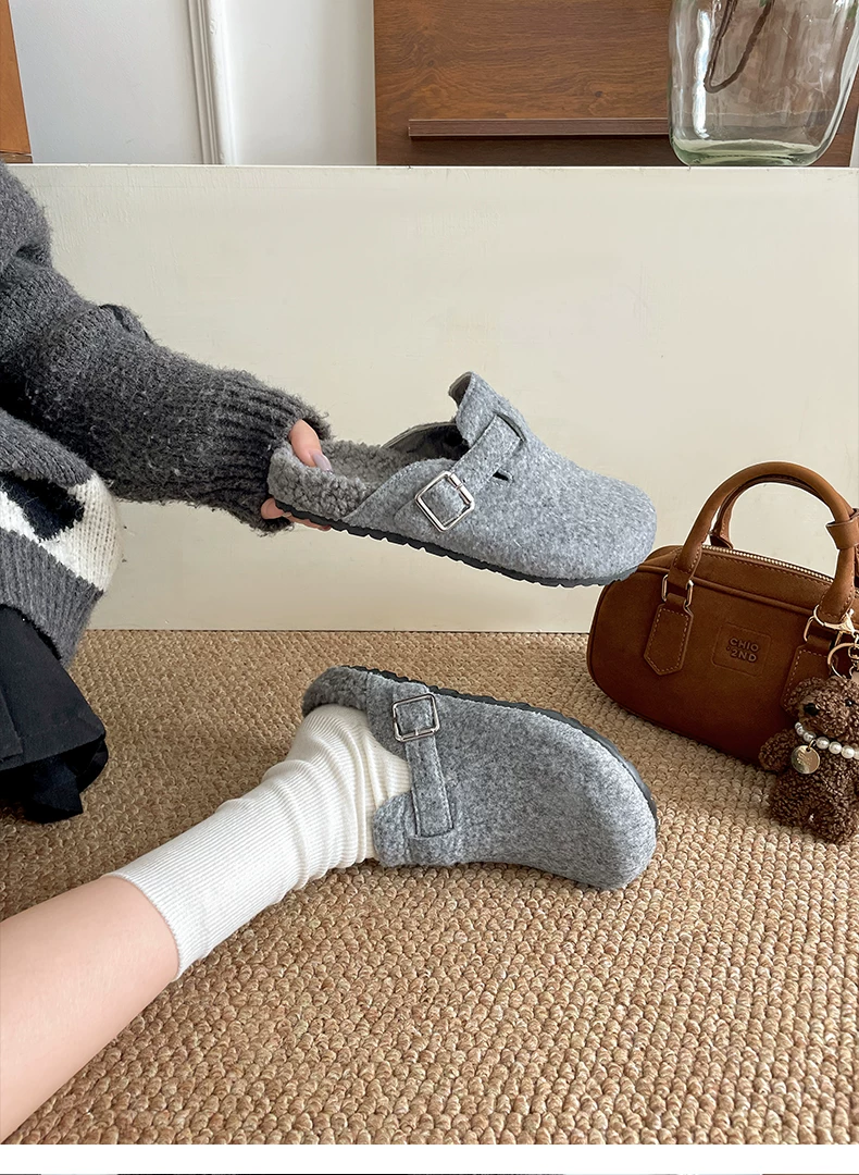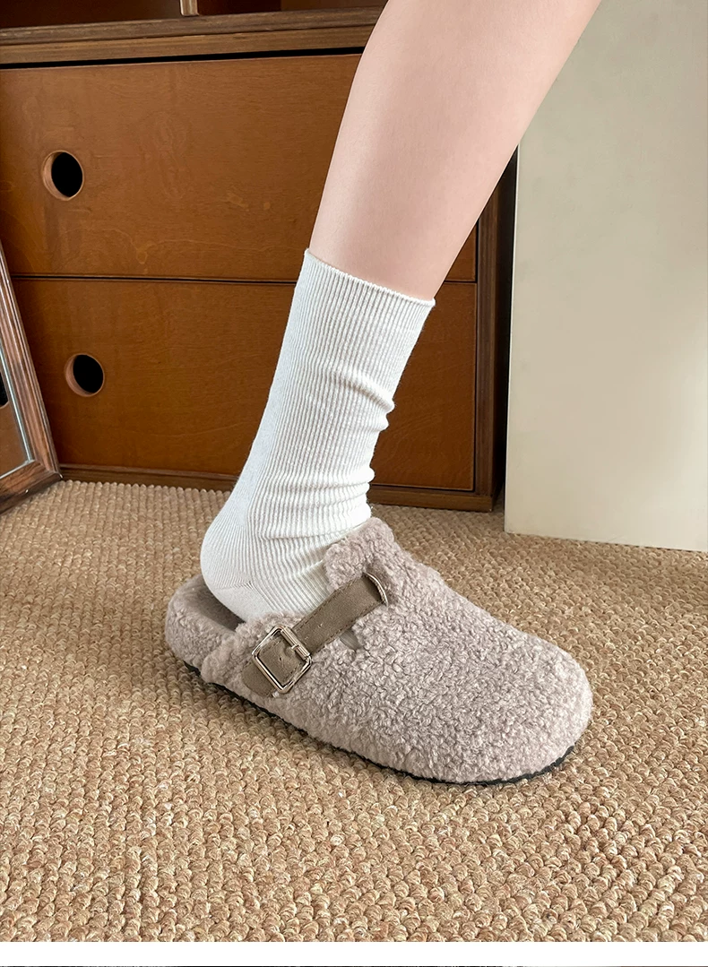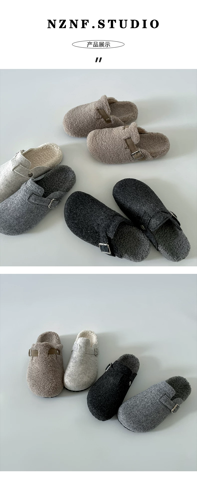 - Giày Birkenstock đế dày lót lông cừu kiểu cổ điển Nanzai dành cho nữ 2025 Dép cotton kín mũi chống trượt ấm áp mùa thu đông mới