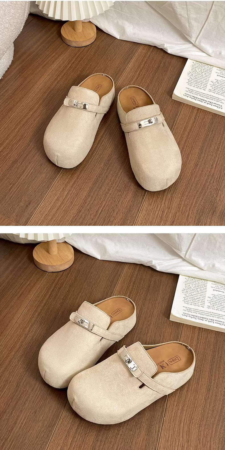 Giày Birkenstock đế dày nửa đế kiểu cổ điển dành cho nữ, mùa đông 2025, tăng chiều cao, đi ngoài trời, phối chân váy, kiểu kín mũi.