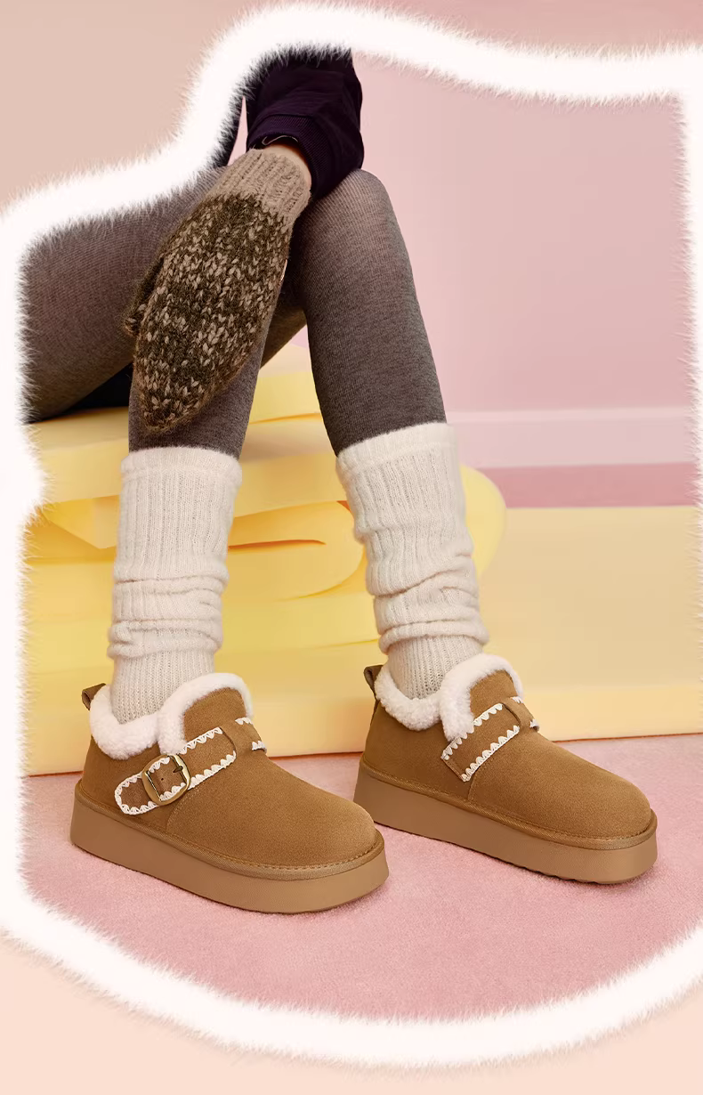 - Giày Birkenstock đế dày tăng chiều cao kiểu retro dành cho nữ, giày bốt lót lông, giày lông thú, mẫu mới mùa đông 2025 BM151DM5
