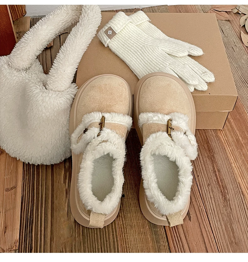- Giày Birkenstock đế dày tăng chiều cao lót lông dành cho nữ, mẫu mới mùa đông 2025, giày giữ ấm bằng cotton, giày bốt lót lông cừu đi tuyết