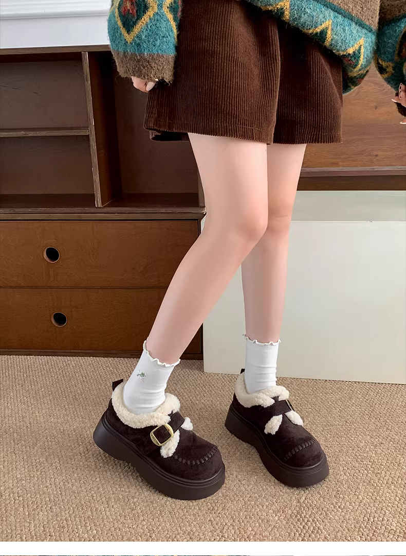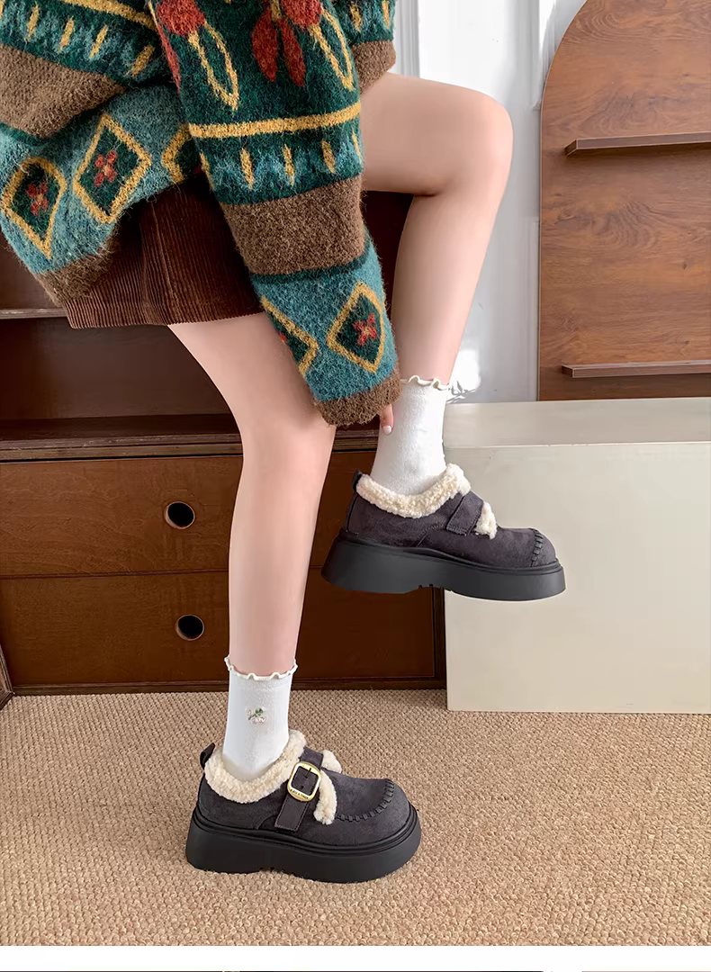 - Giày Birkenstock đế dày tăng chiều cao lót lông mềm kiểu cổ điển Nanzai Nandong dành cho nữ, mẫu mới mùa đông 2025, giày bông dày giữ ấm đi ngoài trời