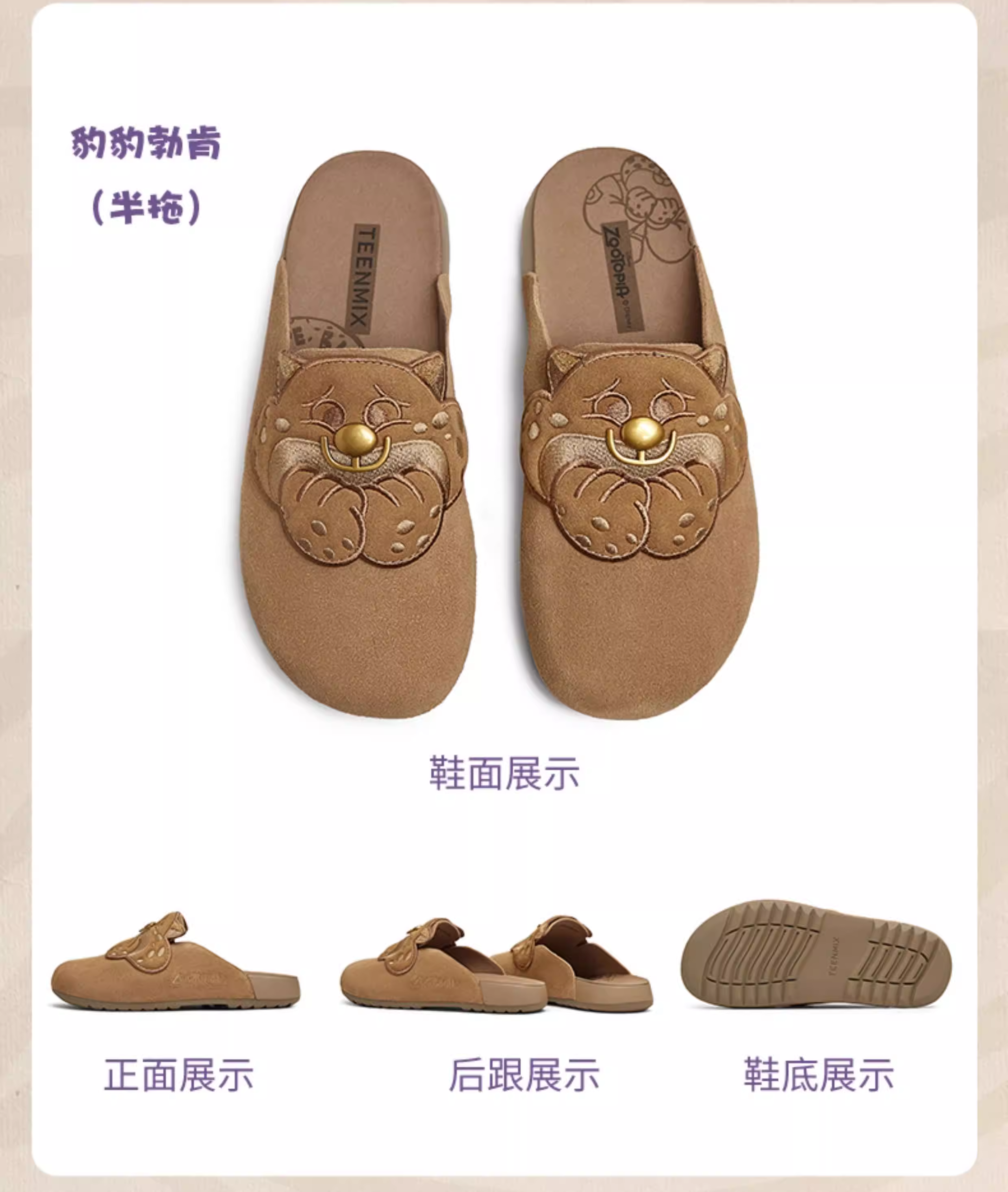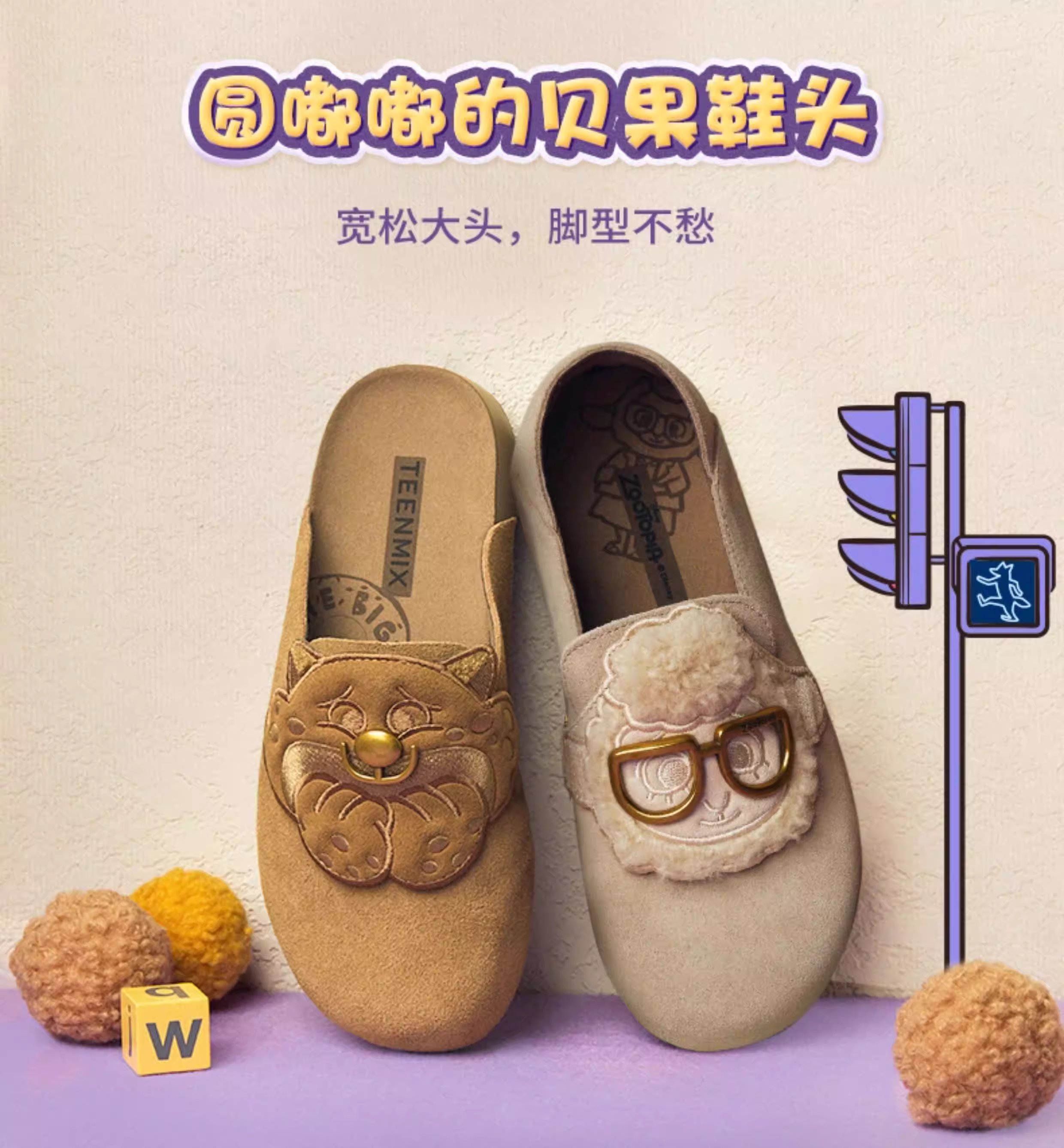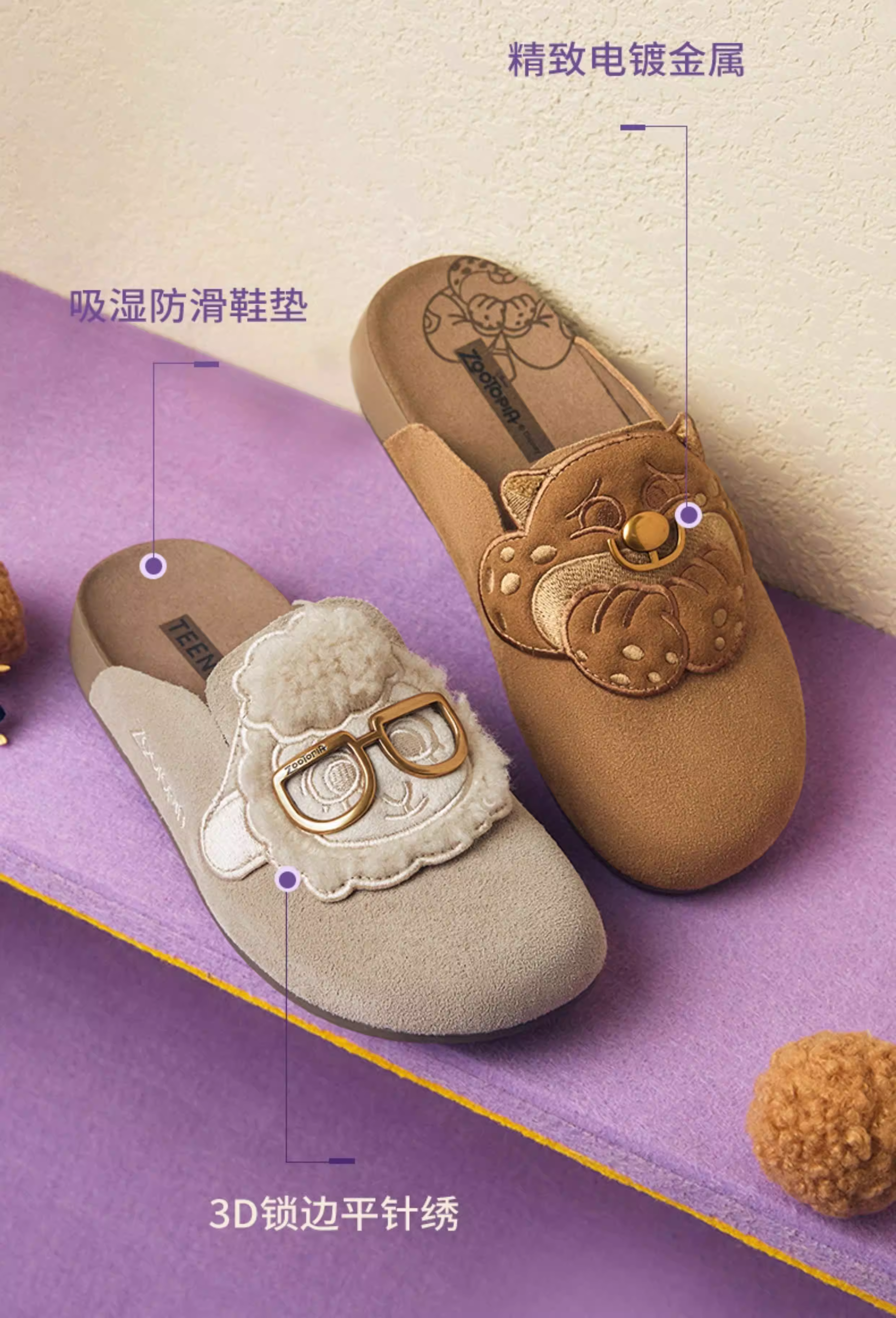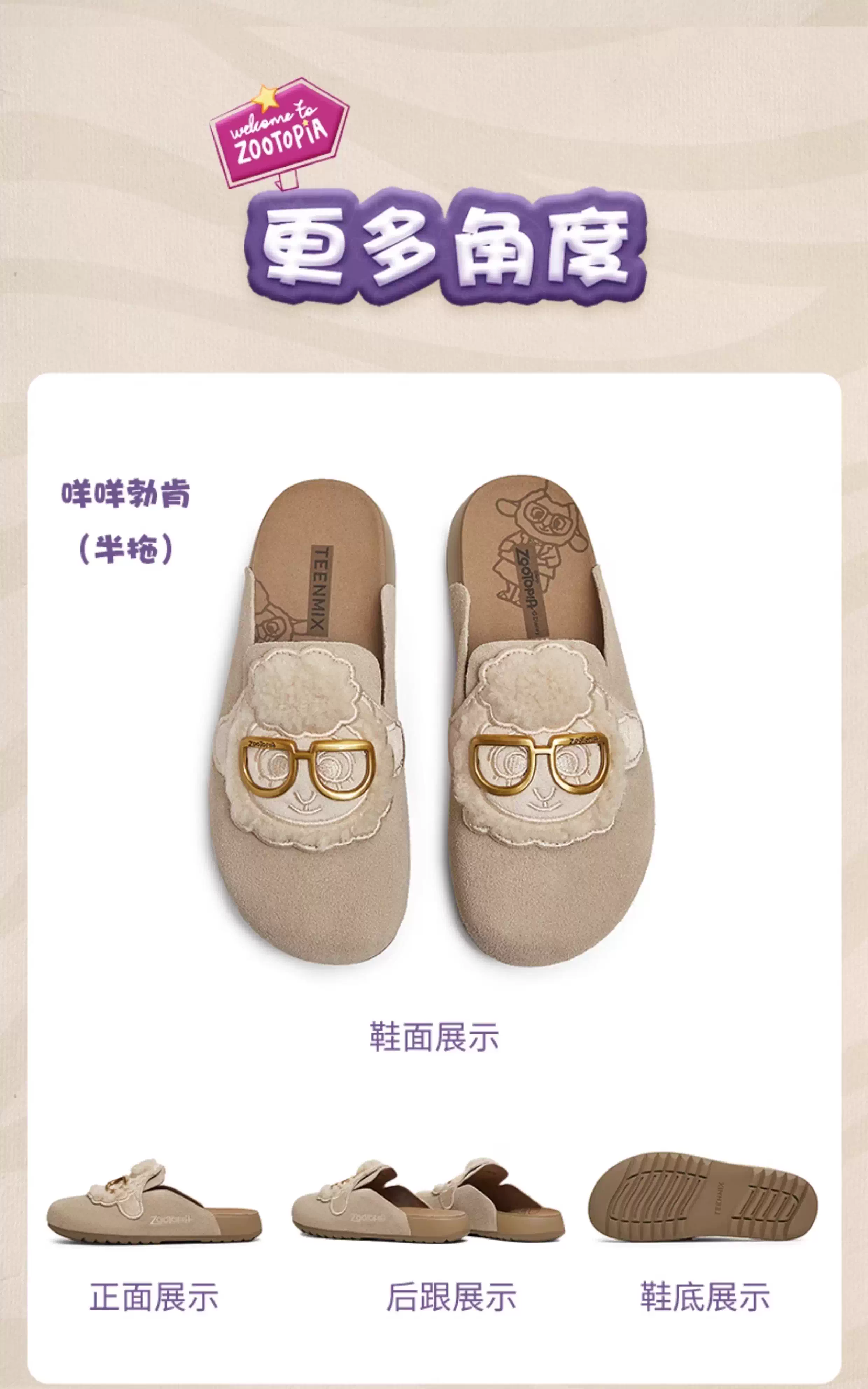 Giày Birkenstock đế mềm phối hợp Tianmeiyi Zootopia có lót lông mềm mại dành cho nữ Giày nửa dép kín mũi thông thường