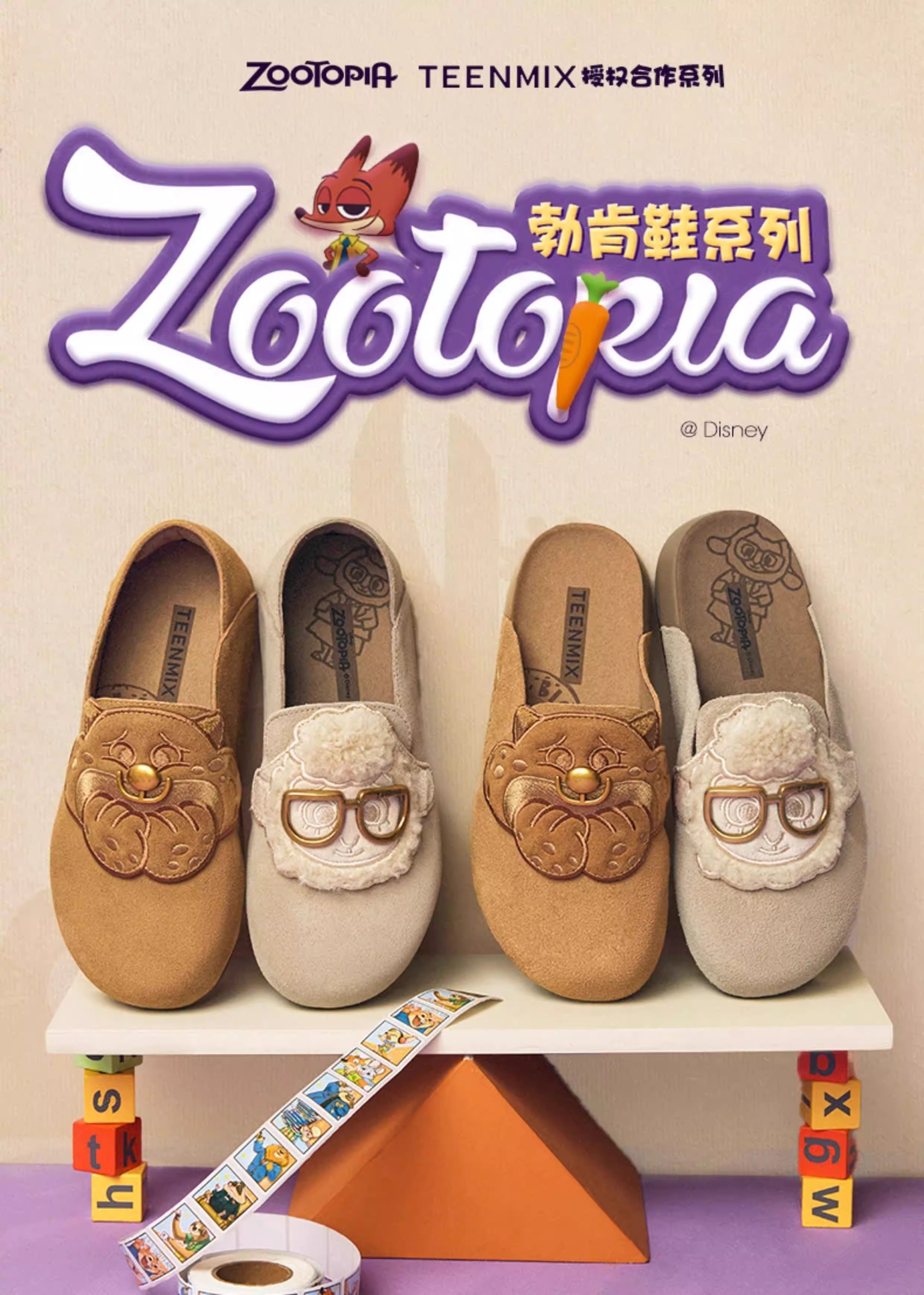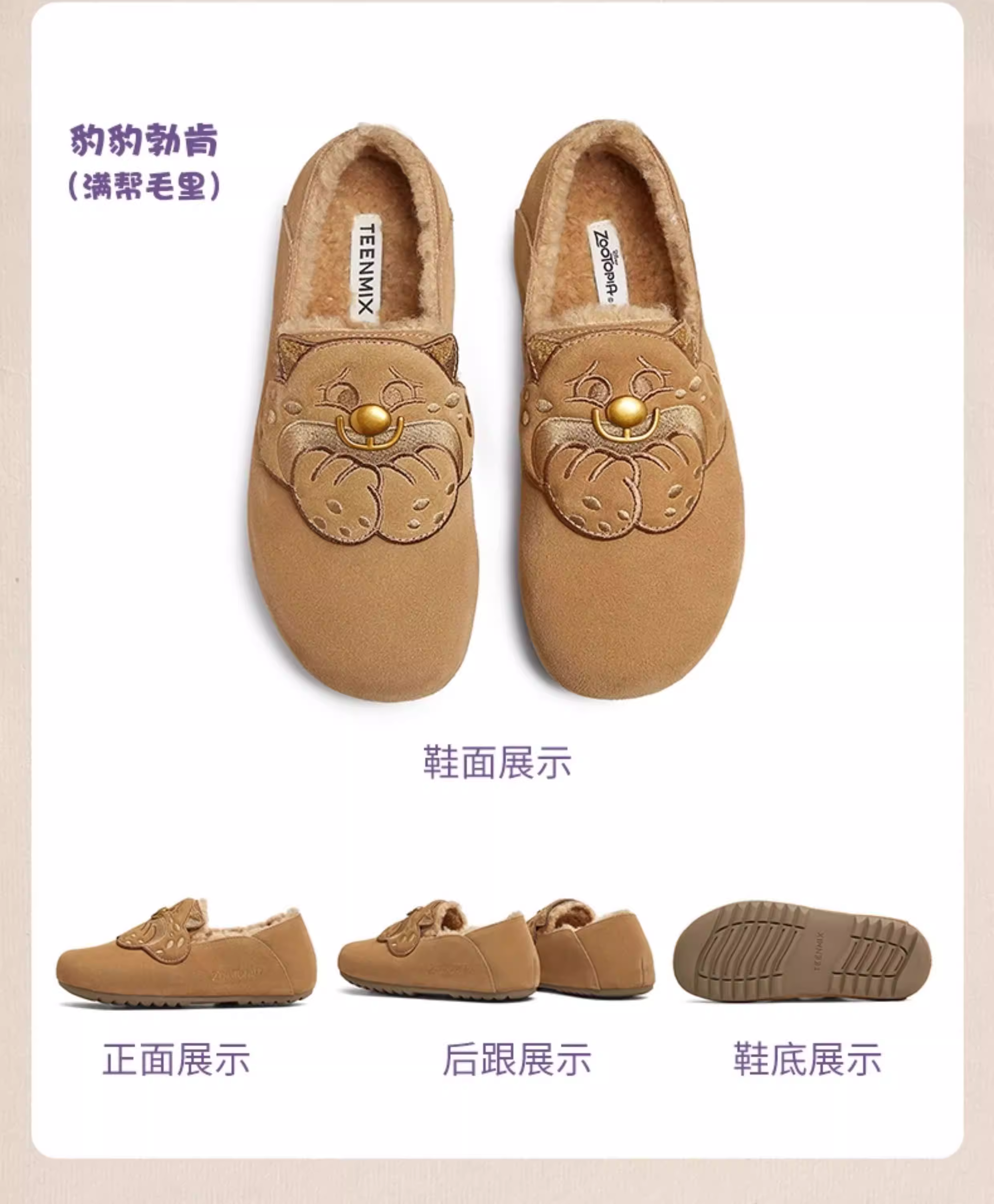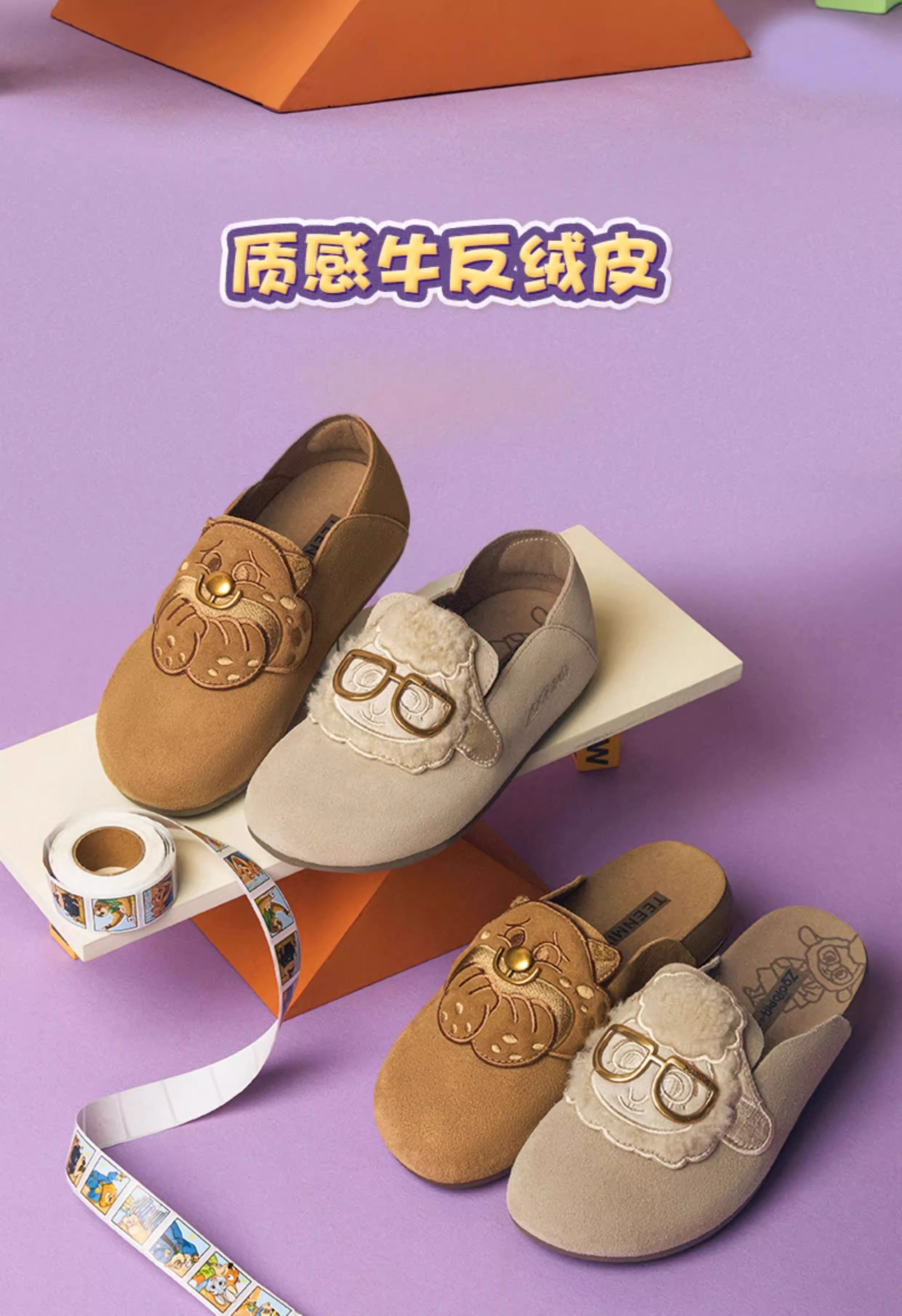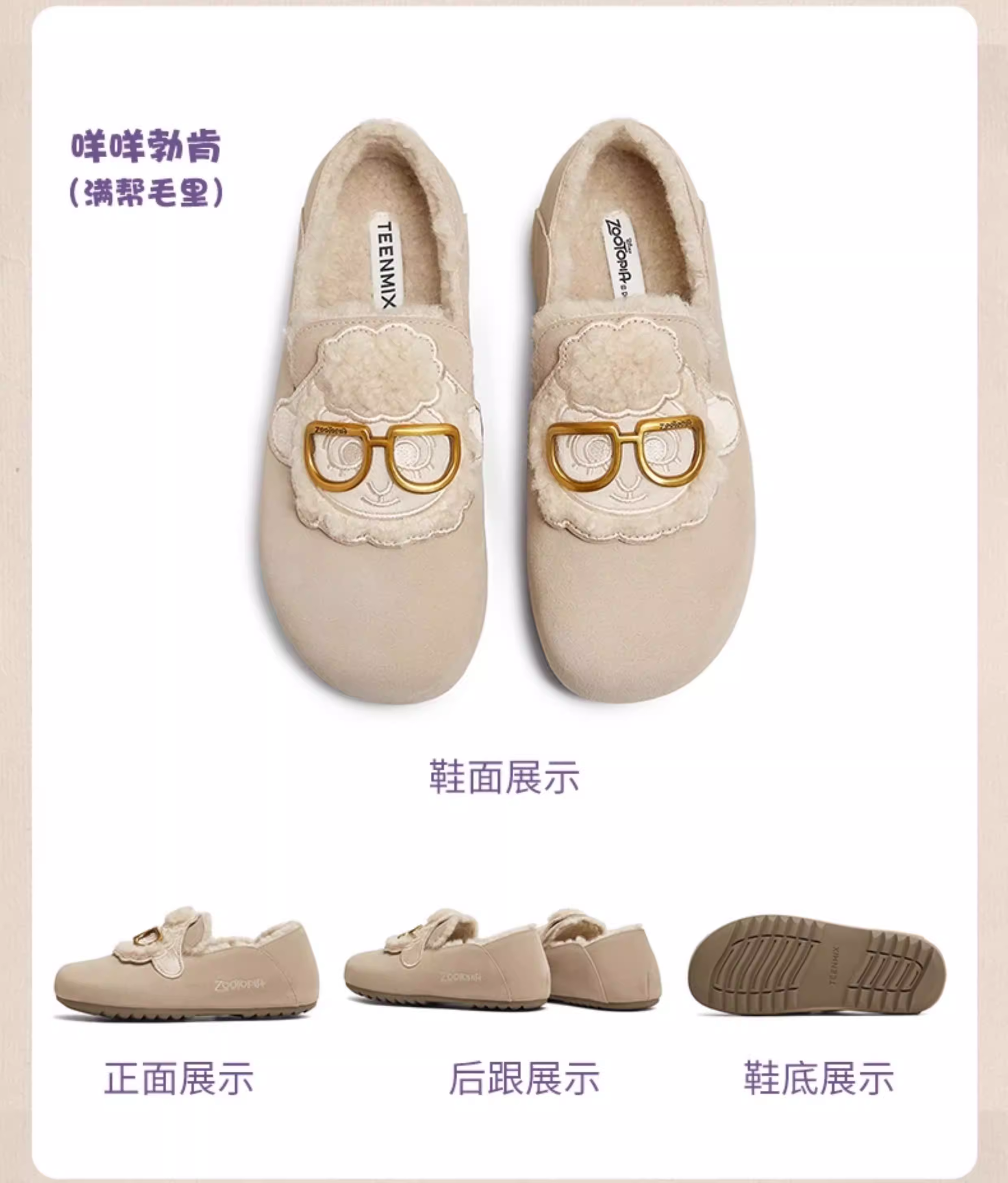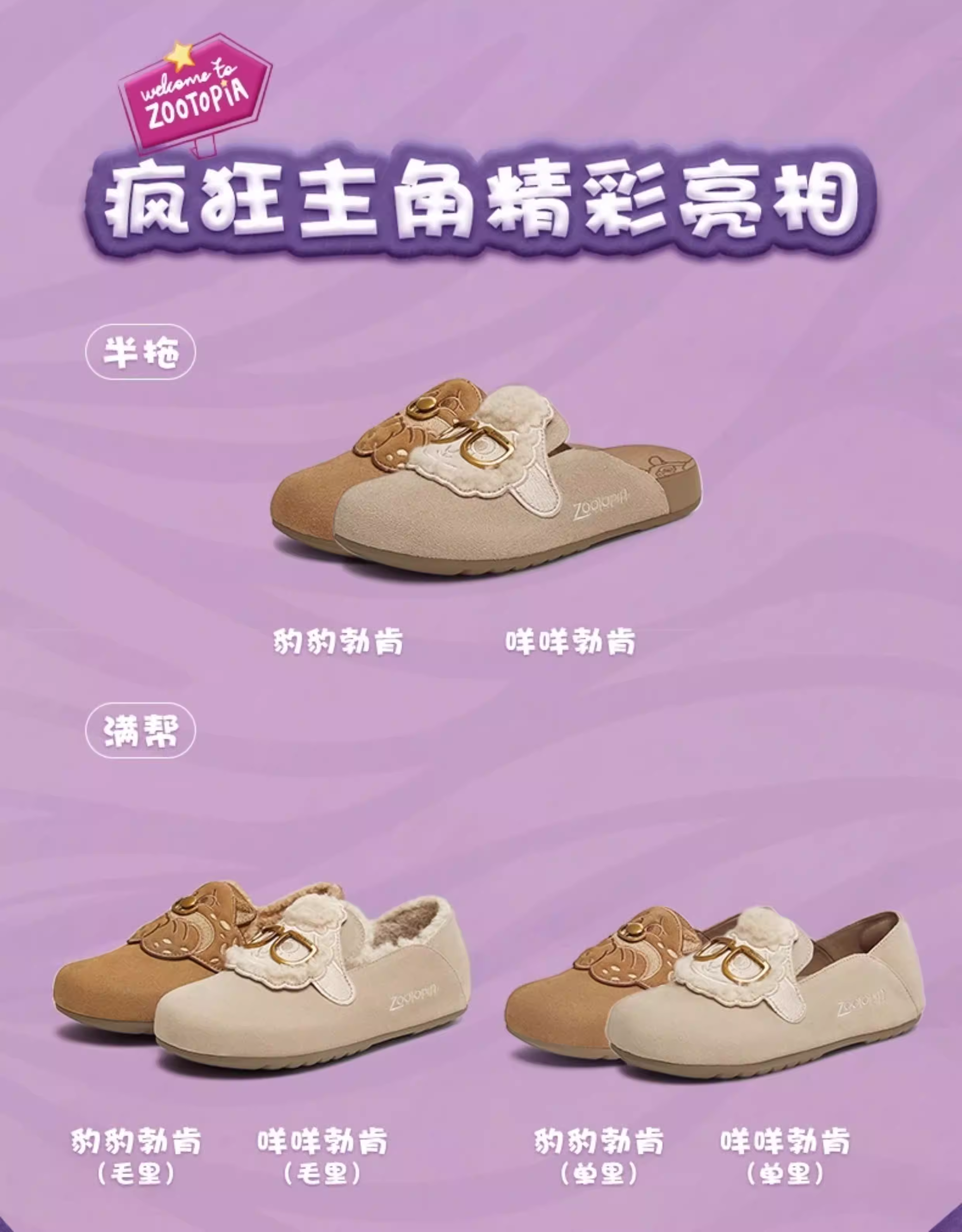 Giày Birkenstock đế mềm phối hợp Tianmeiyi Zootopia có lót lông mềm mại dành cho nữ Giày nửa dép kín mũi thông thường
