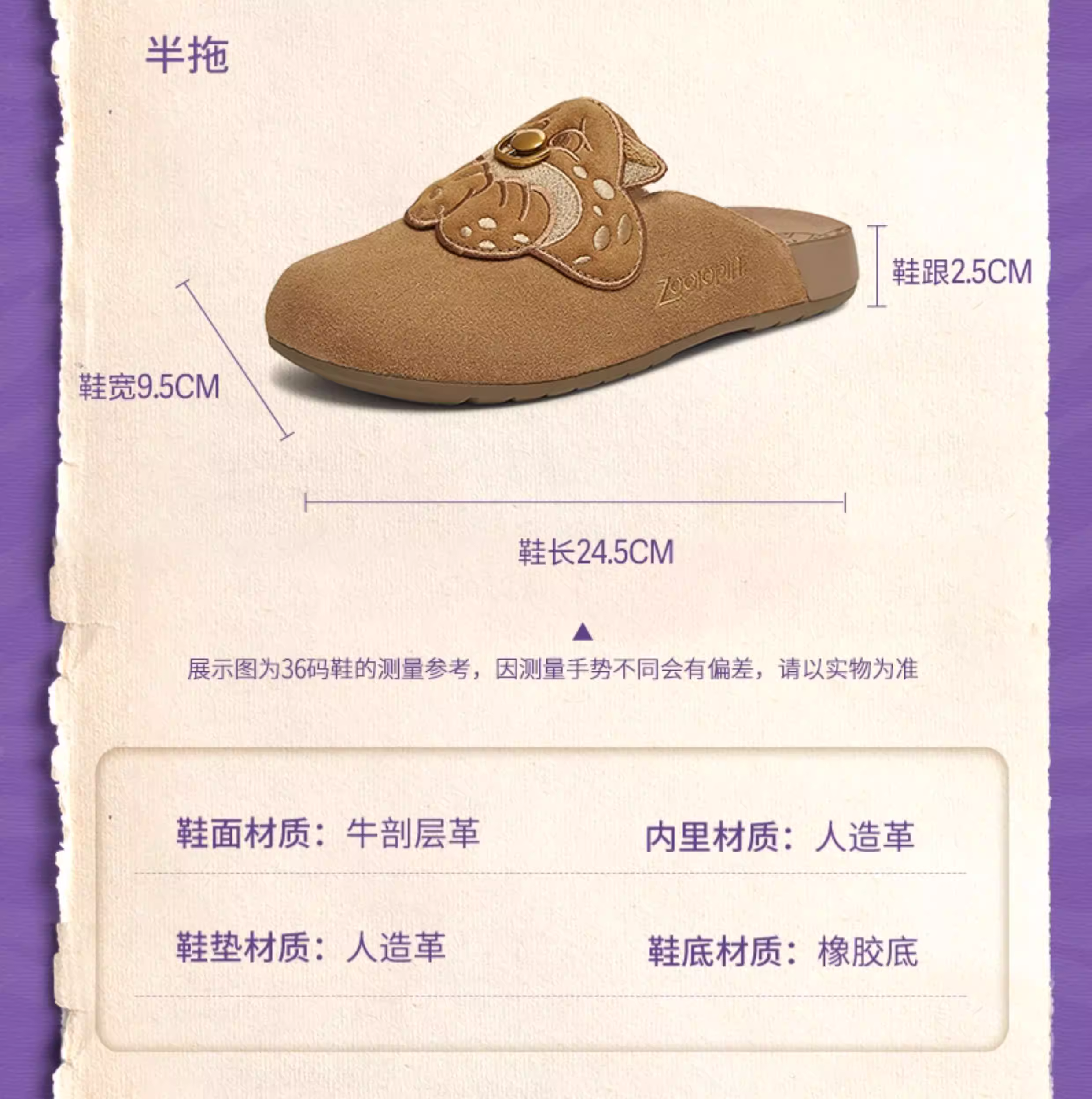 - Giày Birkenstock đế mềm phối hợp Tianmeiyi Zootopia có lót lông mềm mại dành cho nữ Giày nửa dép kín mũi thông thường