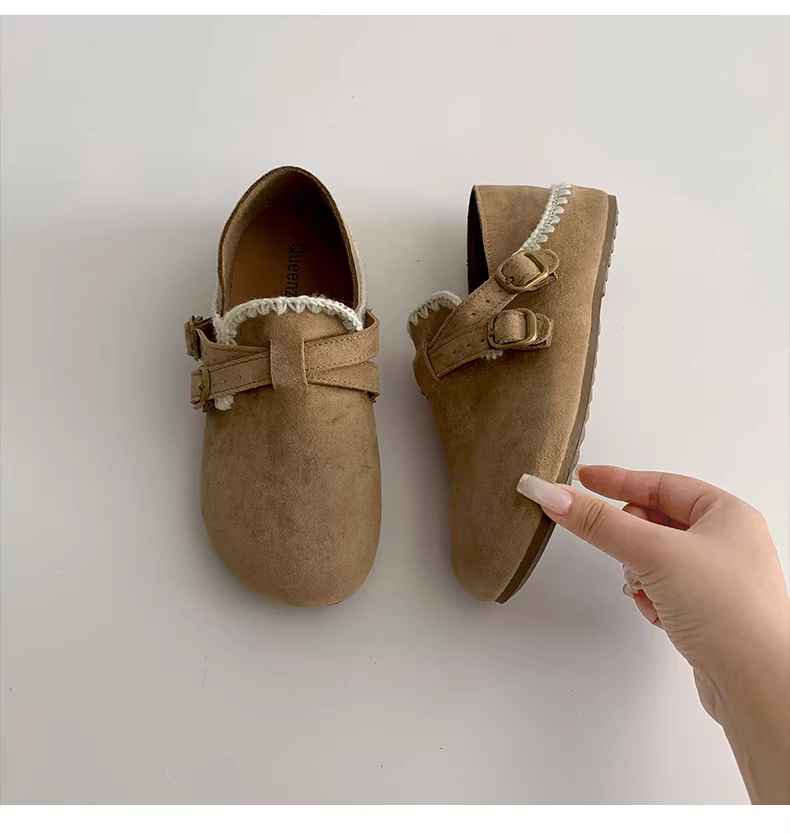 Giày Birkenstock kiểu Pháp đế dày màu nâu, kiểu quấn toàn bộ, dành cho nữ, mẫu thu đông 2025 mới, đa năng phối với chân váy, giày đơn.
