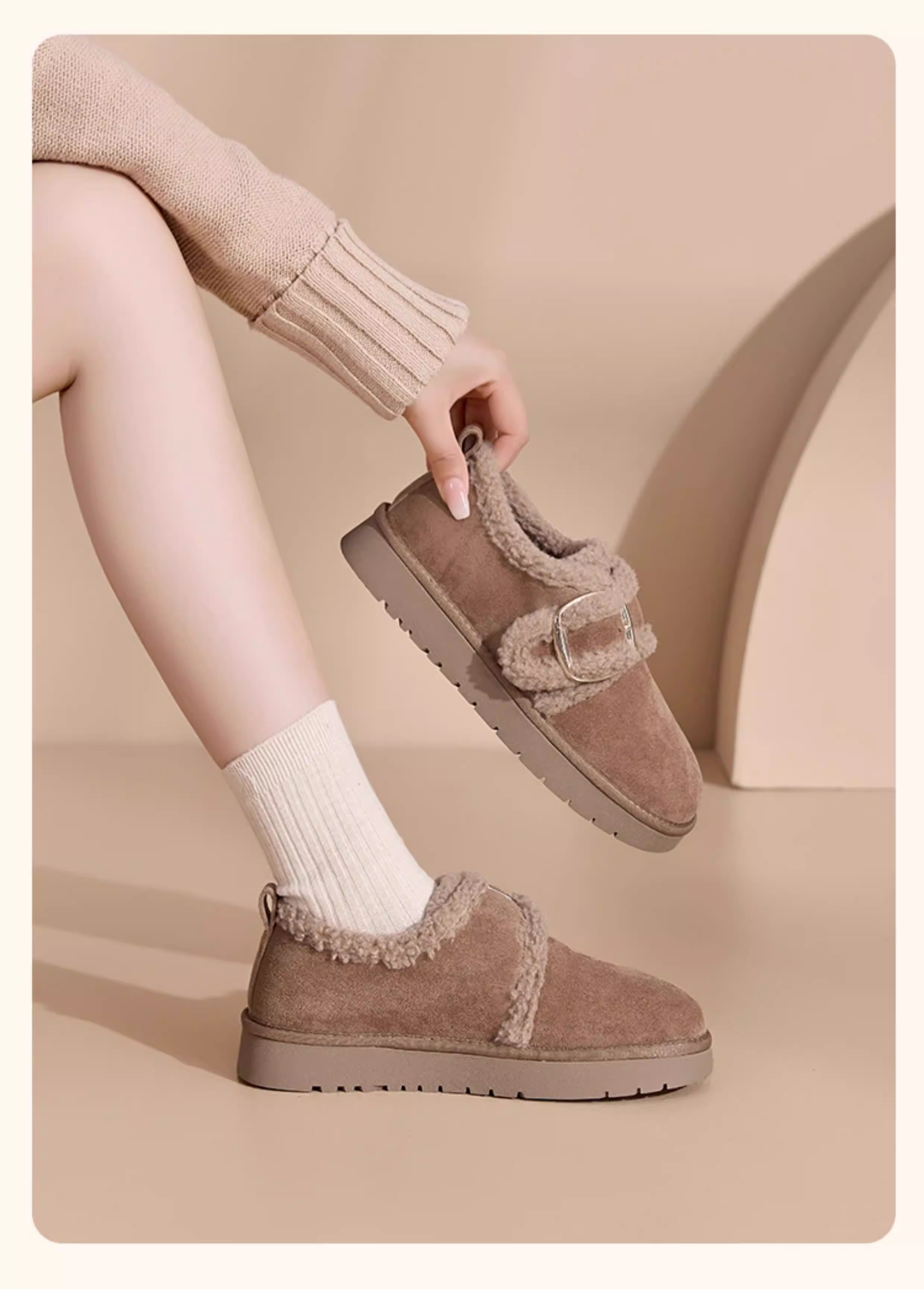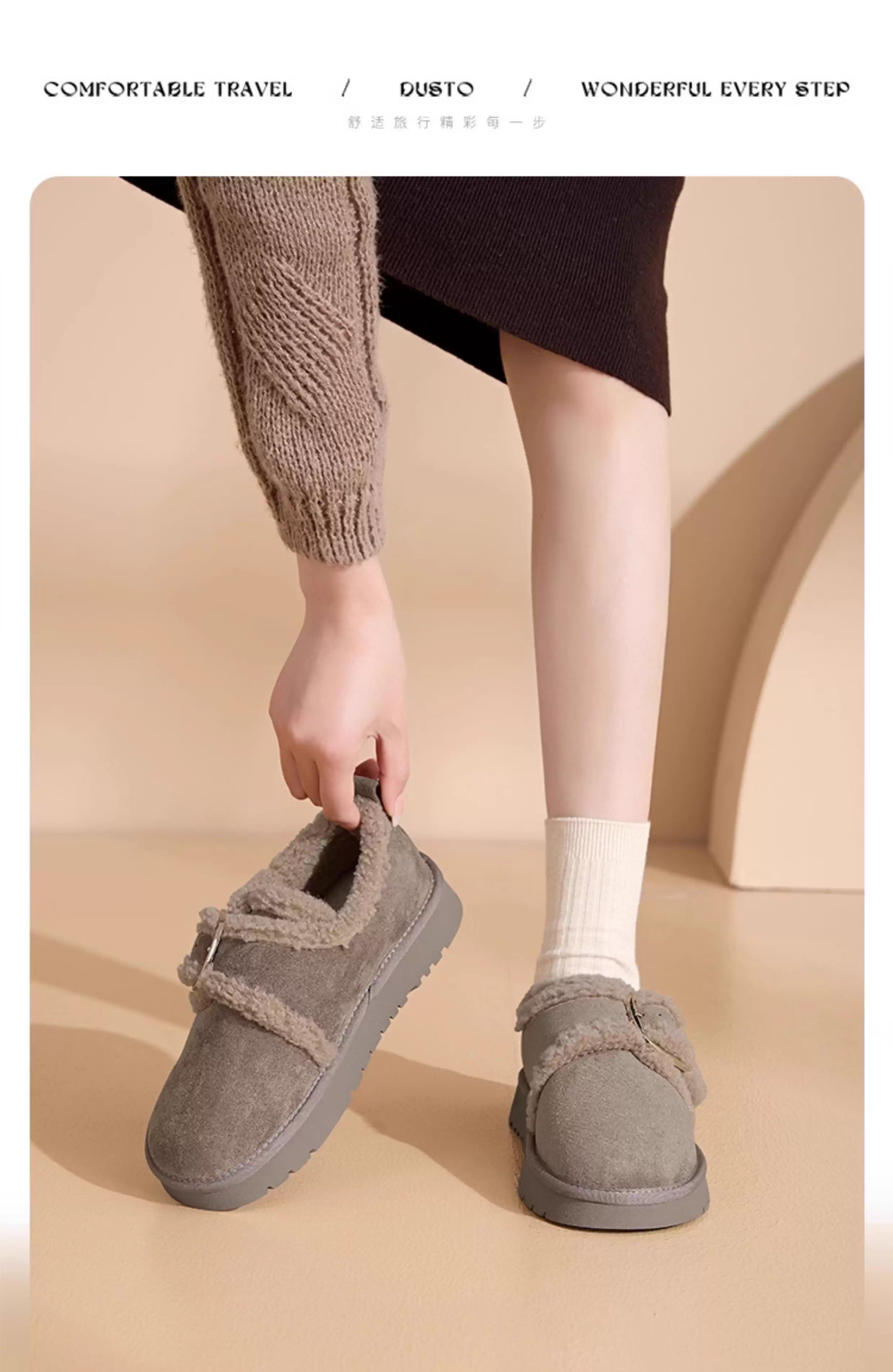 - Giày Birkenstock lót lông Dadong dành cho nữ, mùa thu đông 2025, giày bốt giữ ấm đế dày mới, giày lông, giày cotton đi ngoài trời mùa đông.
