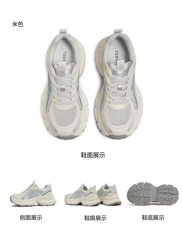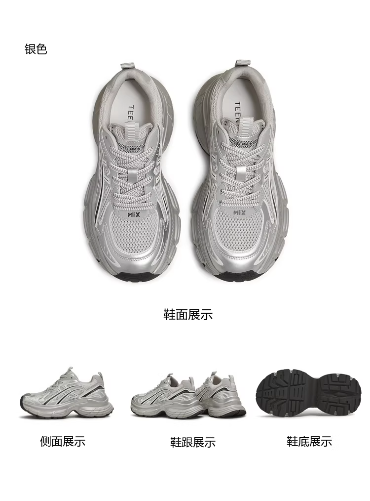 - Giày bố tăng chiều cao đế dày thoáng khí dòng Tianmeiyi X dành cho nữ, giày thể thao thông thường màu bạc, mẫu mới mùa hè.