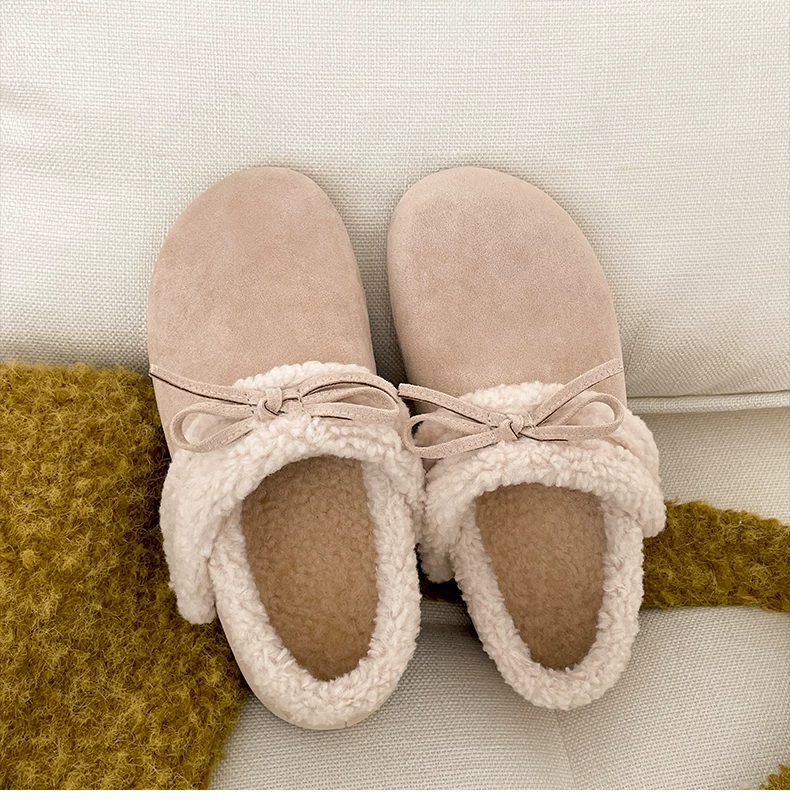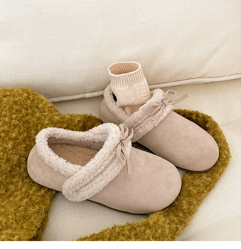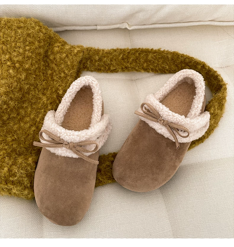 - Giày bông cổ điển đế dày lót lông cừu dành cho nữ, kiểu mới mùa đông 2025, ấm áp, chống trơn trượt, đi ngoài trời, giày Birkenstock lông thú.