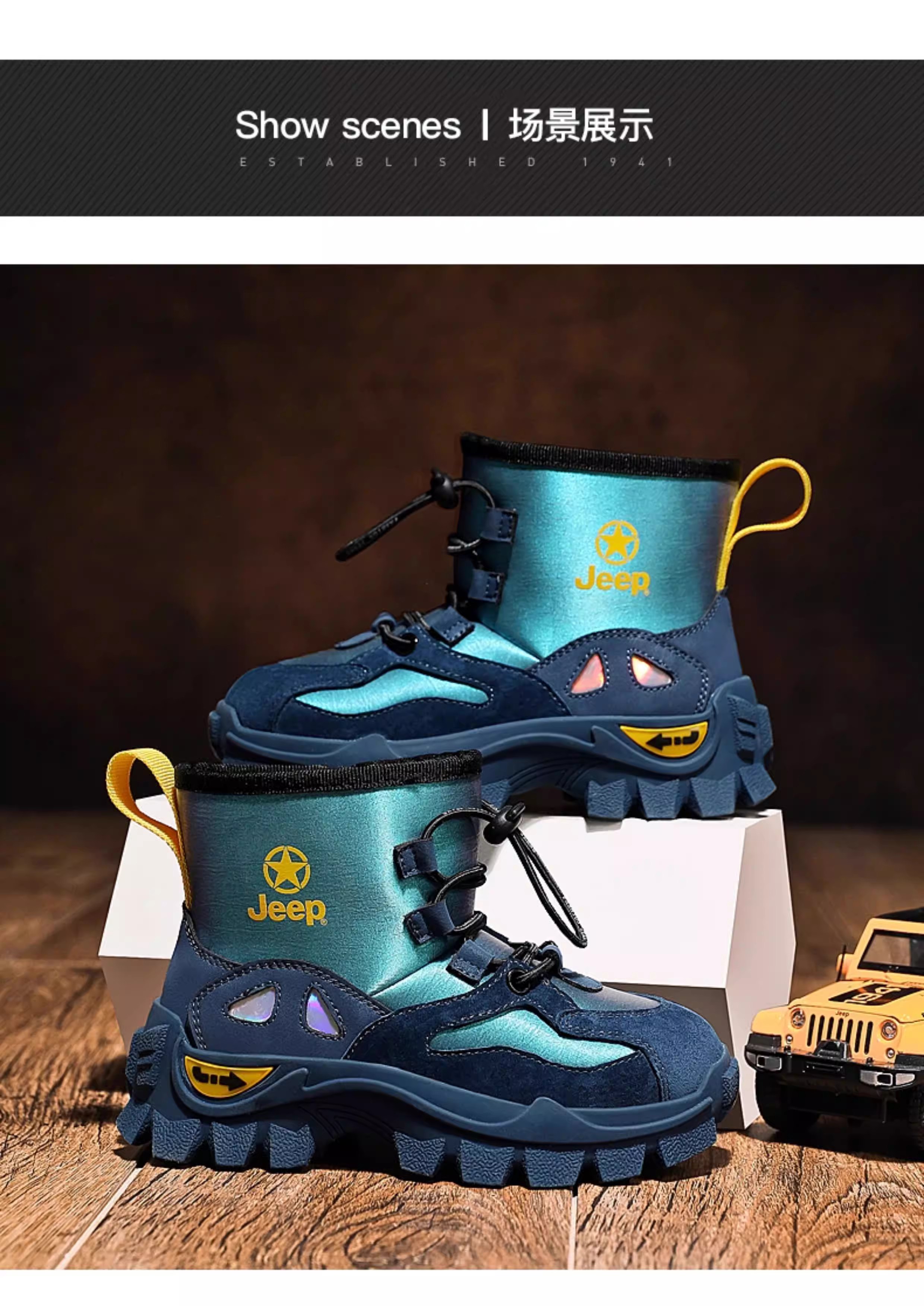 - Giày bông cỡ lớn dành cho bé gái của hãng Jeep dành cho mùa đông Đông Bắc, mẫu mới 2025 lót lông cừu, giày bông chống thấm nước cho bé trai, ủng đi tuyết cho trẻ em.