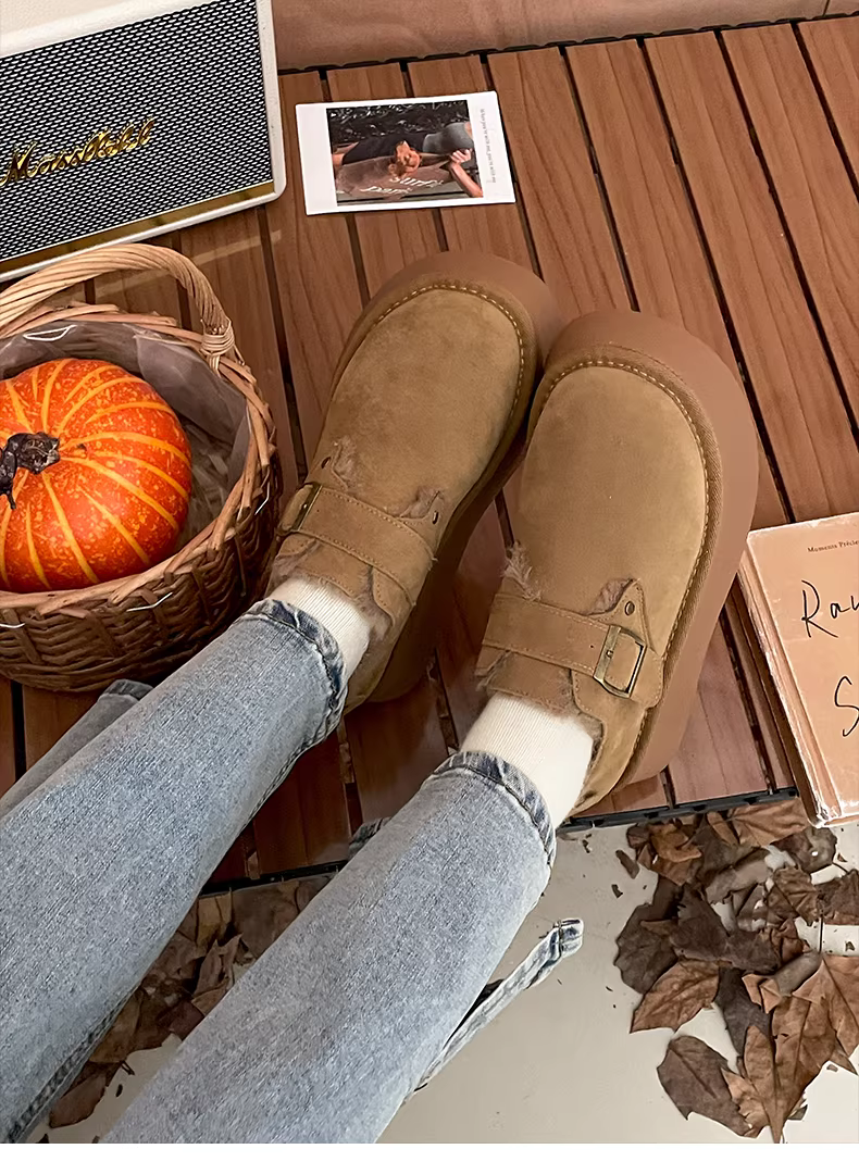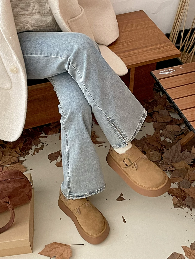 - Giày bông đế dày phong cách retro Nam Trung Quốc dành cho nữ 2025, kiểu mới mùa đông, tăng chiều cao, lót lông cừu, dày dặn, ấm áp, kiểu Birkenstock.