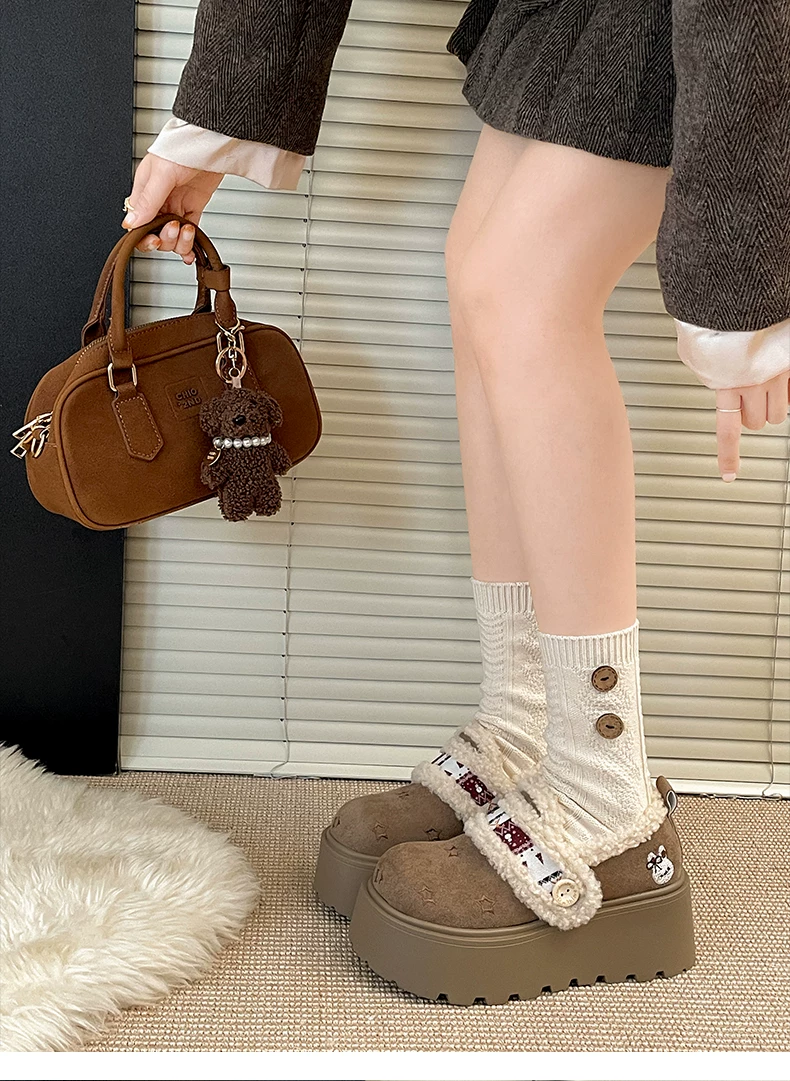 - Giày bông giữ ấm đế dày lót lông cừu trắng dành cho nữ, kiểu mới mùa đông 2025, giày Birkenstock lông thú tăng chiều cao đi ngoài trời.