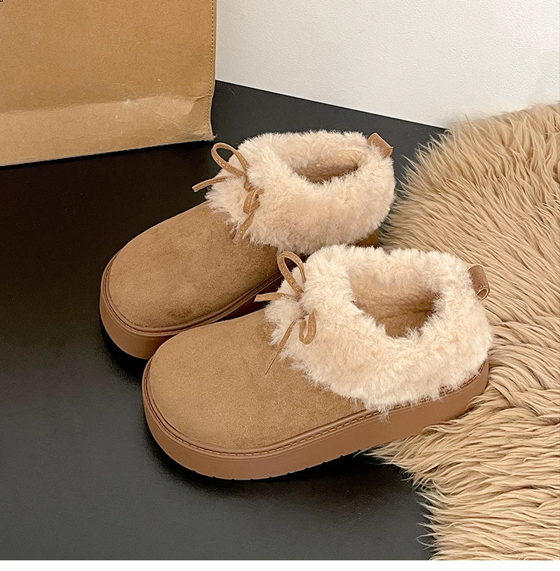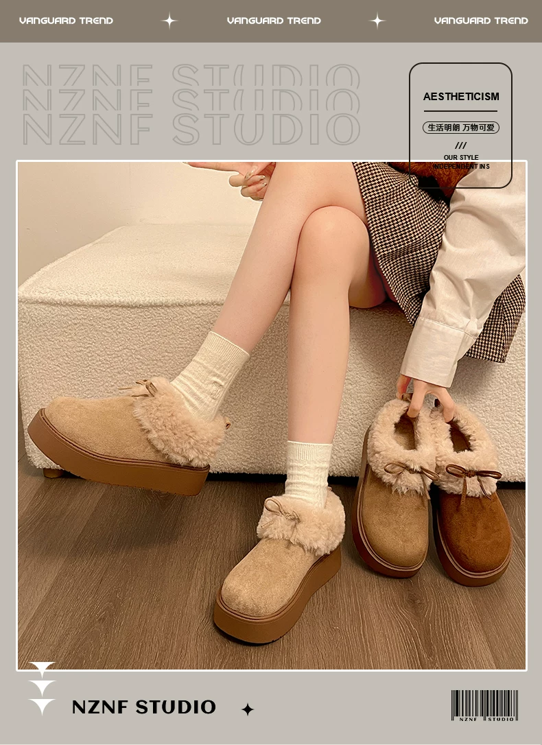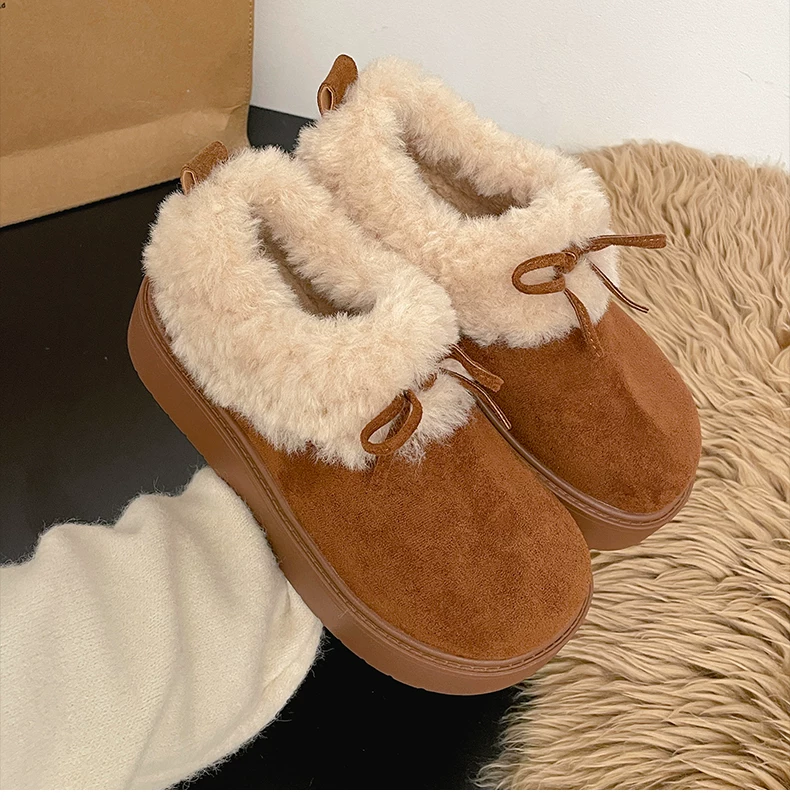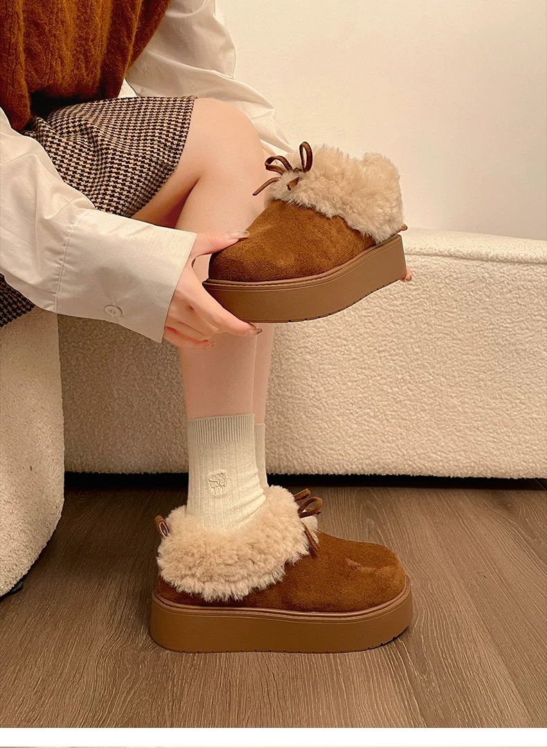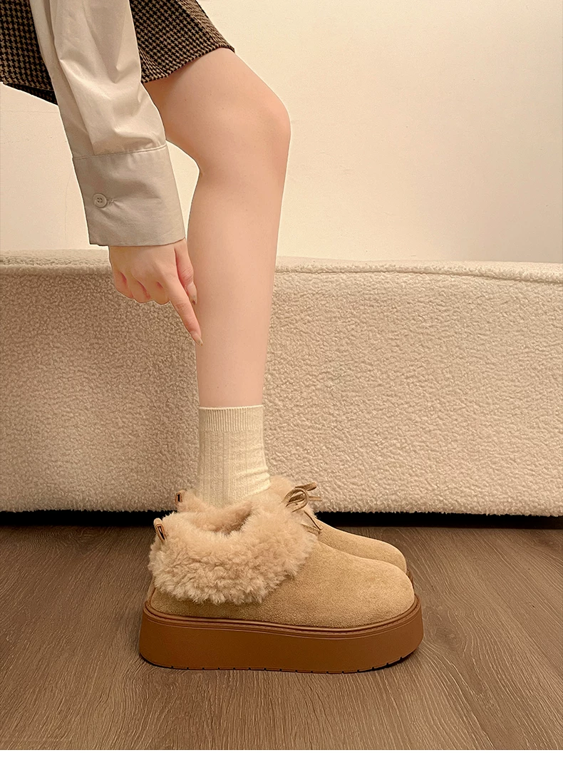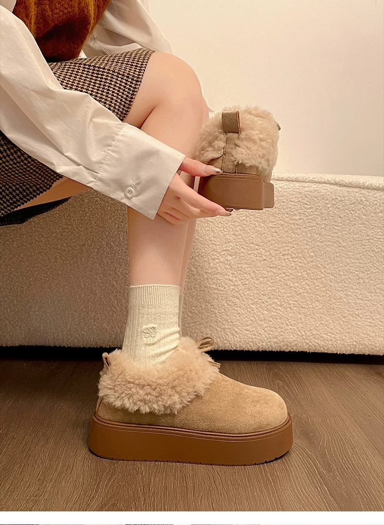 Giày bông giữ ấm lót lông cừu đế dày dành cho nữ, kiểu mới mùa đông 2025, tăng chiều cao, đi ngoài trời, giày Birkenstock lông ấm áp