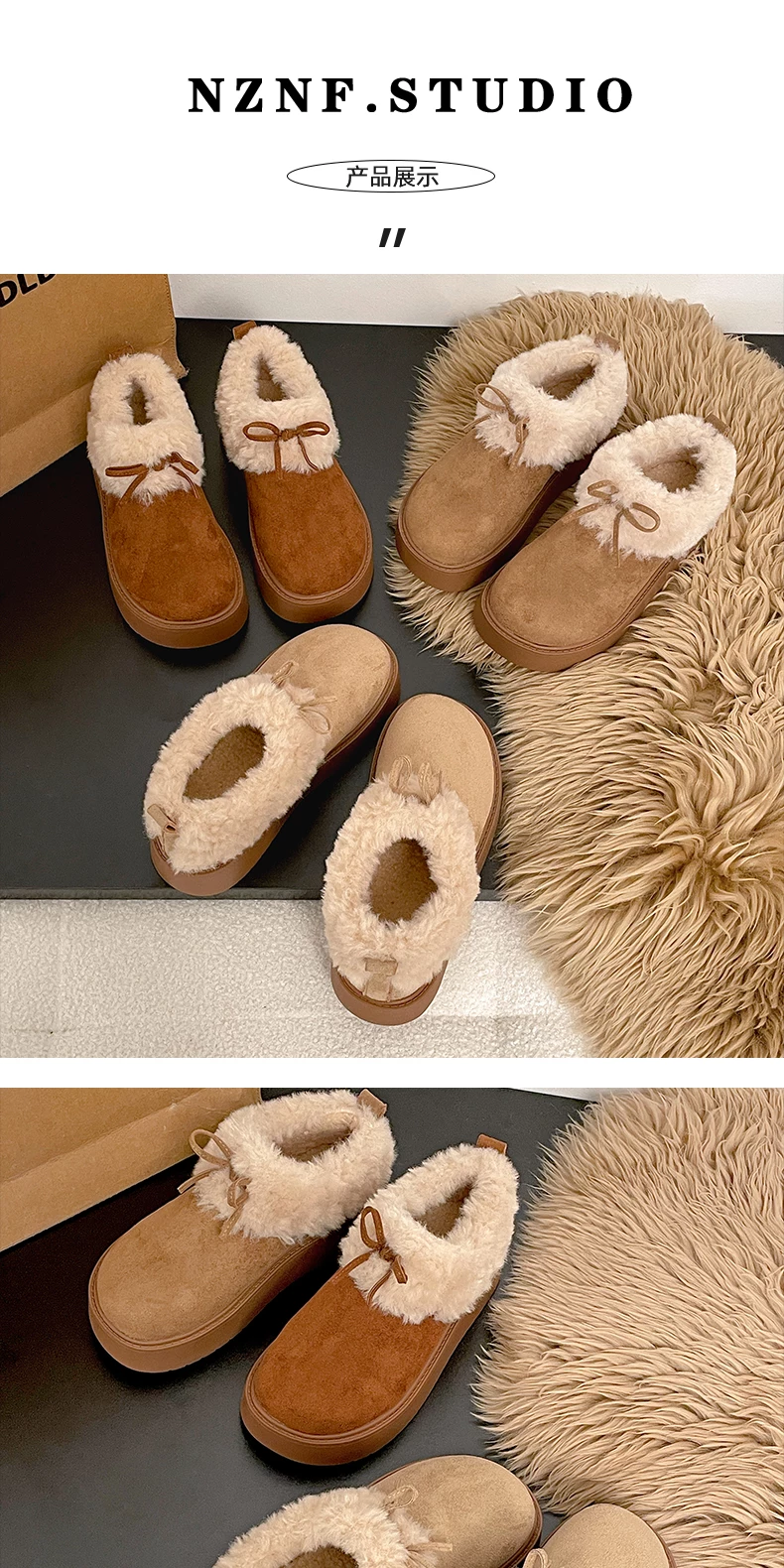 • Giày bông giữ ấm lót lông cừu đế dày dành cho nữ, kiểu mới mùa đông 2025, tăng chiều cao, đi ngoài trời, giày Birkenstock lông ấm áp