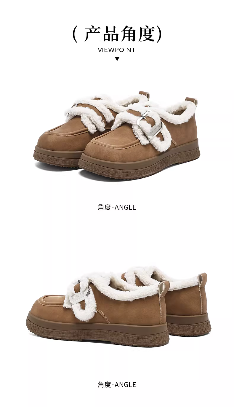 - Giày bông nỉ nâu Dadong dành cho nữ, mẫu mới mùa đông 2025, kiểu Birkenstock đế dày, ủng tuyết ấm áp, giày lười lông mềm.