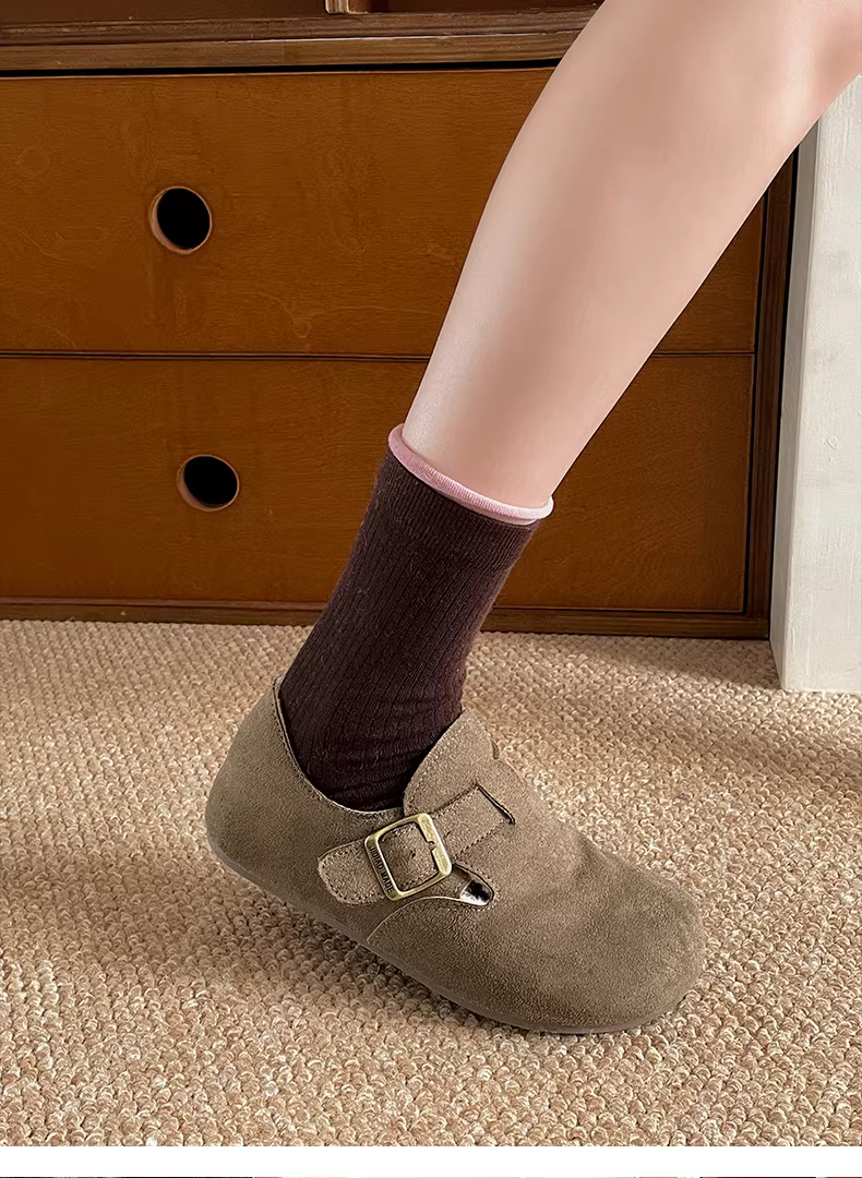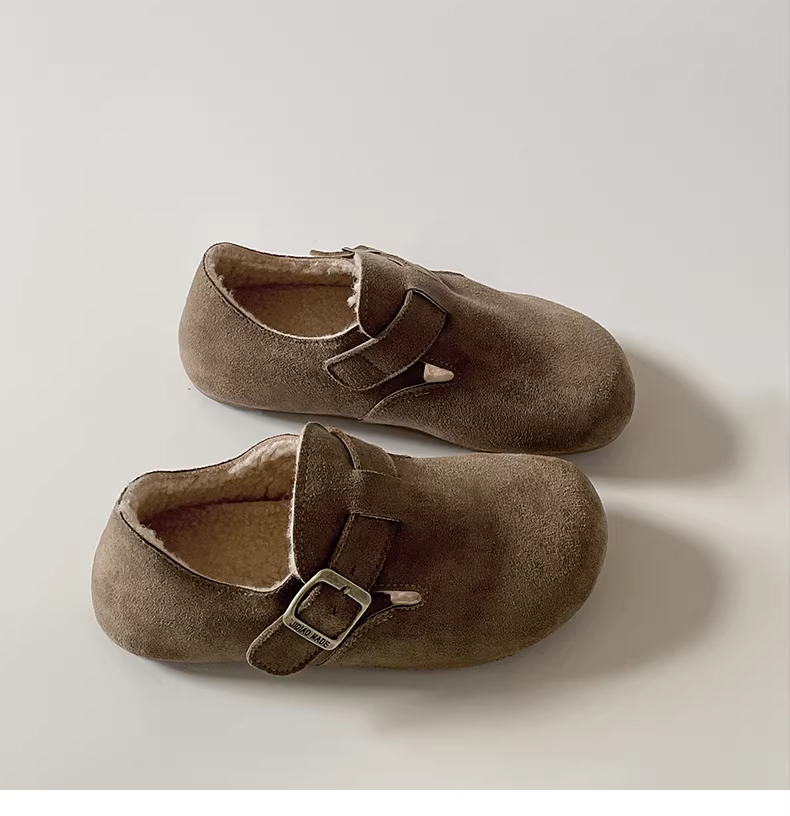 Giày bông tuyết đế dày kiểu Pháp màu nâu cổ điển dành cho nữ, mẫu mới mùa đông 2025, giữ ấm, chống trơn trượt, lót lông cừu, kiểu Birkenstock