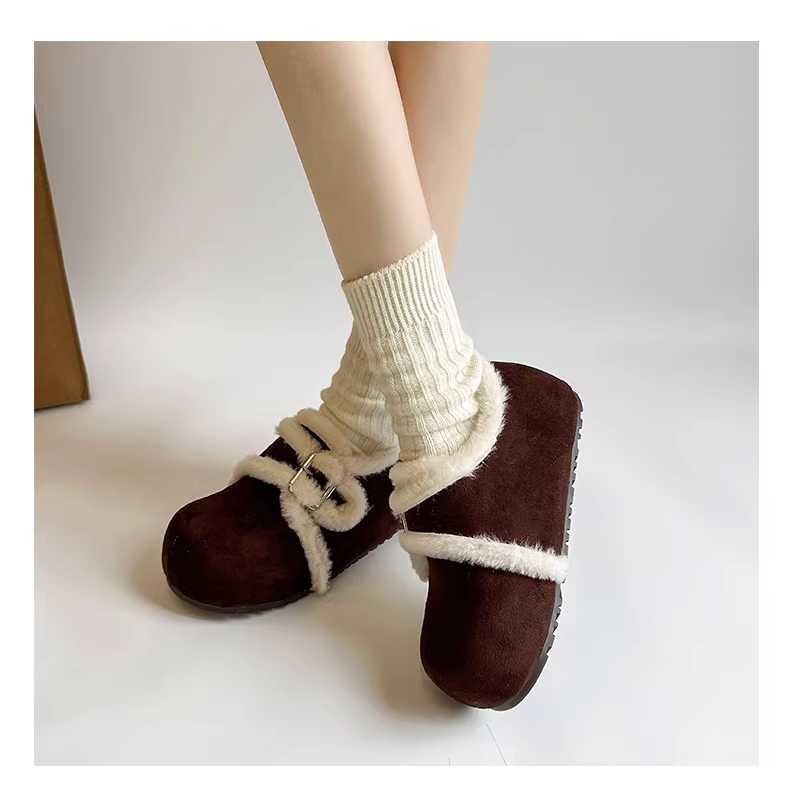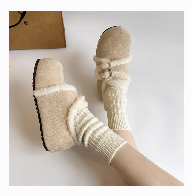 - Giày bông tuyết đế dày lót lông cừu kiểu cổ điển màu trắng dành cho nữ, kiểu mới mùa đông 2025, ấm áp và dày dặn kiểu Birkenstock.