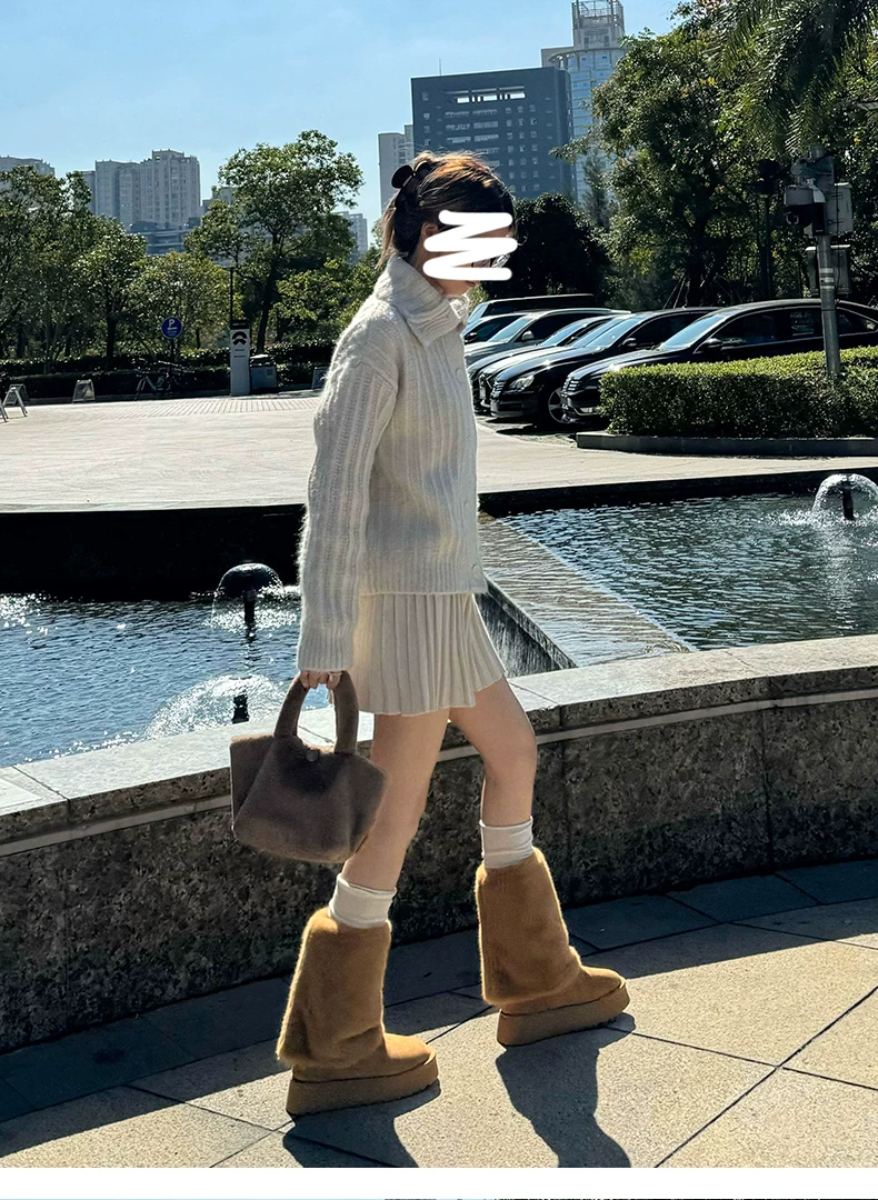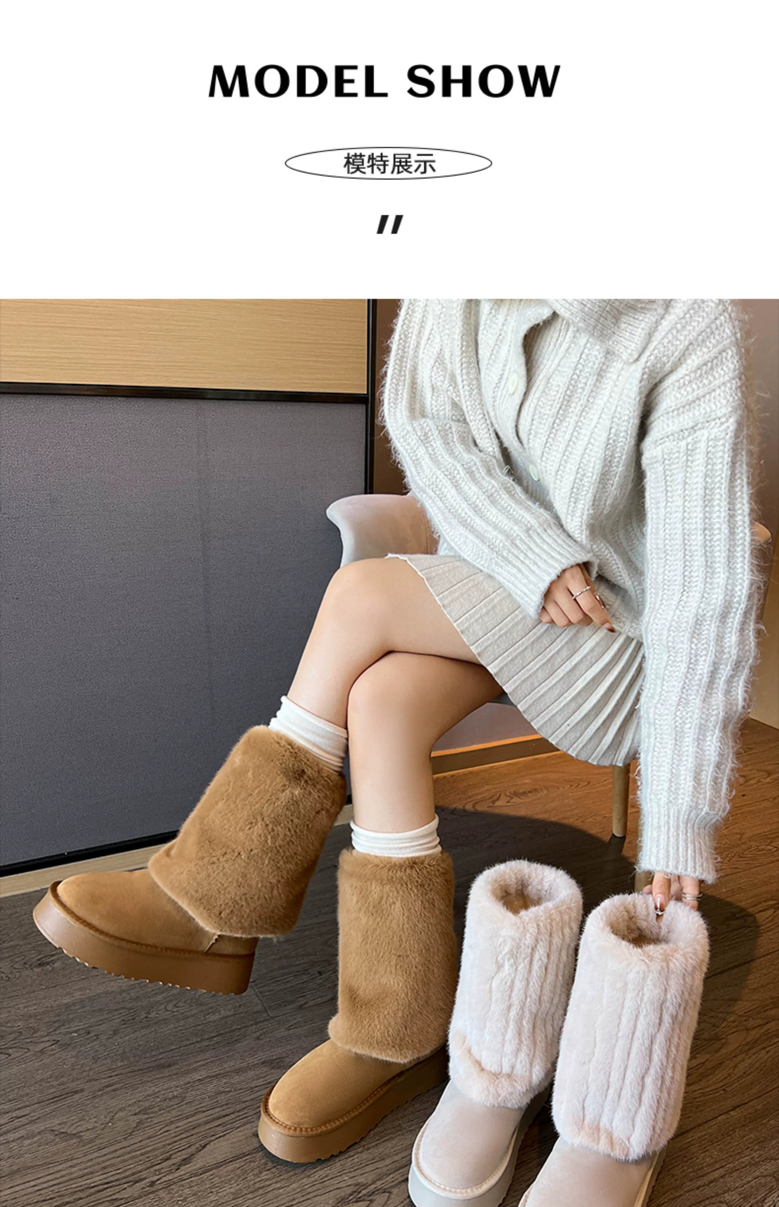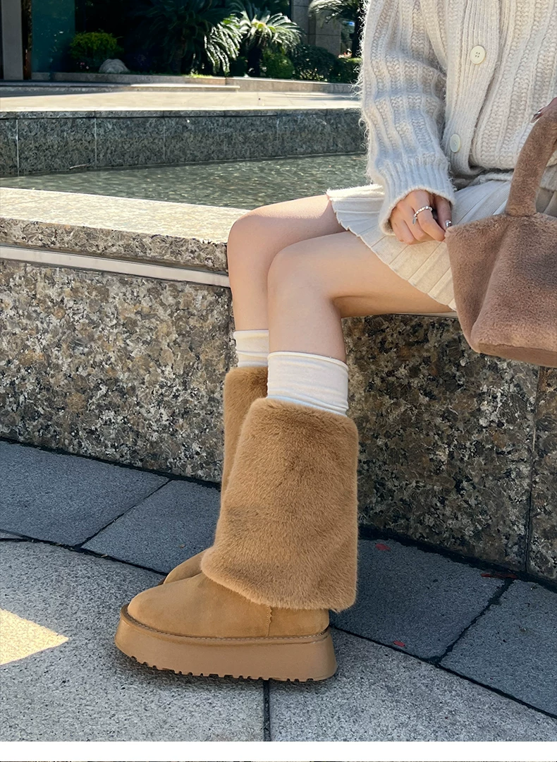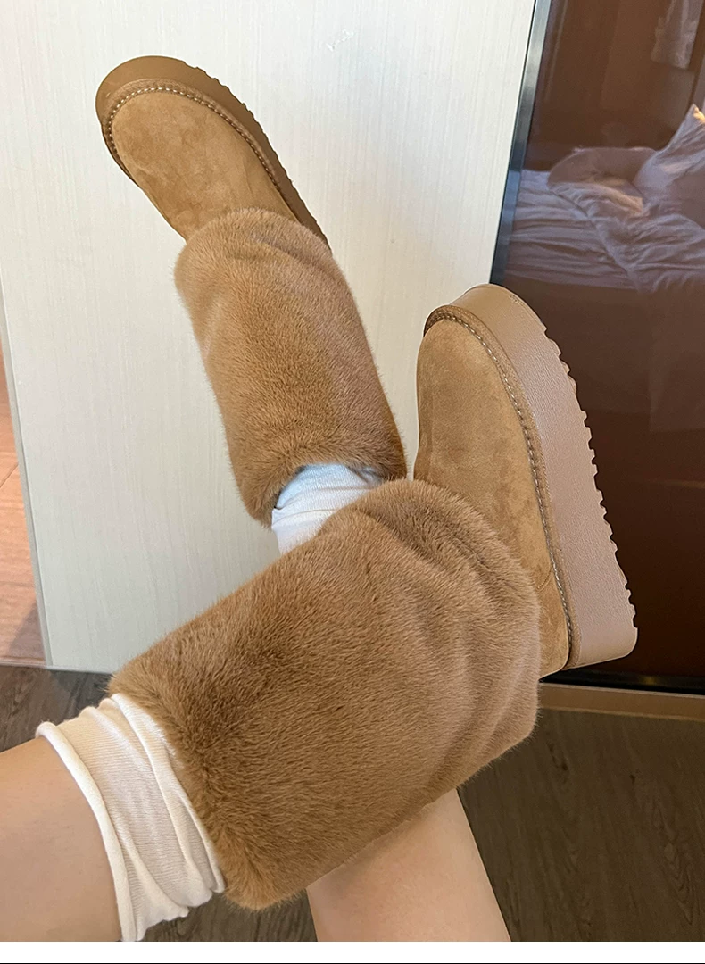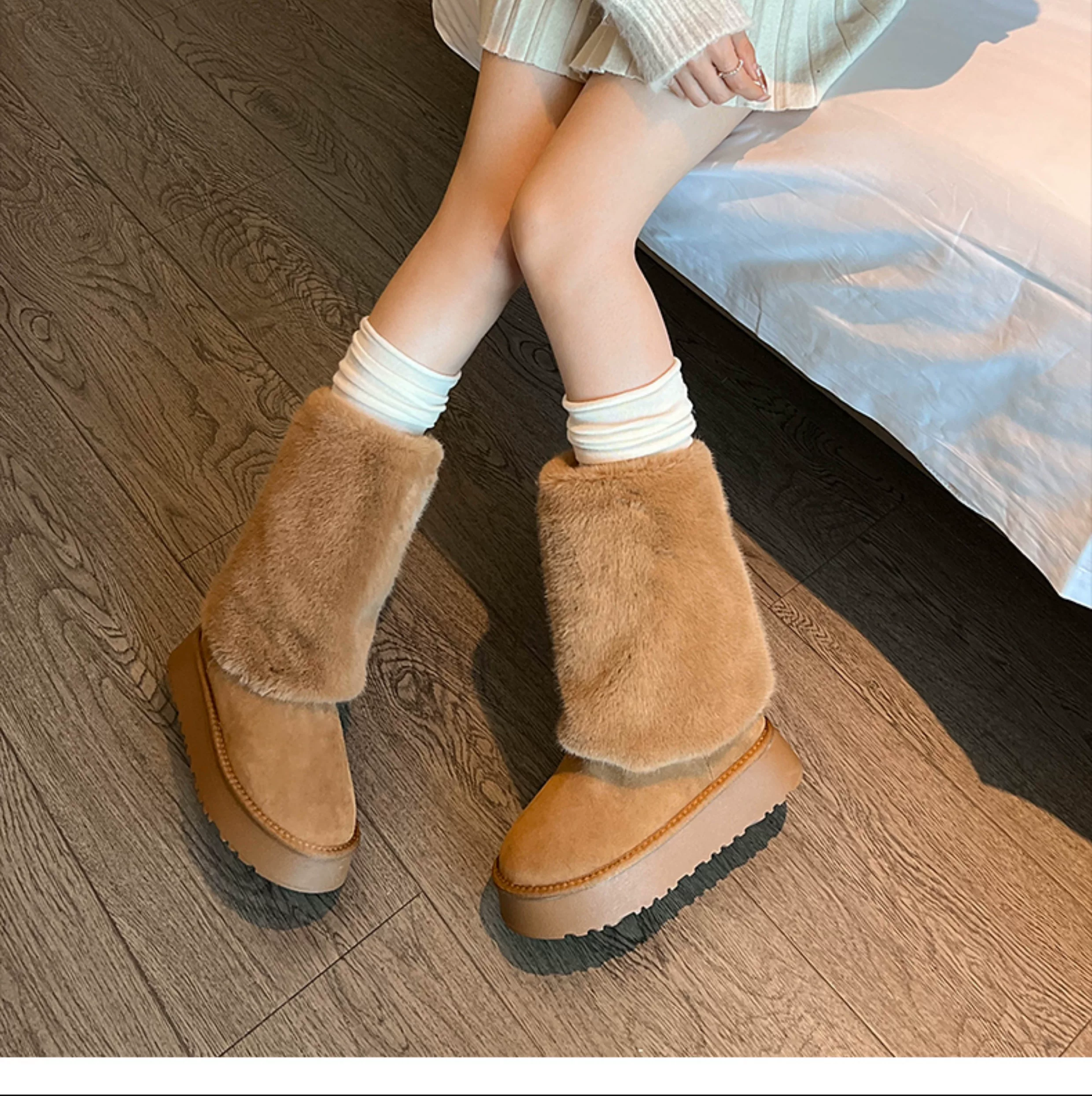 - Giày bốt cao cổ đế dày màu trắng thời trang dành cho nữ, mẫu mới mùa đông 2025, chống trơn trượt, lót lông cừu, dày dặn, giữ ấm bằng vải cotton.