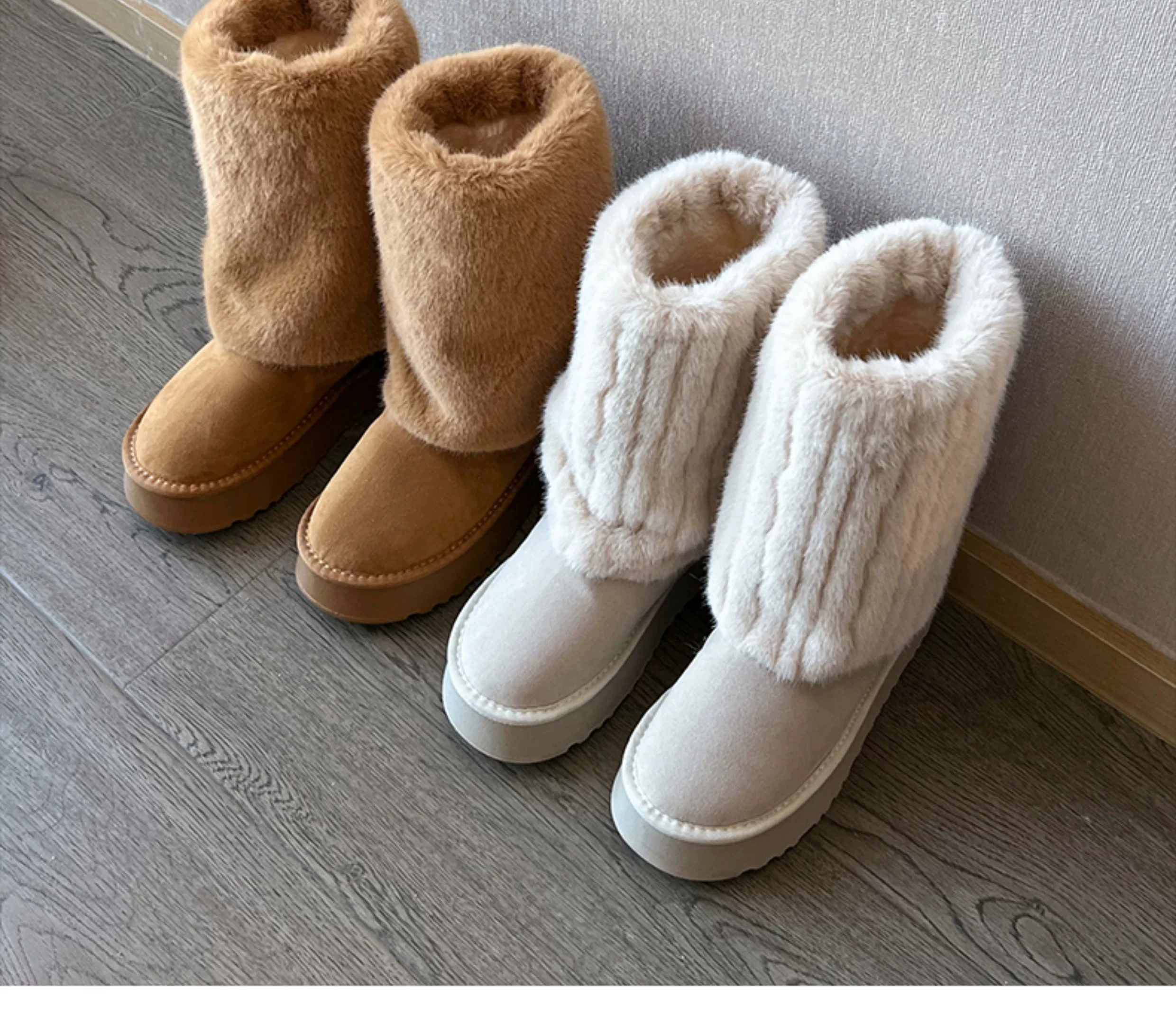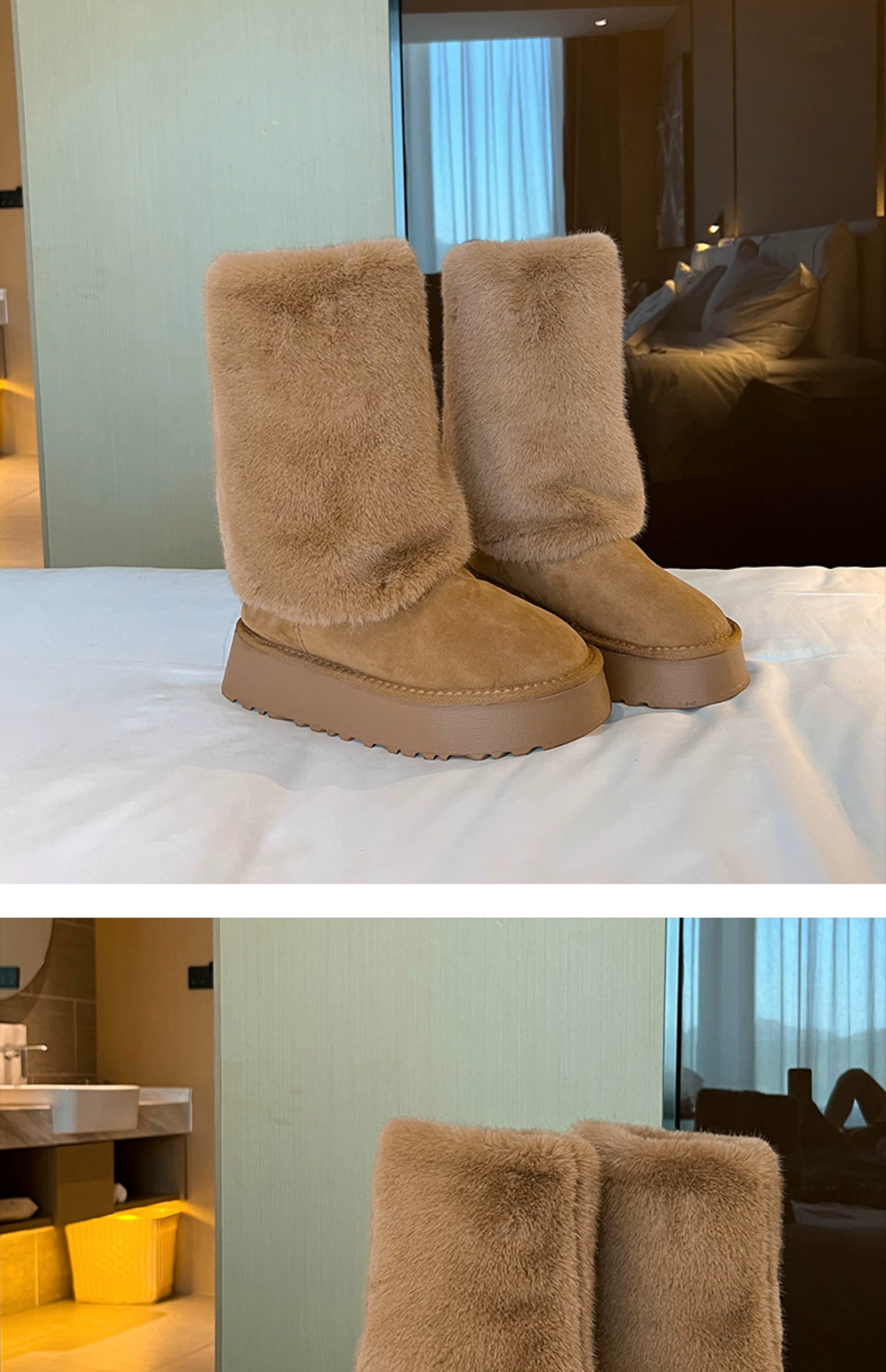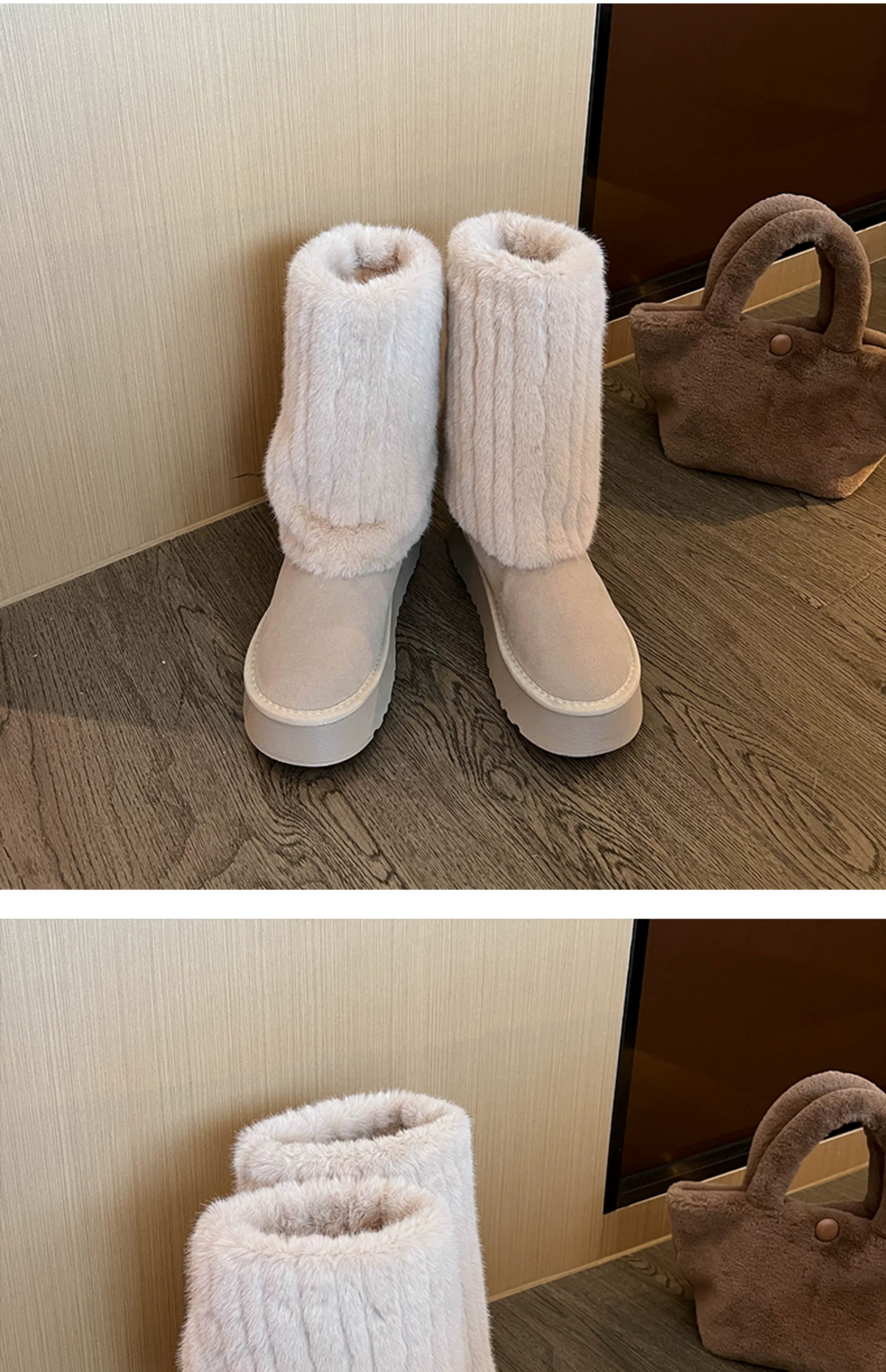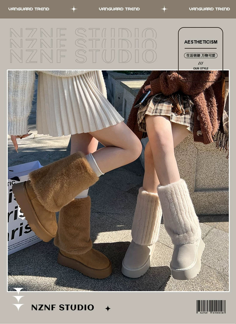 - Giày bốt cao cổ đế dày màu trắng thời trang dành cho nữ, mẫu mới mùa đông 2025, chống trơn trượt, lót lông cừu, dày dặn, giữ ấm bằng vải cotton.