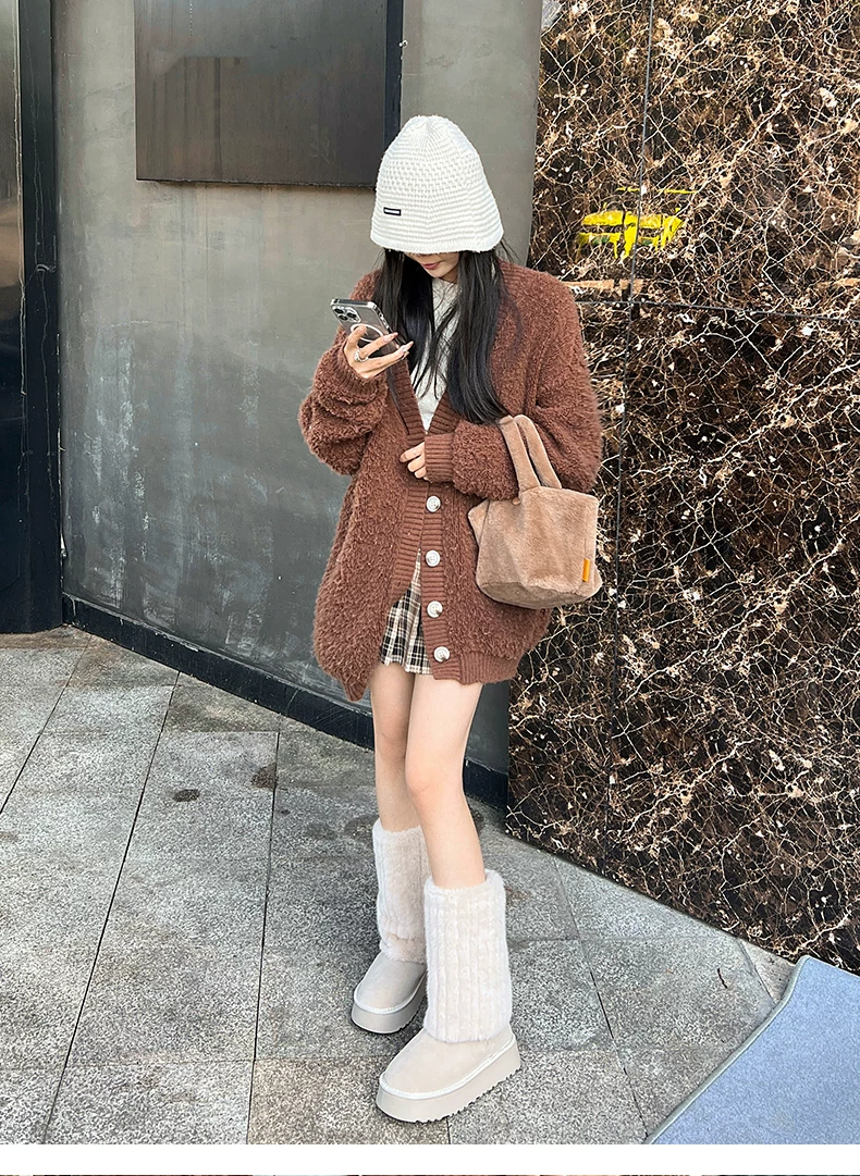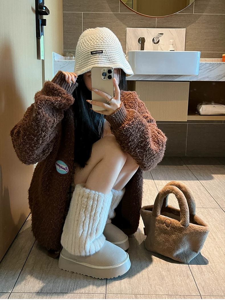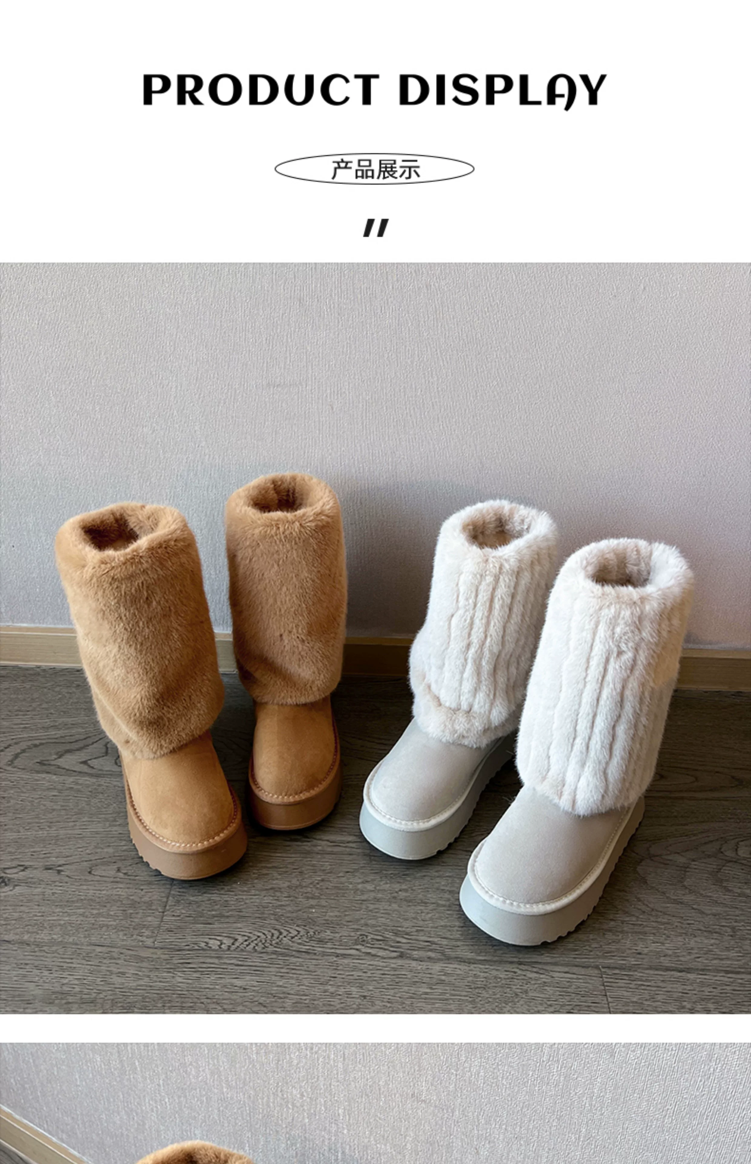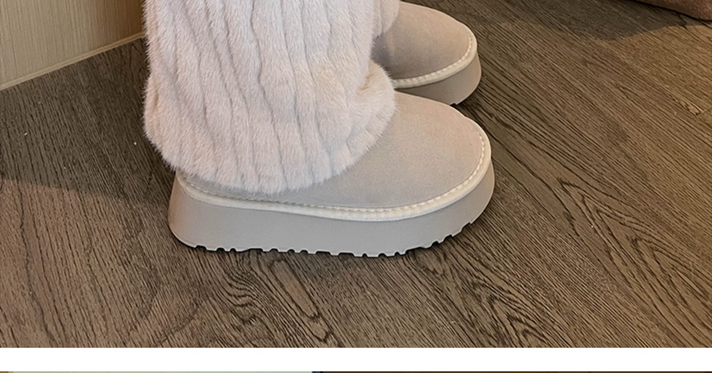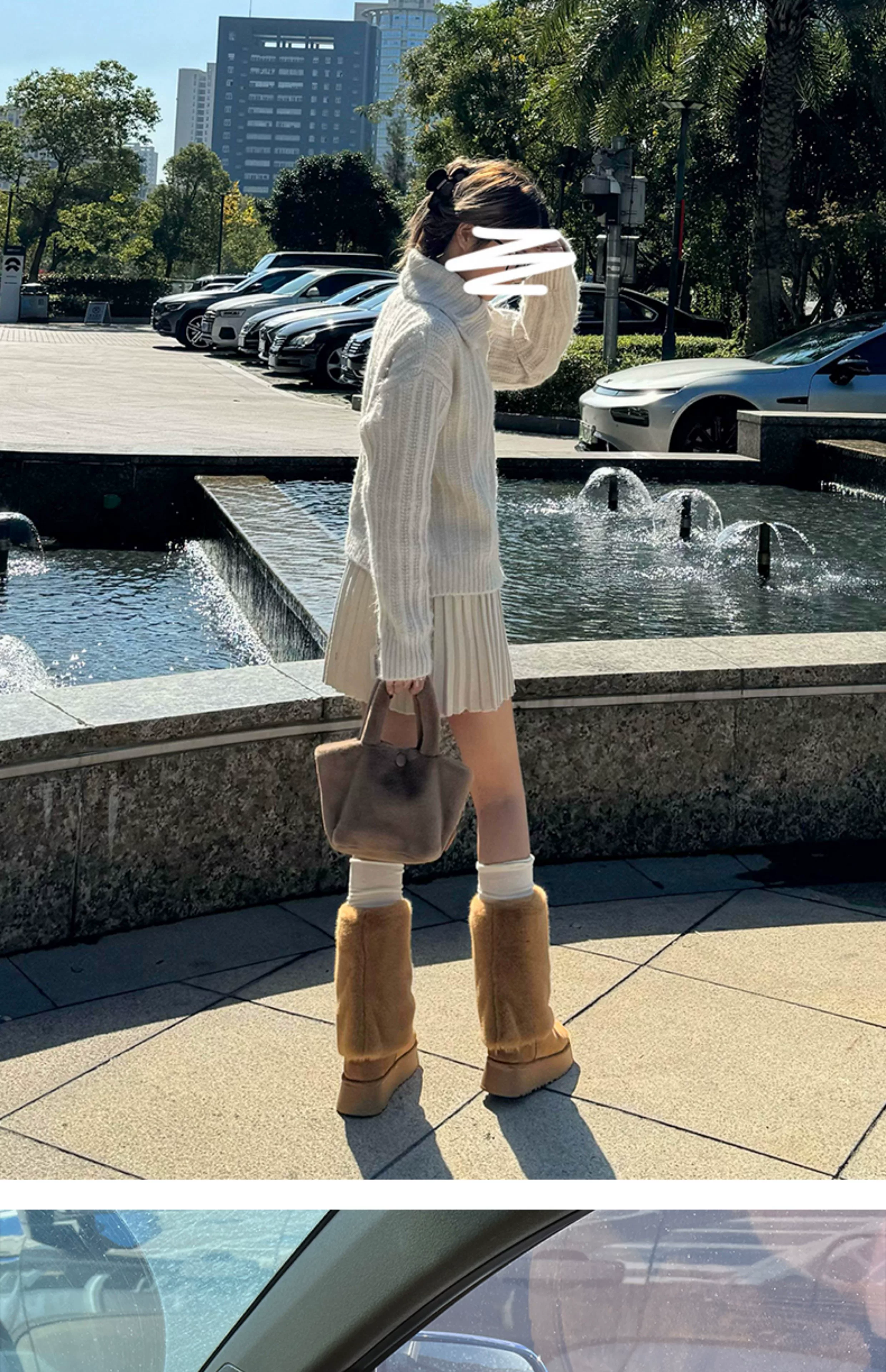 - Giày bốt cao cổ đế dày màu trắng thời trang dành cho nữ, mẫu mới mùa đông 2025, chống trơn trượt, lót lông cừu, dày dặn, giữ ấm bằng vải cotton.