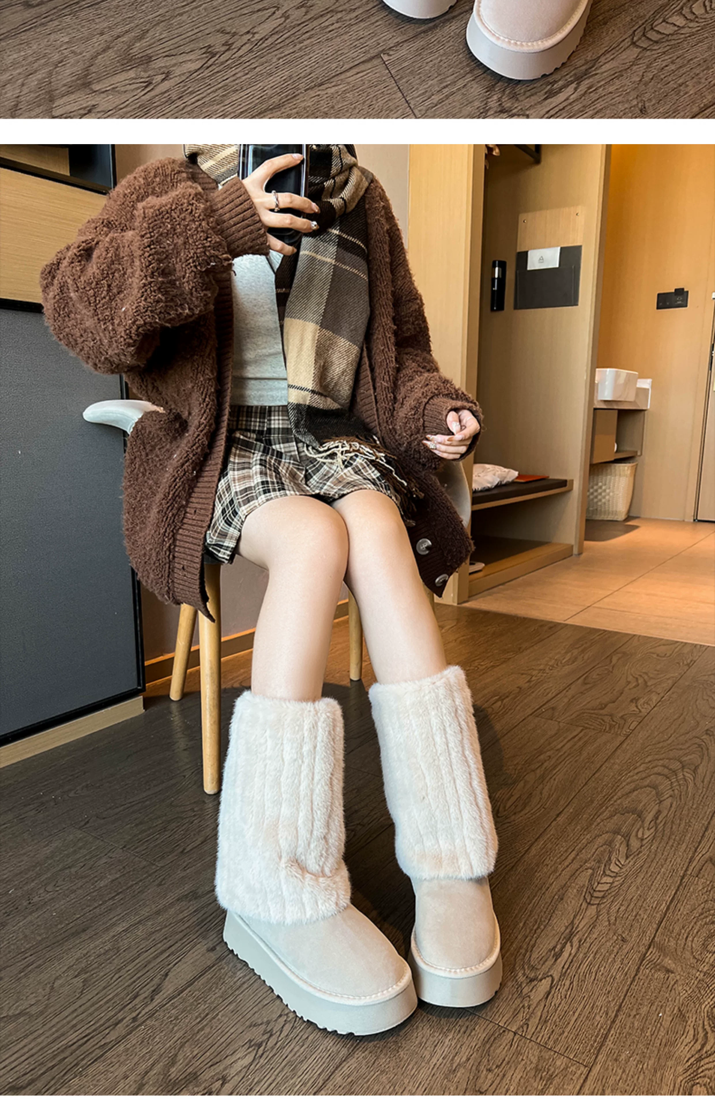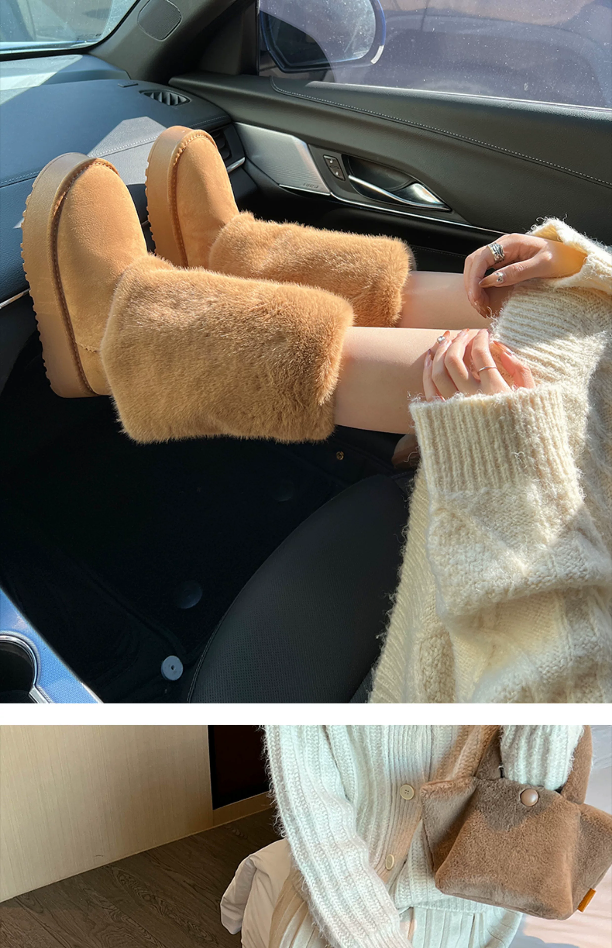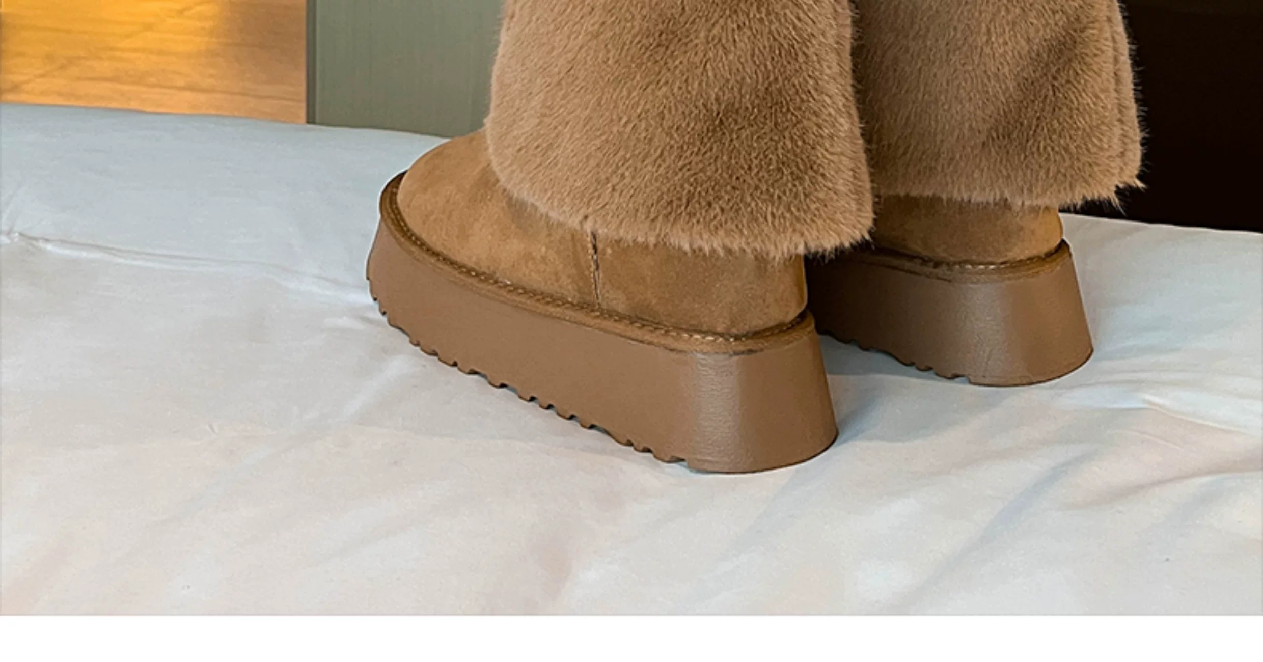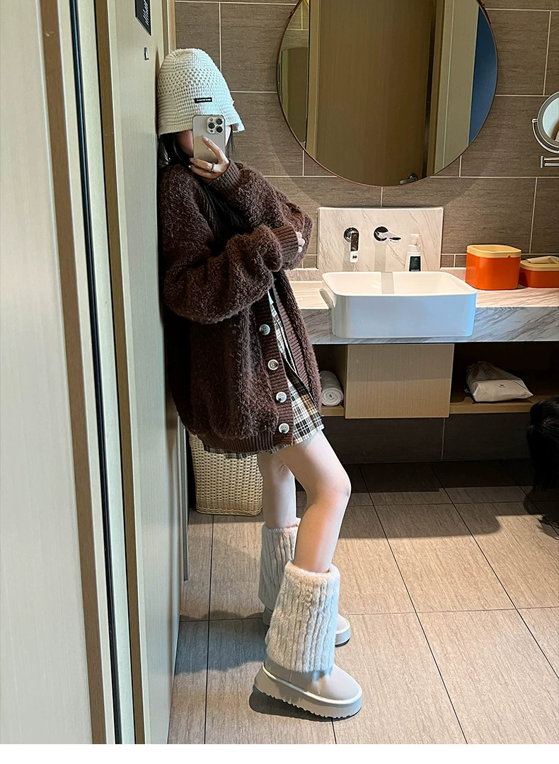 - Giày bốt cao cổ đế dày màu trắng thời trang dành cho nữ, mẫu mới mùa đông 2025, chống trơn trượt, lót lông cừu, dày dặn, giữ ấm bằng vải cotton.