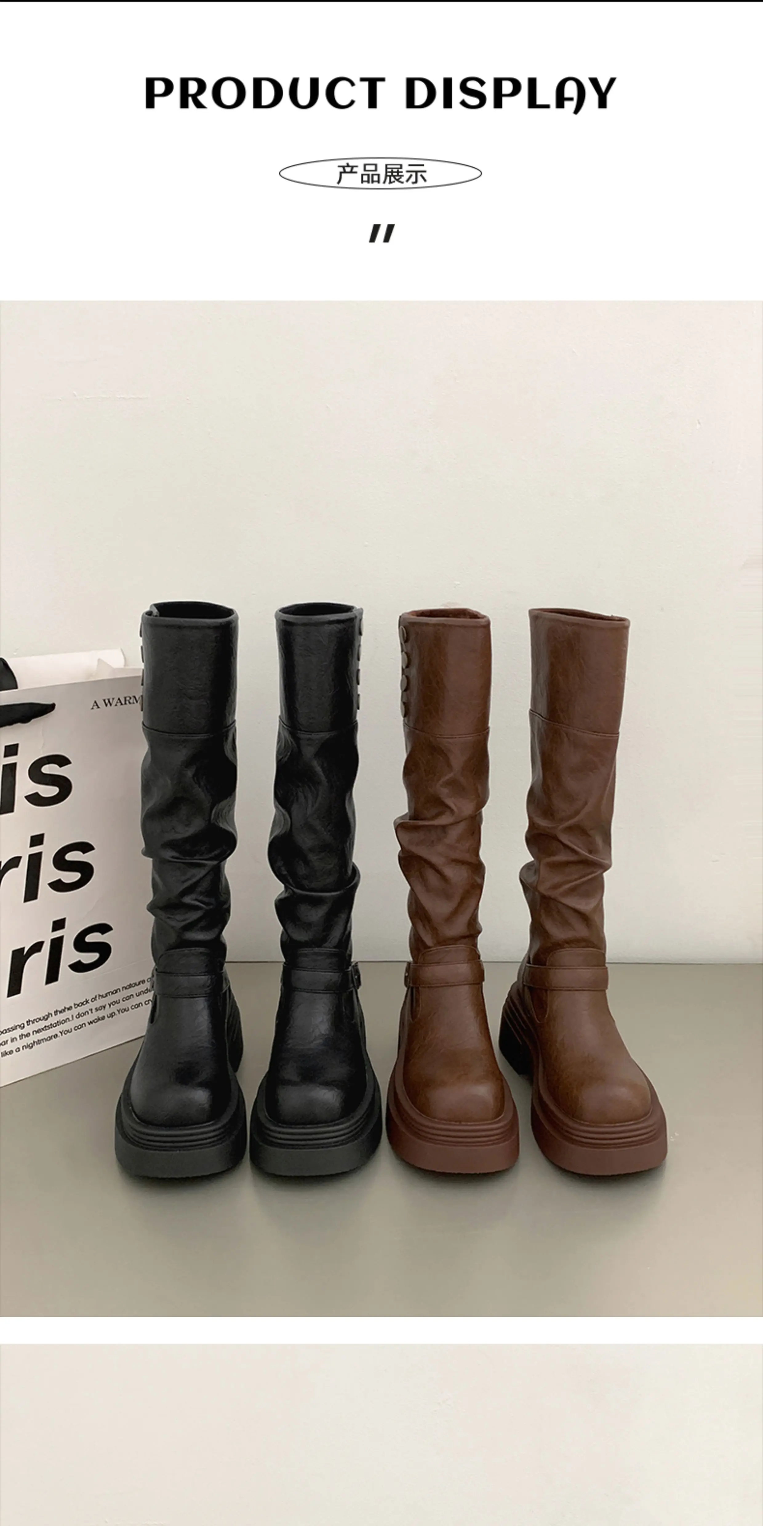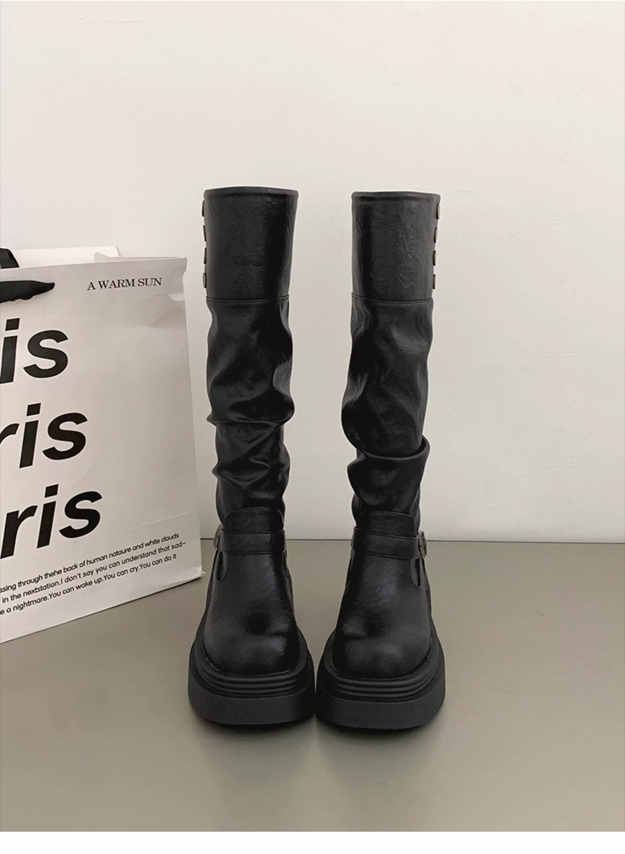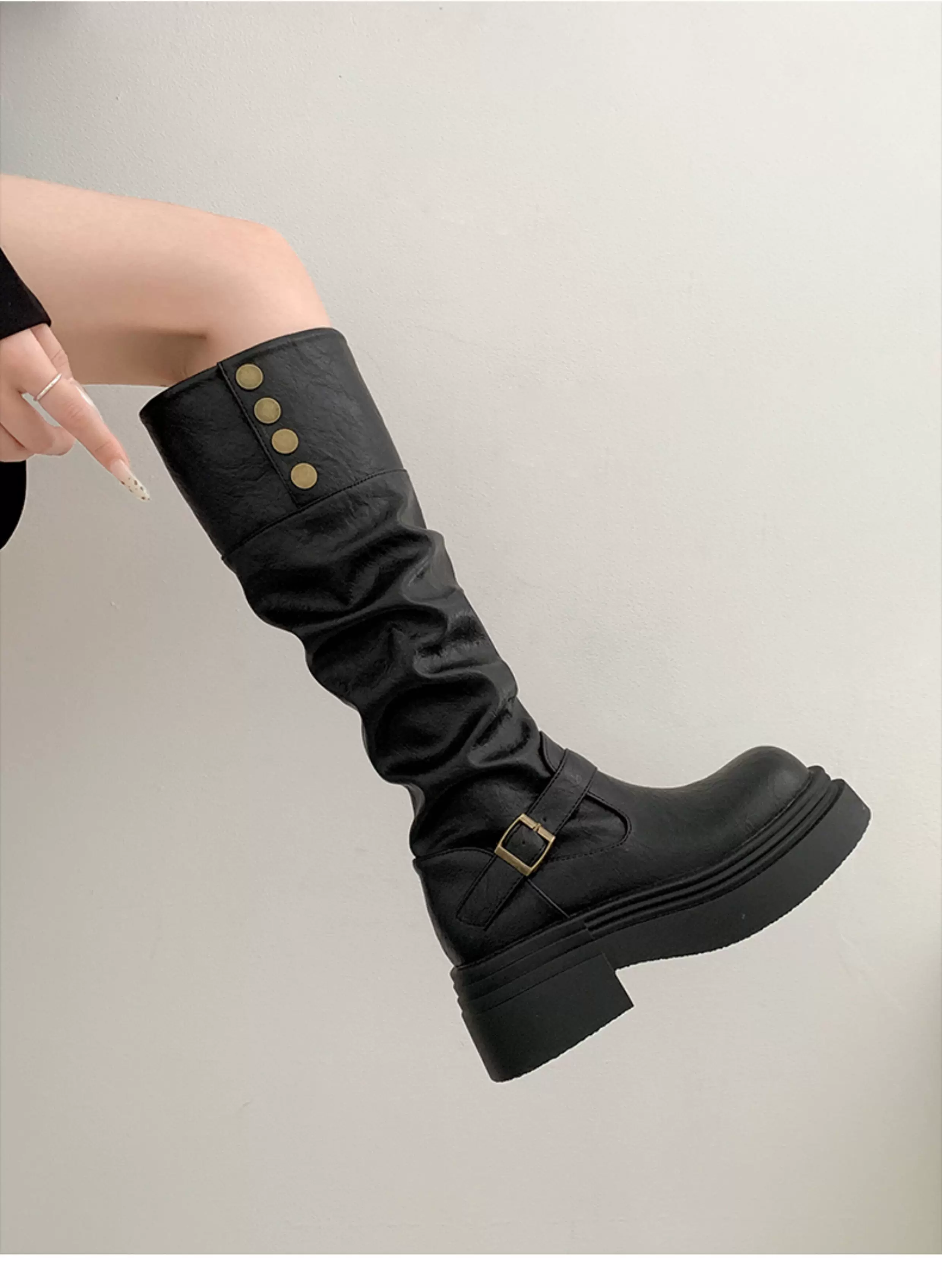 - Giày bốt cao cổ màu đen, bốt cao cổ đế dày mùa thu đông dành cho nữ, kiểu dáng mới 2025, tôn dáng và tăng chiều cao, phù hợp với người nhỏ nhắn có chân to, kiểu bốt đi xe.