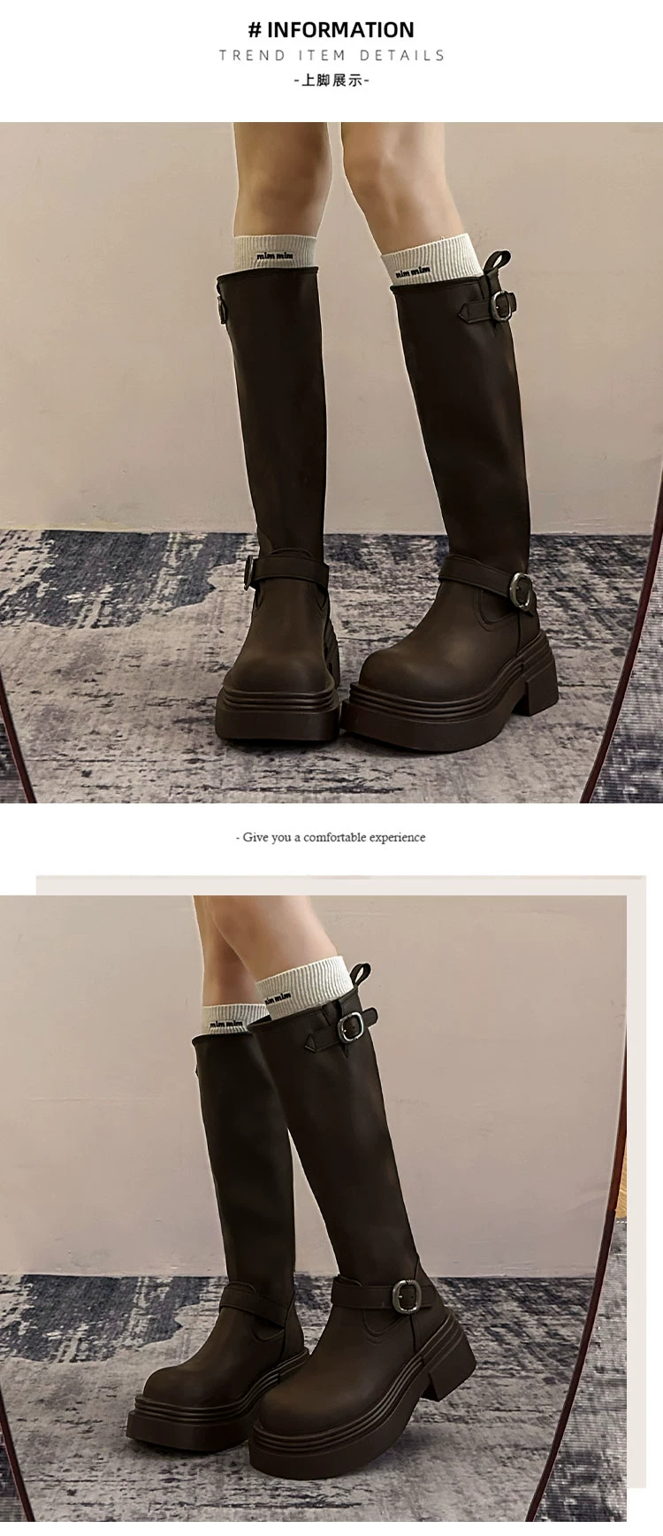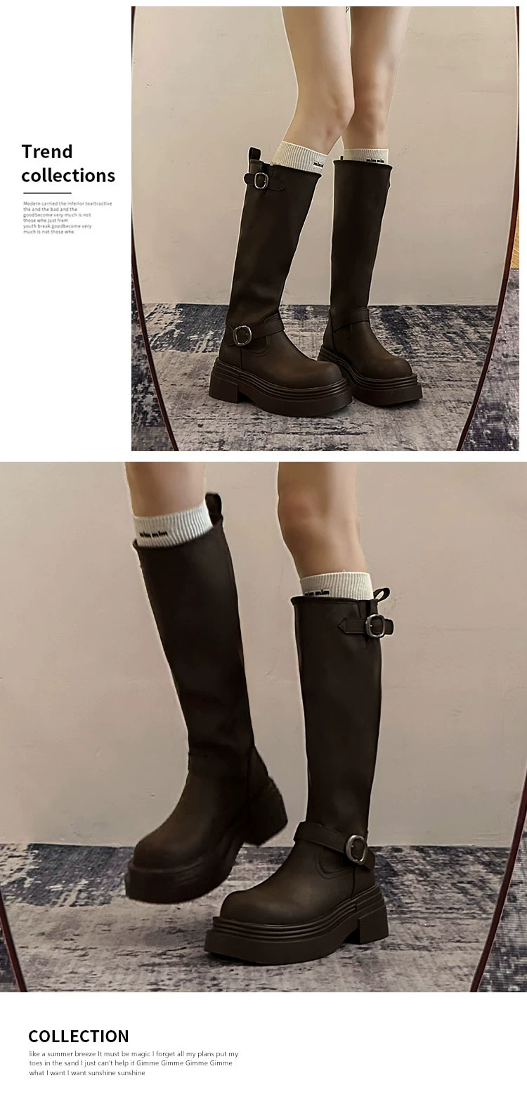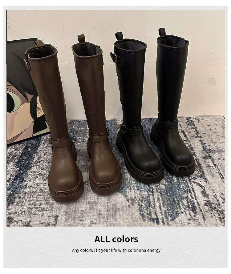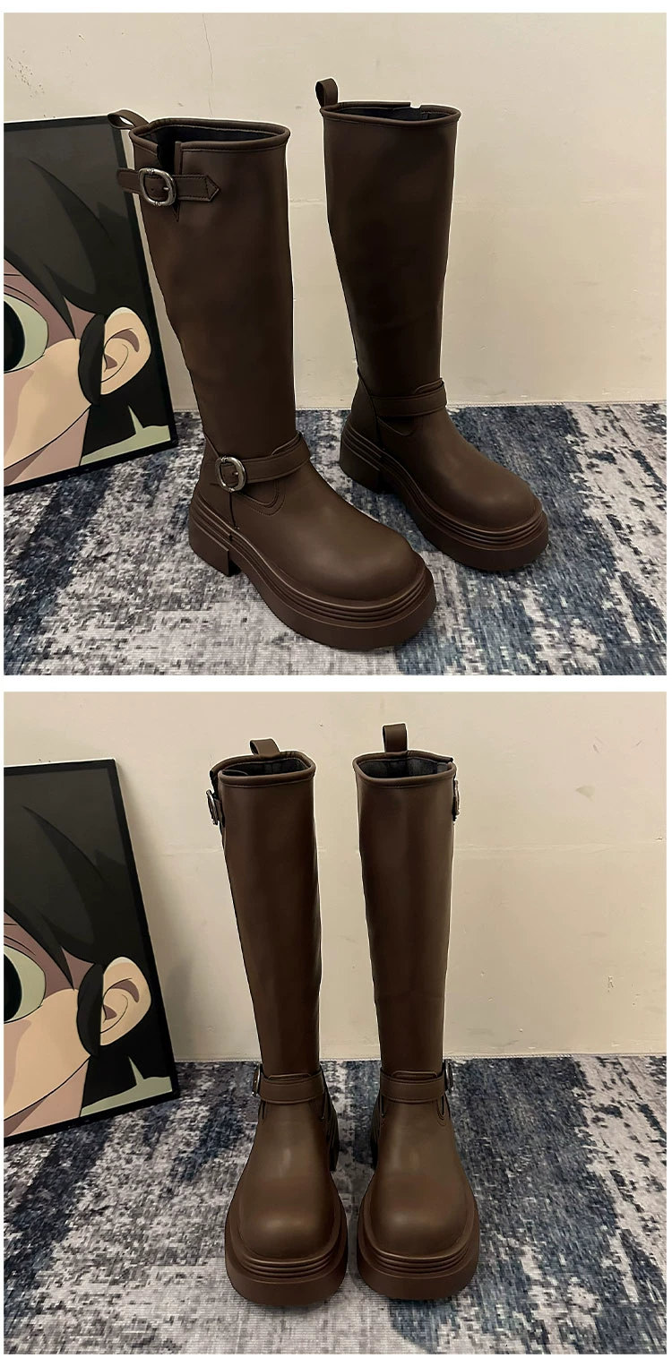 • Giày bốt cao đến đùi đế xuồng chunky kiểu Mỹ màu đen dành cho nữ, mẫu mới thu đông 2025, kiểu dáng Anh, tôn dáng, kiểu đi cưỡi ngựa