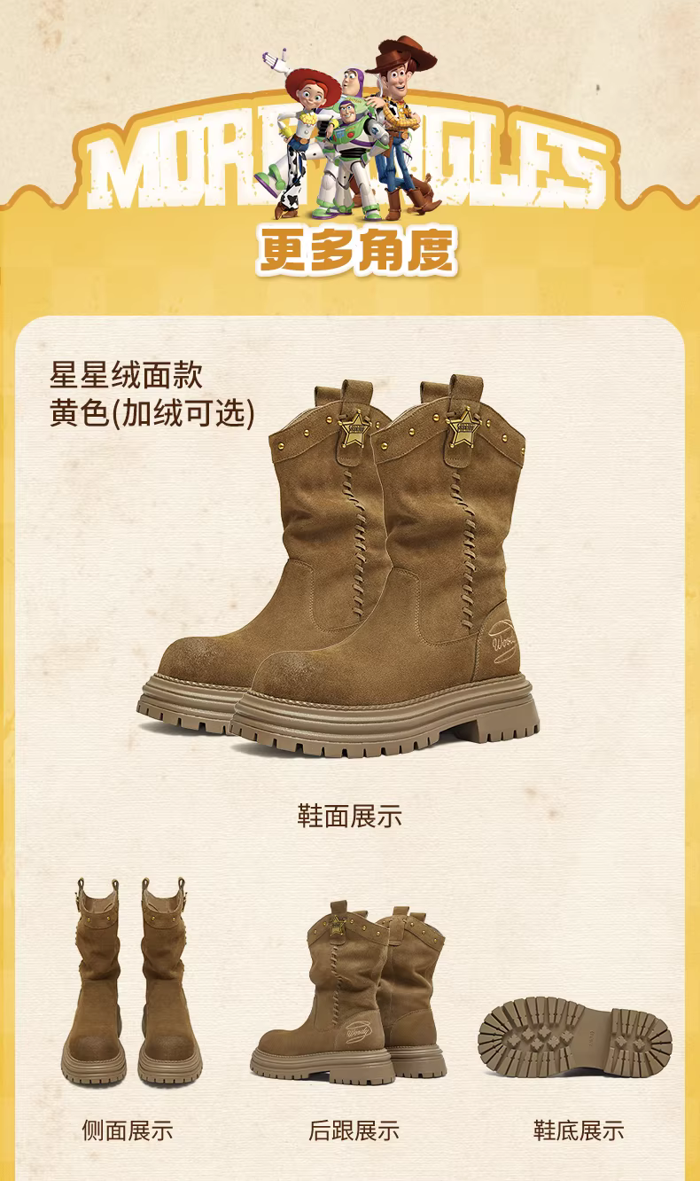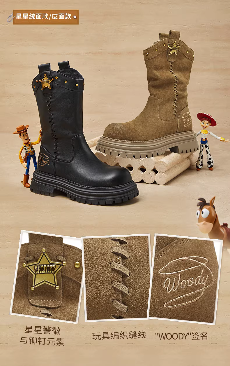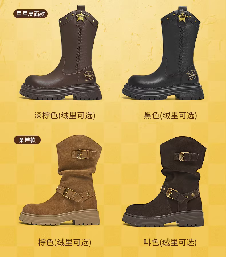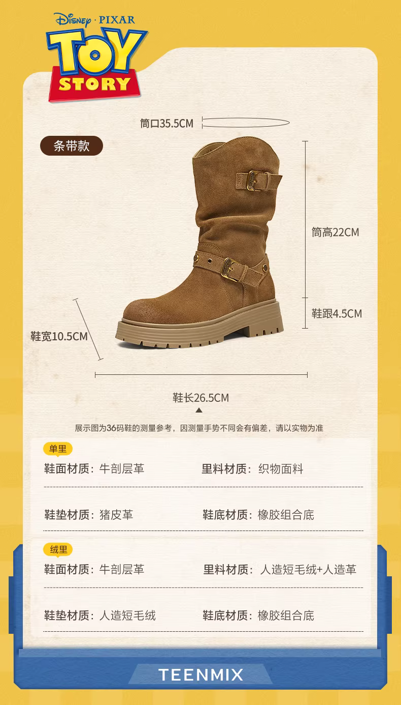 - Giày bốt cao đến giữa bắp chân đế dày kiểu cổ điển có lót lông cừu Wu Xuan Yi Tianmei Yi Toy Story Gold V dành cho nữ
