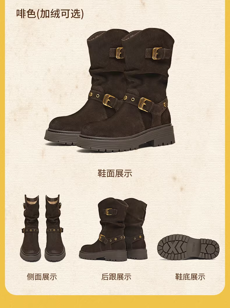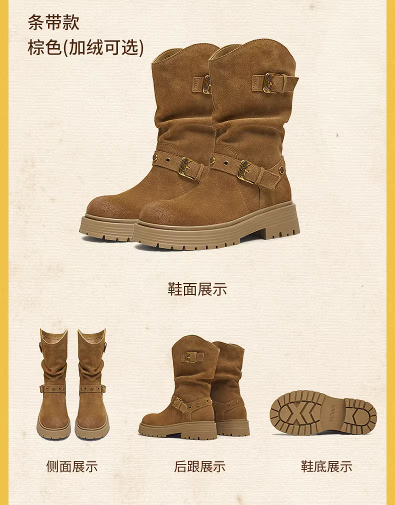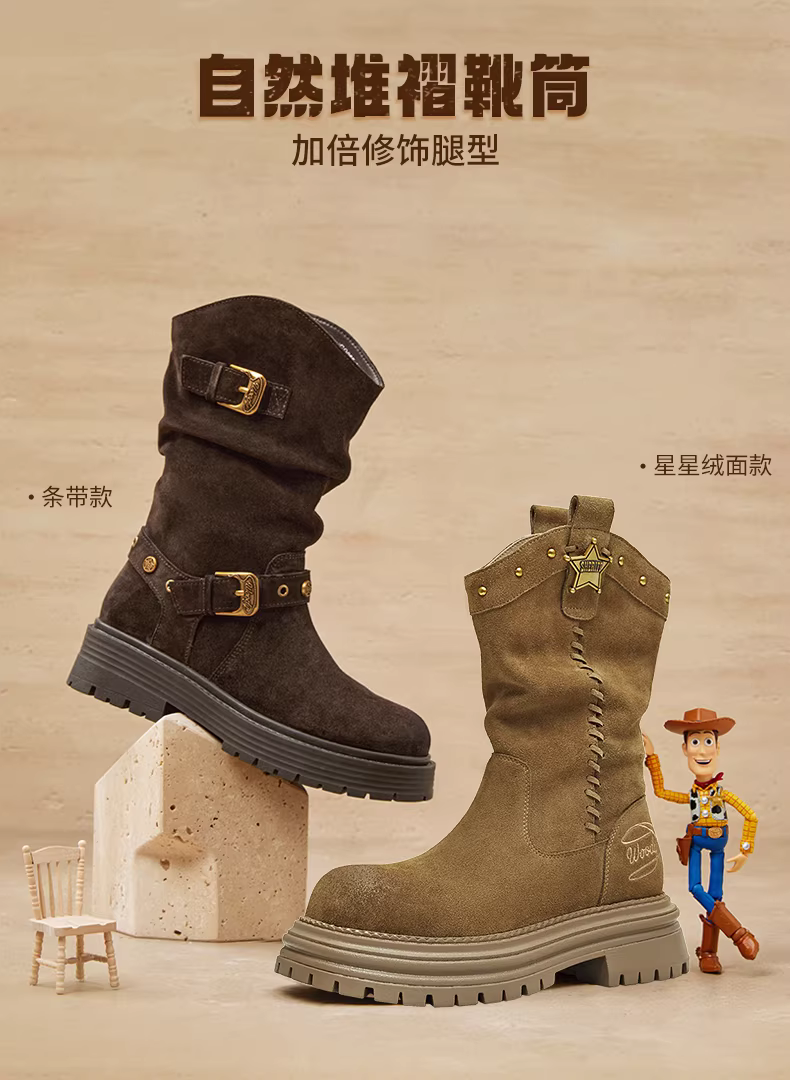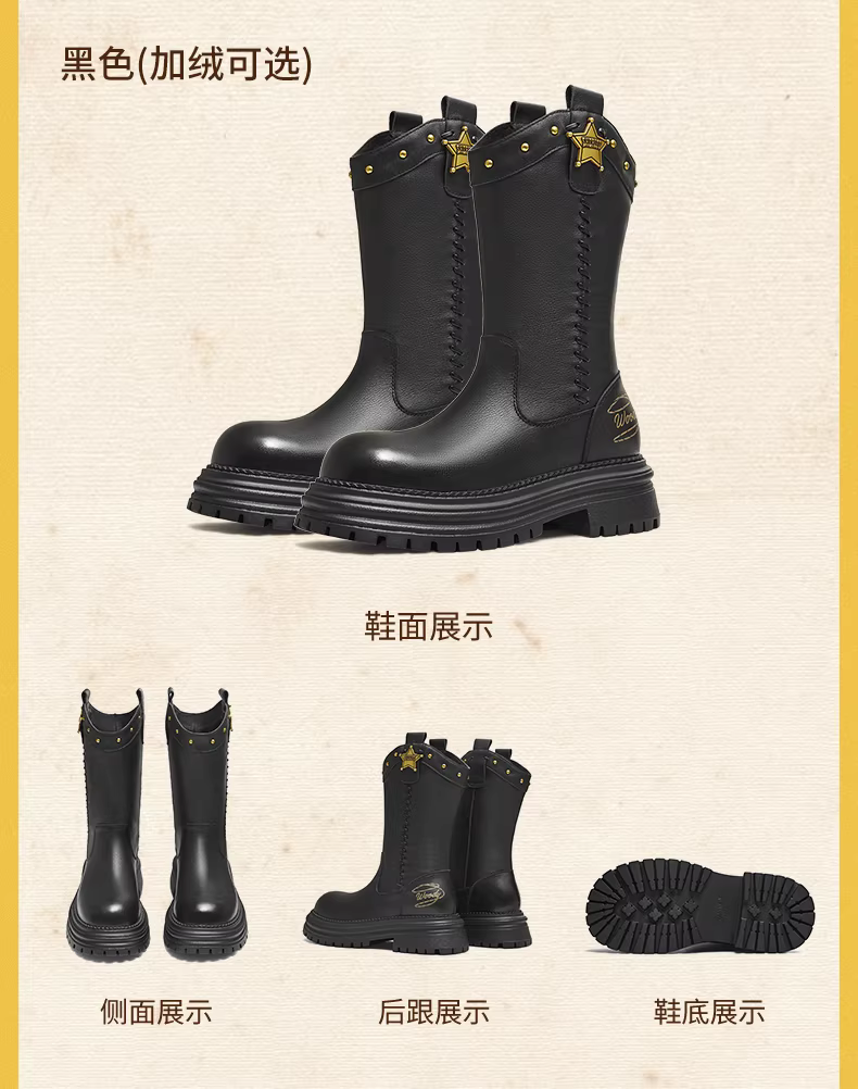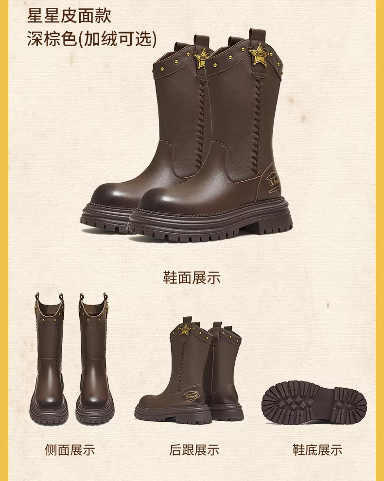 - Giày bốt cao đến giữa bắp chân đế dày kiểu cổ điển có lót lông cừu Wu Xuan Yi Tianmei Yi Toy Story Gold V dành cho nữ