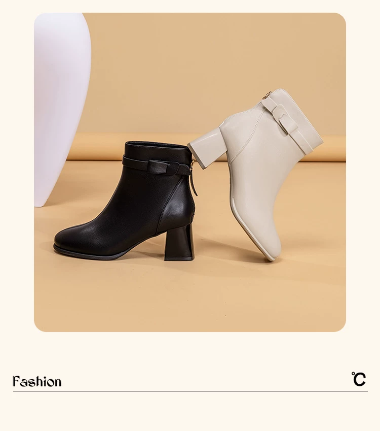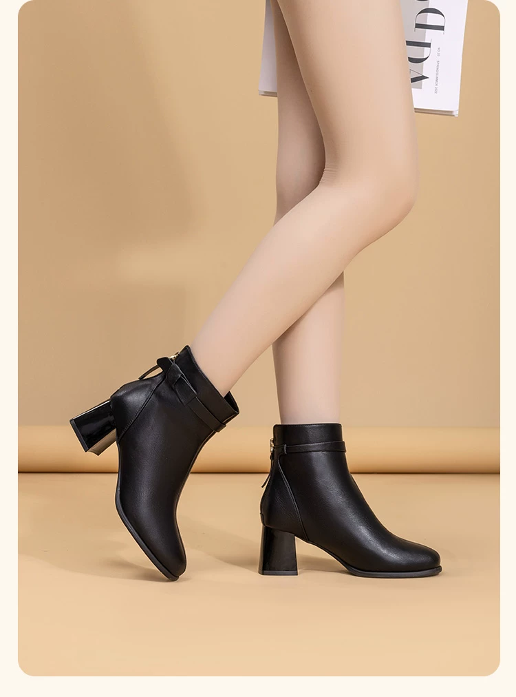 - Giày bốt cao gót đế thô Dadong dành cho nữ, mẫu mới thu đông 2025, lót lông giữ ấm, màu đen, kiểu dáng Pháp, ôm sát mắt cá chân.