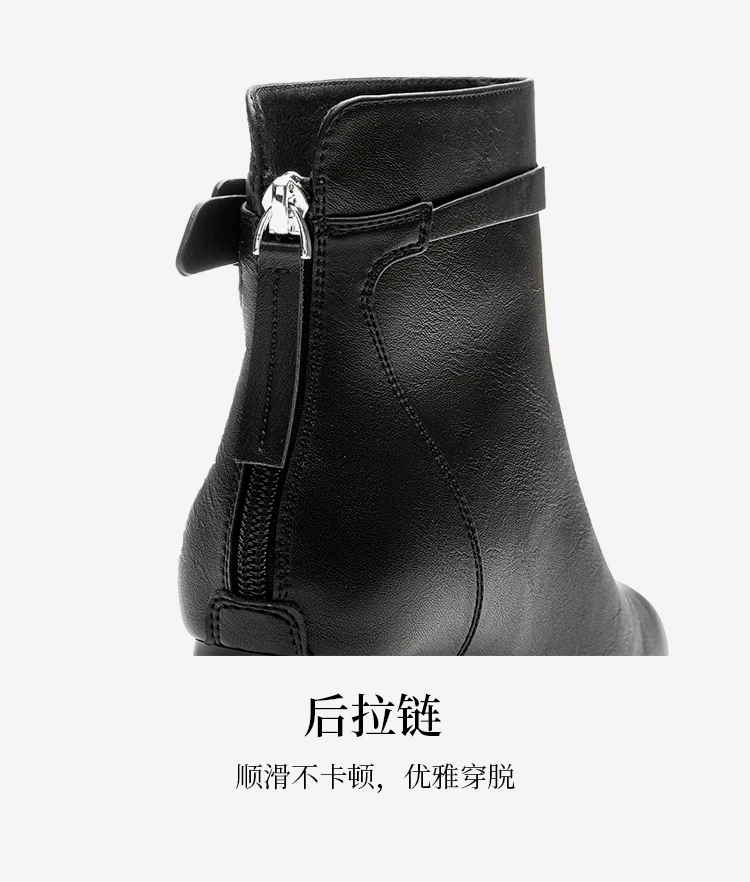 Giày bốt cao gót đế thô Dadong dành cho nữ, mẫu mới thu đông 2025, lót lông giữ ấm, màu đen, kiểu dáng Pháp, ôm sát mắt cá chân.