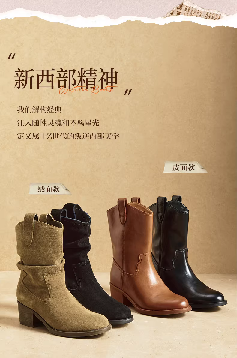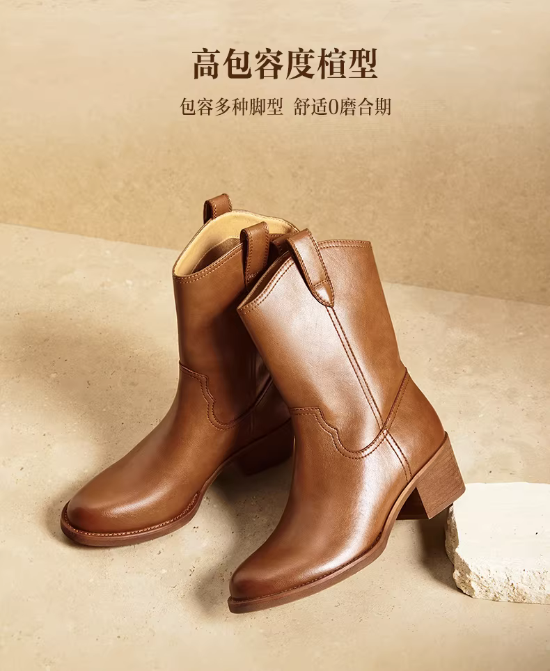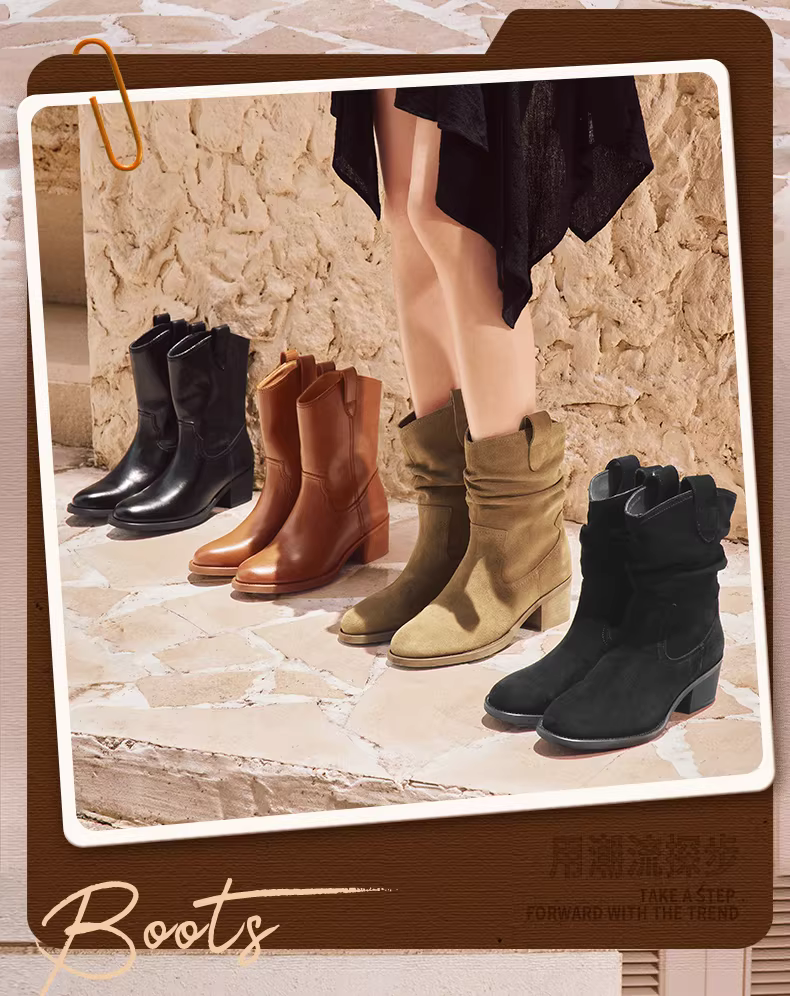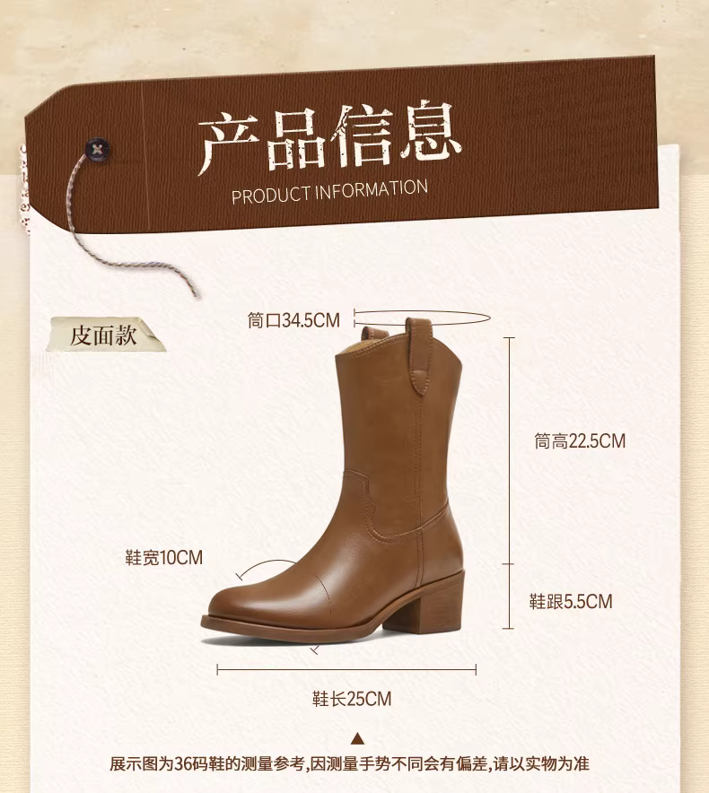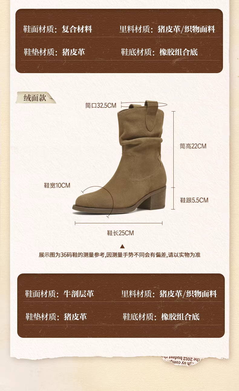 - Giày bốt cao gót kiểu Tianmeiyi, đế thô, phong cách retro, màu vàng, kiểu dáng miền Tây, có lớp lót lông cừu, kiểu xếp lớp, bốt ngắn cao gót nữ, mẫu mới 2025.