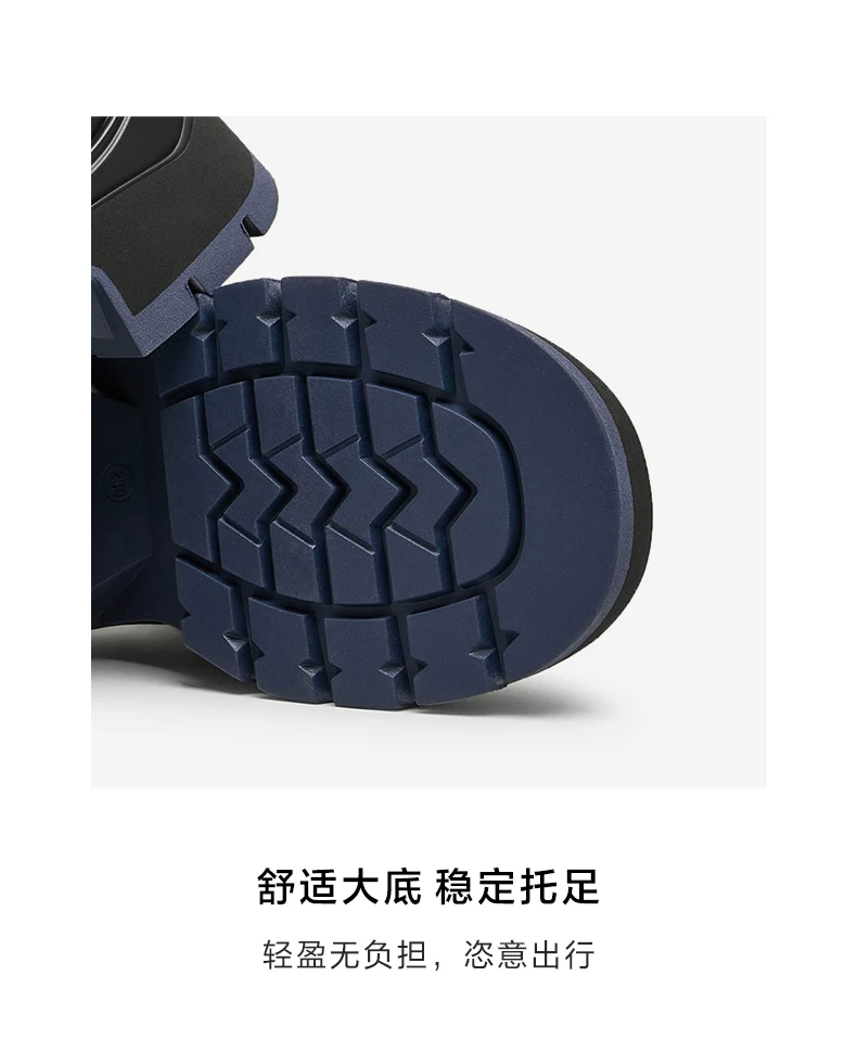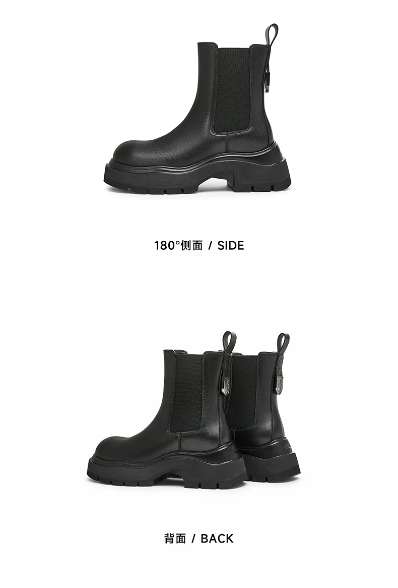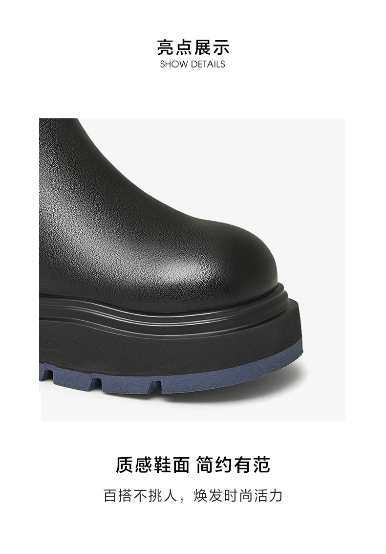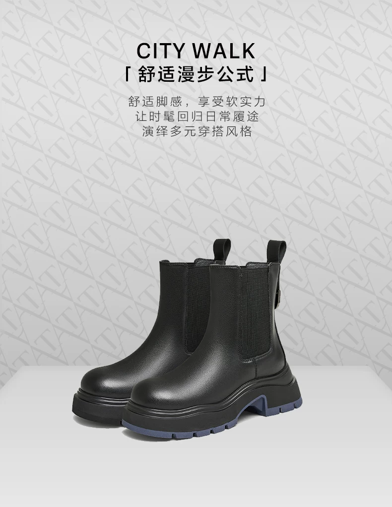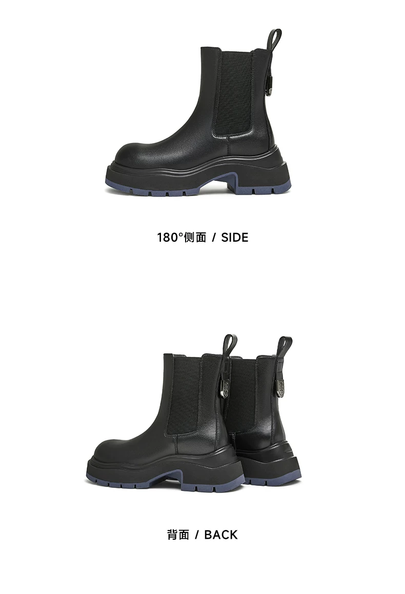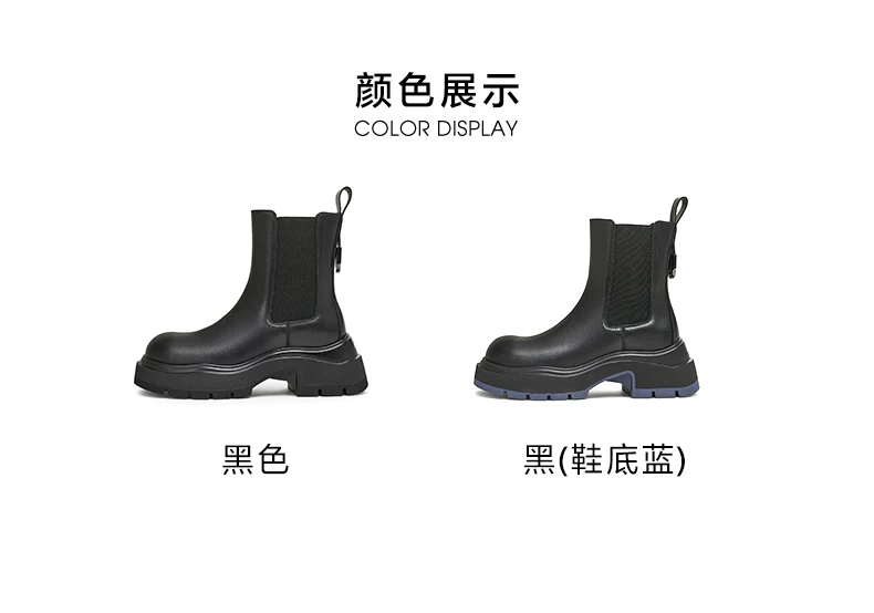 - Giày bốt Chelsea đế dày TATA Giày bốt nữ phối màu Giày bốt hình trụ giảm béo mùa đông Mẫu mới WJZ03DD4