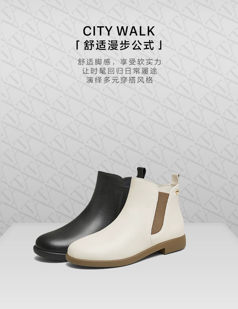 - Giày bốt Chelsea đi làm phong cách Pháp của TATA Giày bốt nữ da bò bốt ngắn thông thường mùa đông mẫu mới 7BJ46DD4