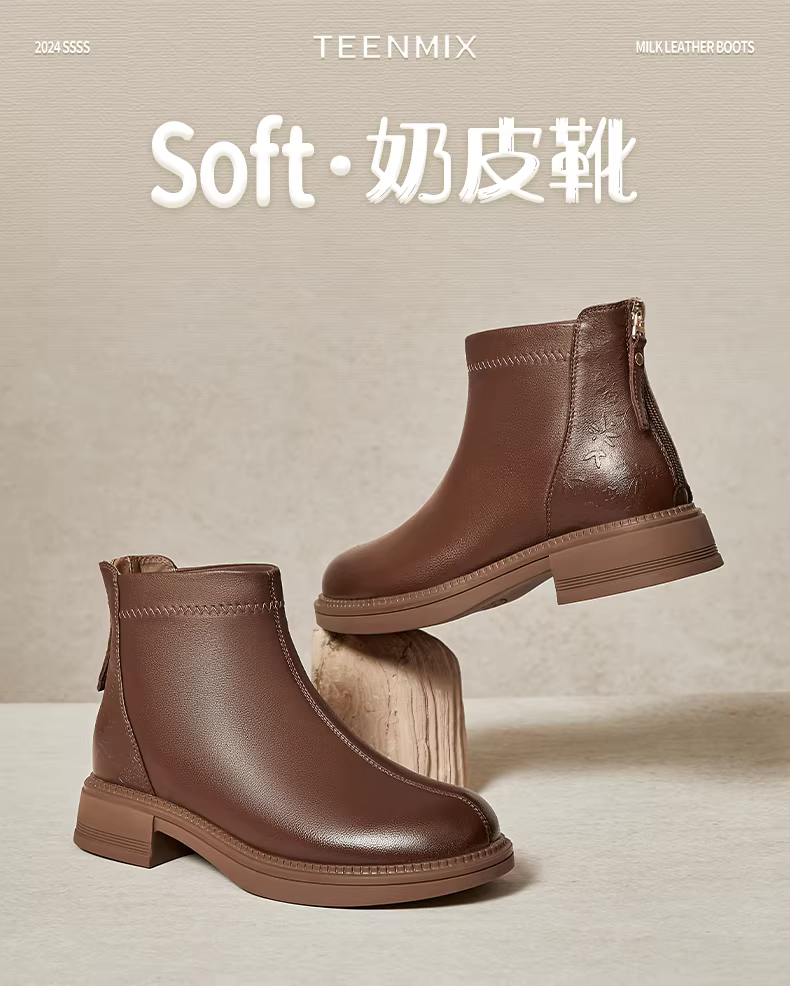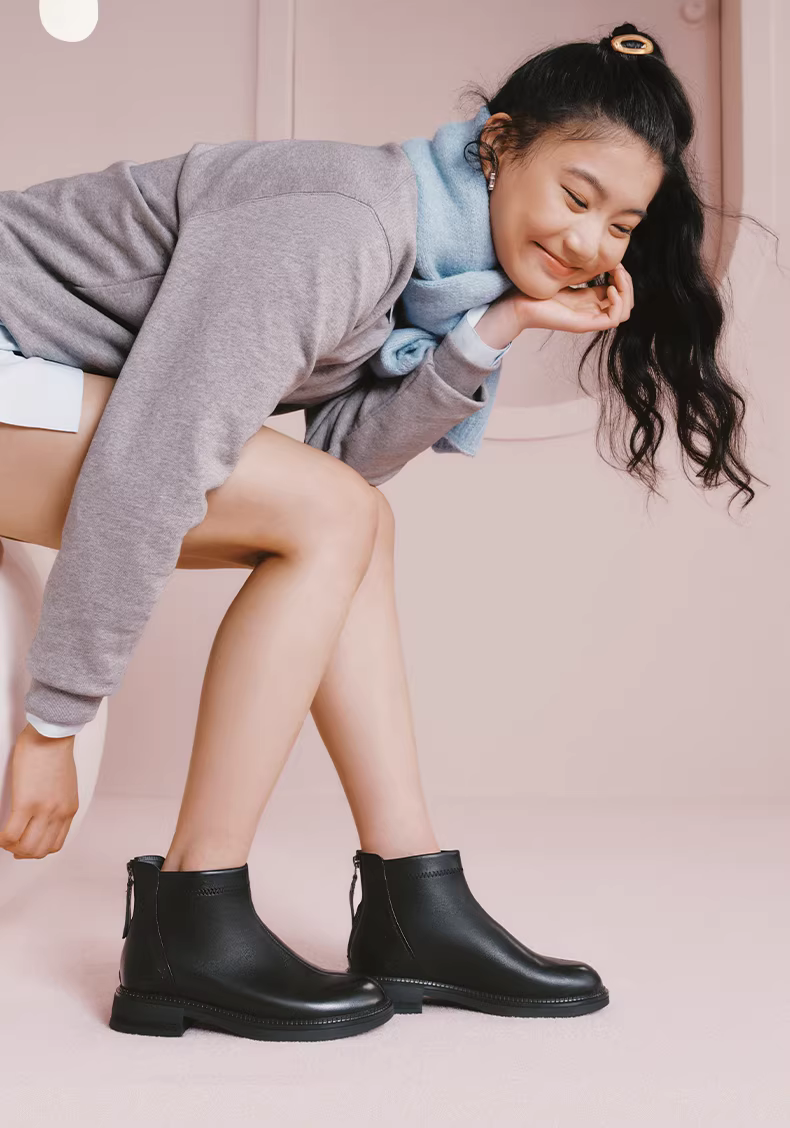 - Giày bốt Chelsea lót lông cừu đế dày cổ điển Tianmeiyi, bốt da, giày nữ, bốt ngắn thời trang giản dị, phong cách mùa đông mới