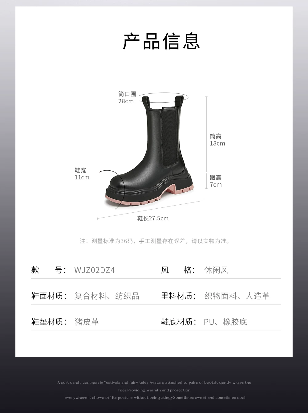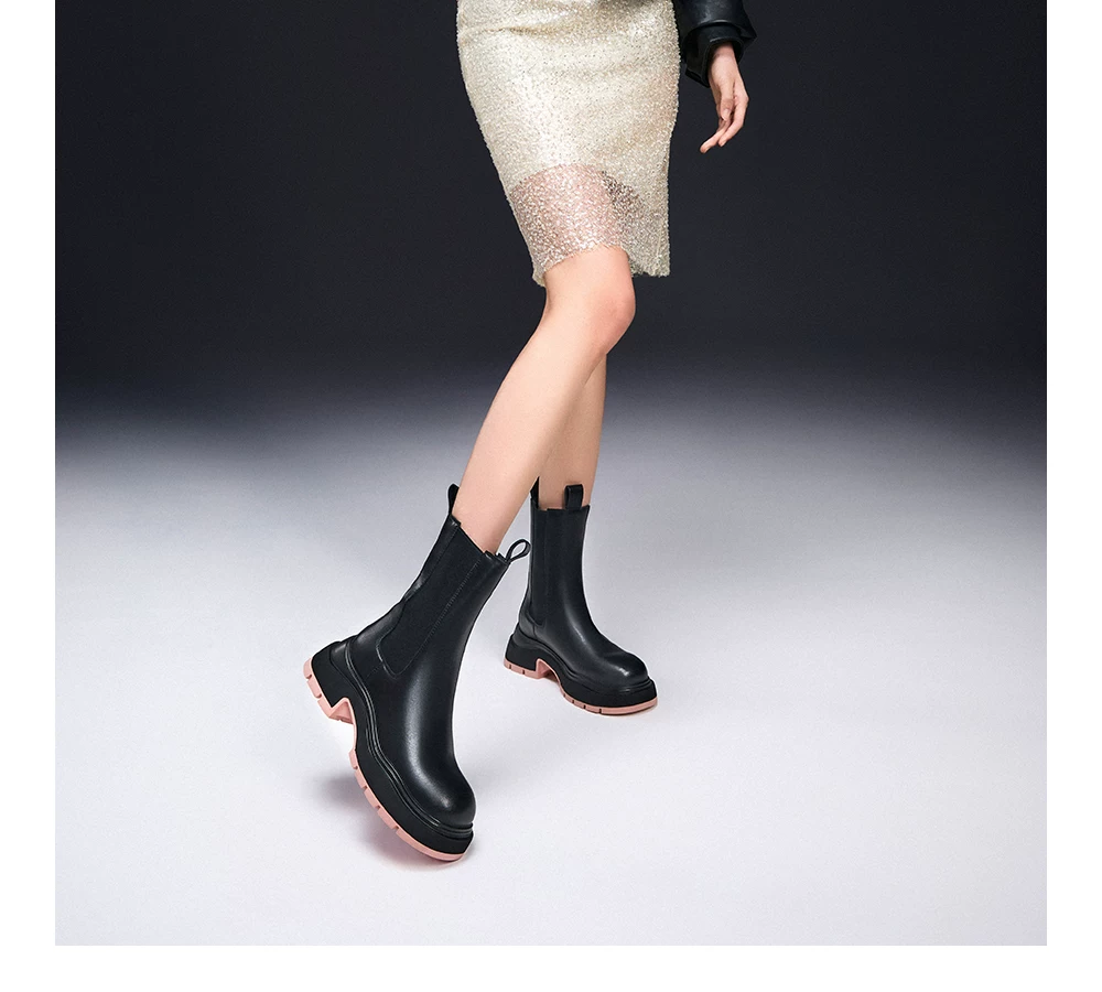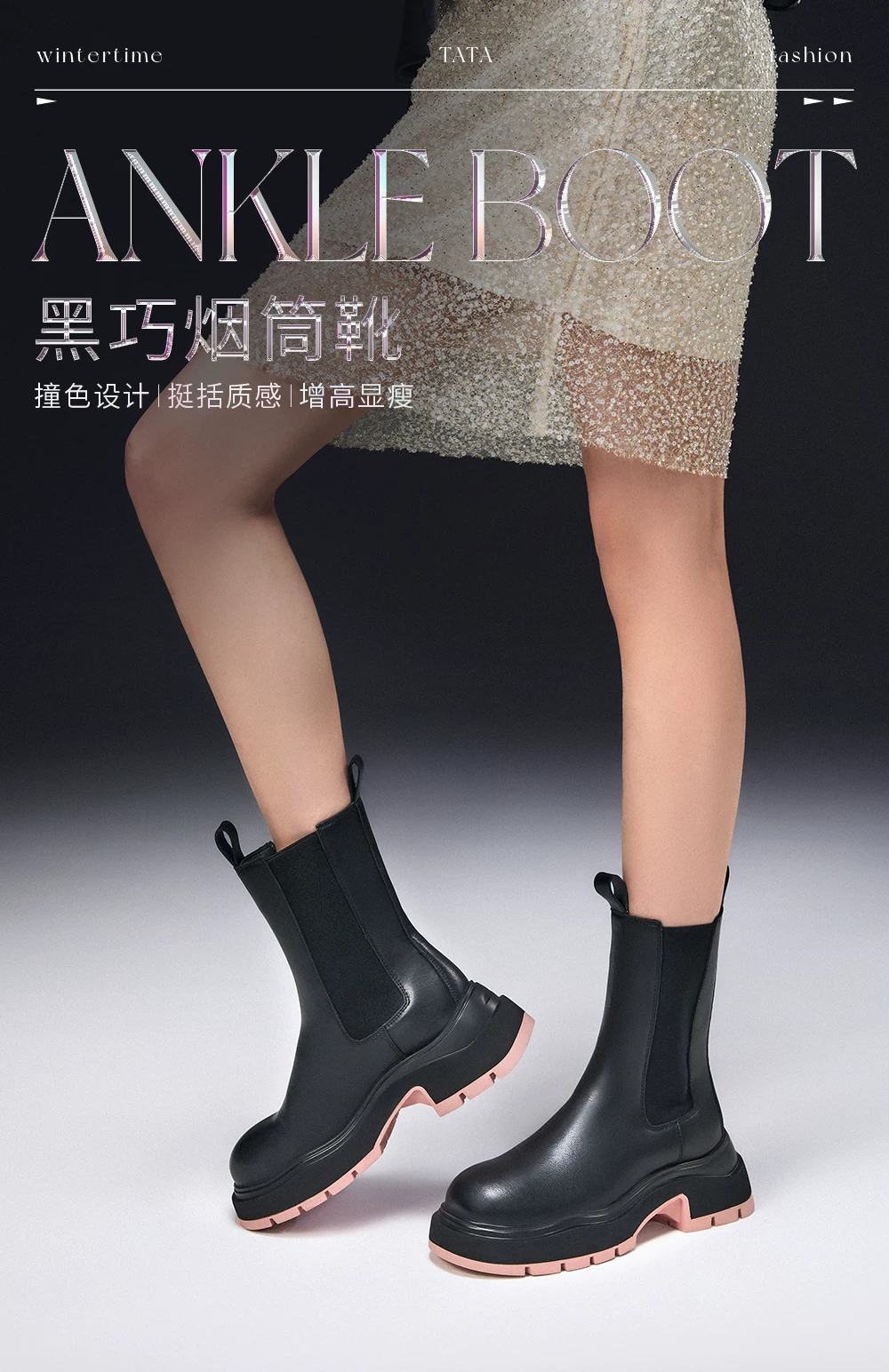 - Giày bốt Chelsea màu đen Tata đế dày và lót lông cừu dành cho nữ, bốt ngắn mùa đông WJZ02DZ4