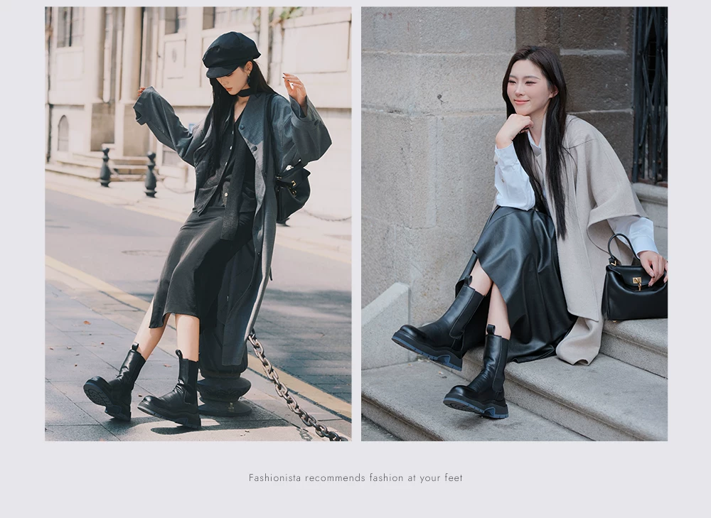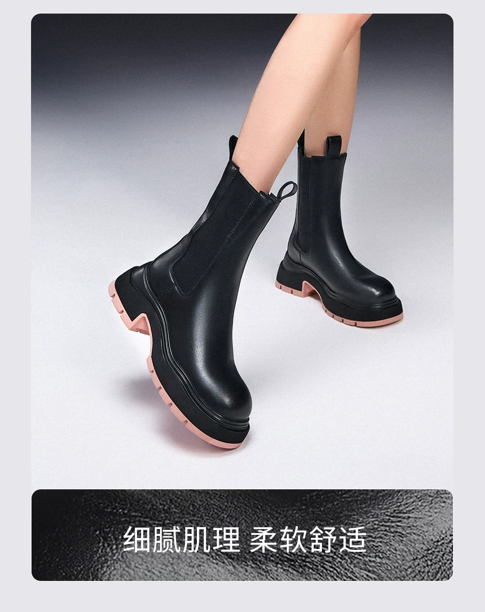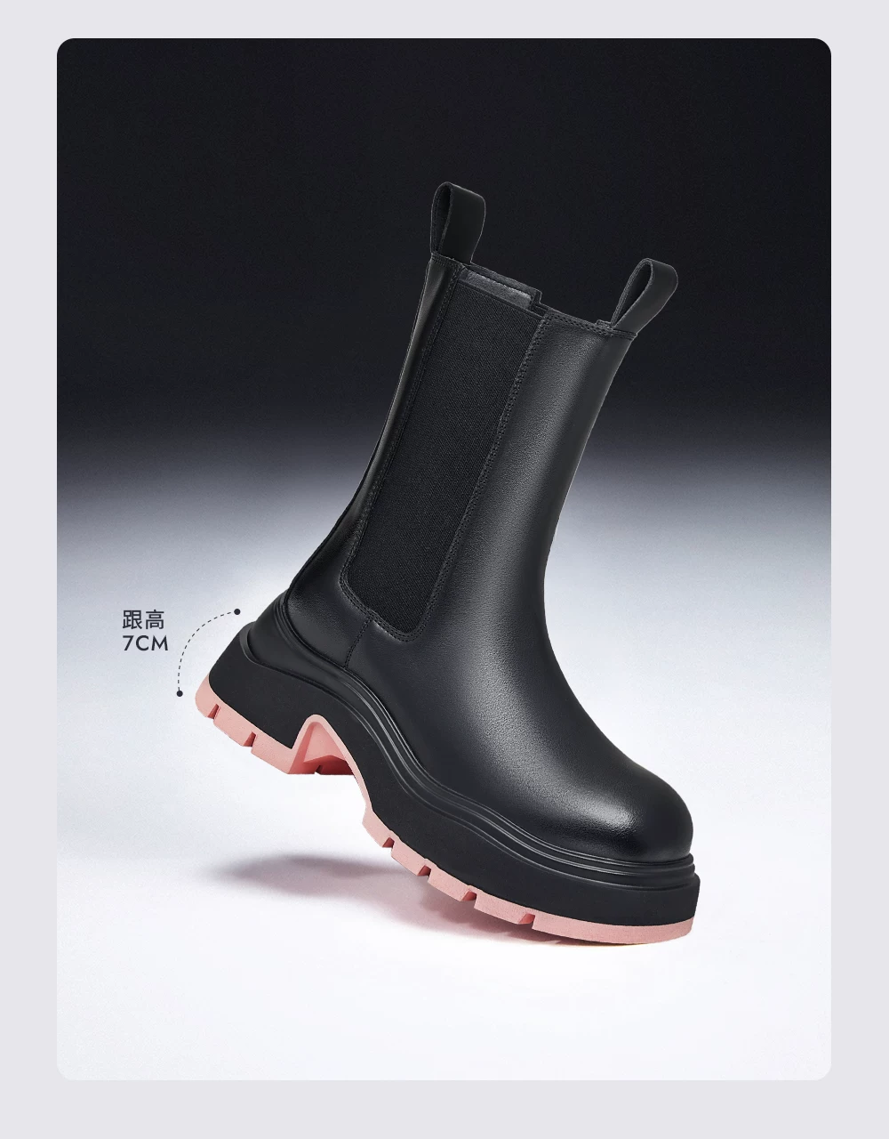 - Giày bốt Chelsea màu đen Tata đế dày và lót lông cừu dành cho nữ, bốt ngắn mùa đông WJZ02DZ4
