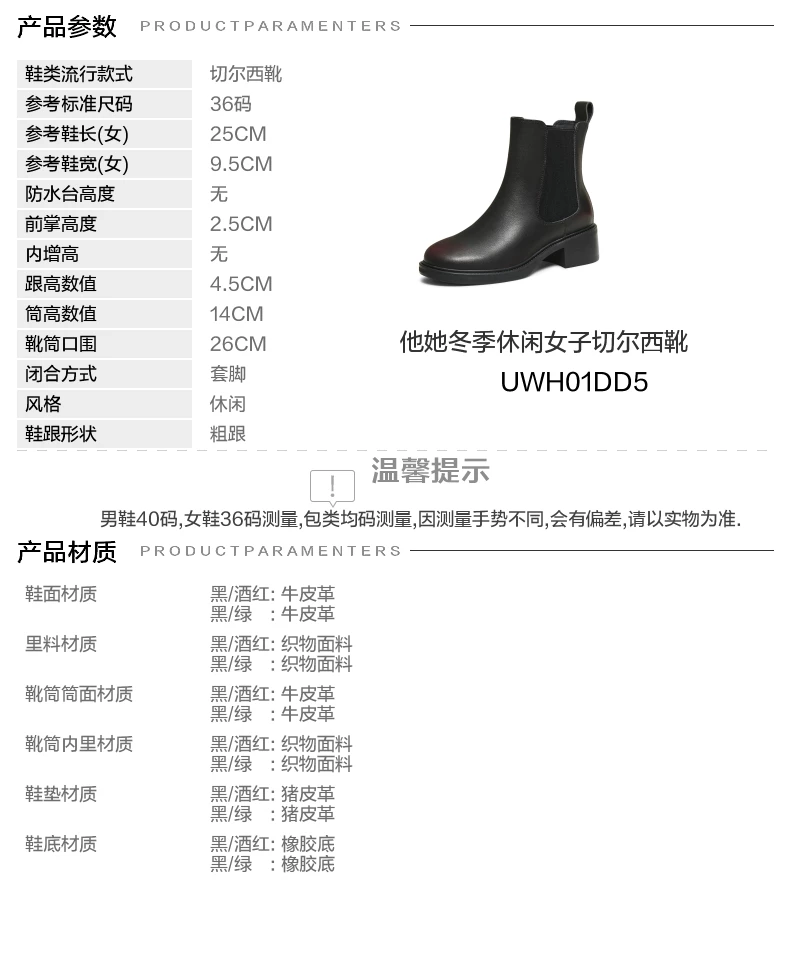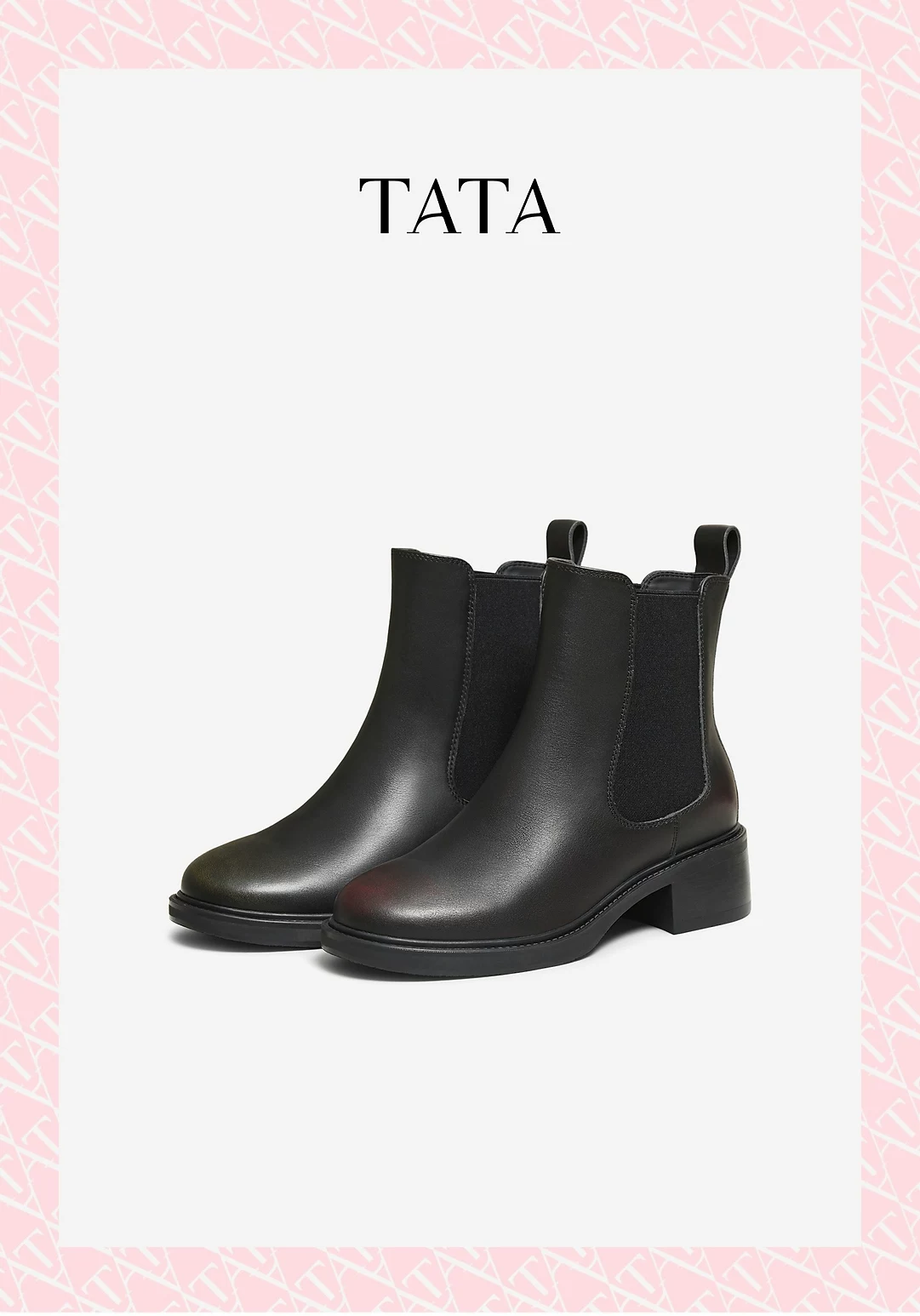 - Giày bốt Chelsea nữ TATA mùa đông 2025 kiểu mới, bốt ngắn màu đen, bốt da nhỏ gọn, kiểu dáng ôm chân UWH01DD5
