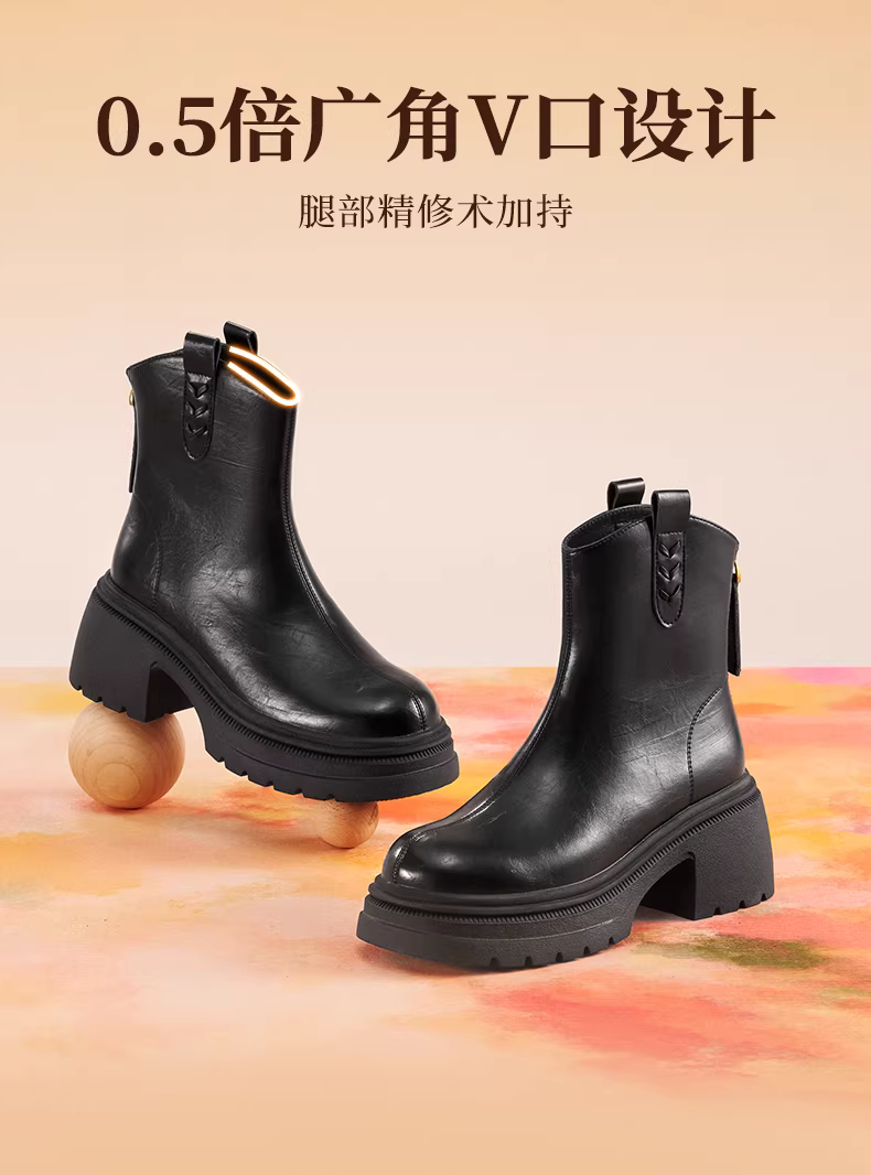 - Giày bốt Chelsea thời trang đế dày tăng chiều cao kiểu retro Tianmeiyi, chất liệu da, kiểu dáng mới mùa đông 2025, dành cho nữ.