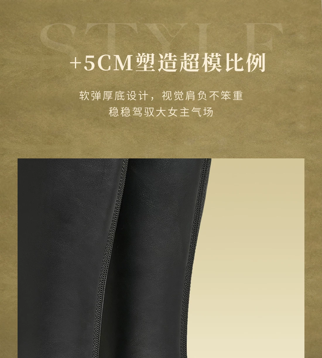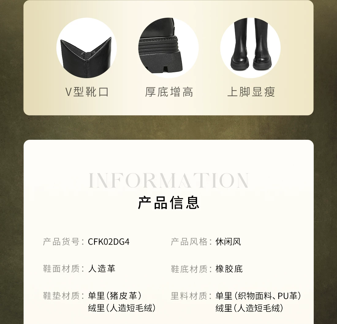 Giày bốt chữ V nhỏ co giãn kiểu Tata của Chu Jieqiong, bốt cưỡi ngựa, bốt dài đế dày, bốt nữ, mùa đông CFK02DG4