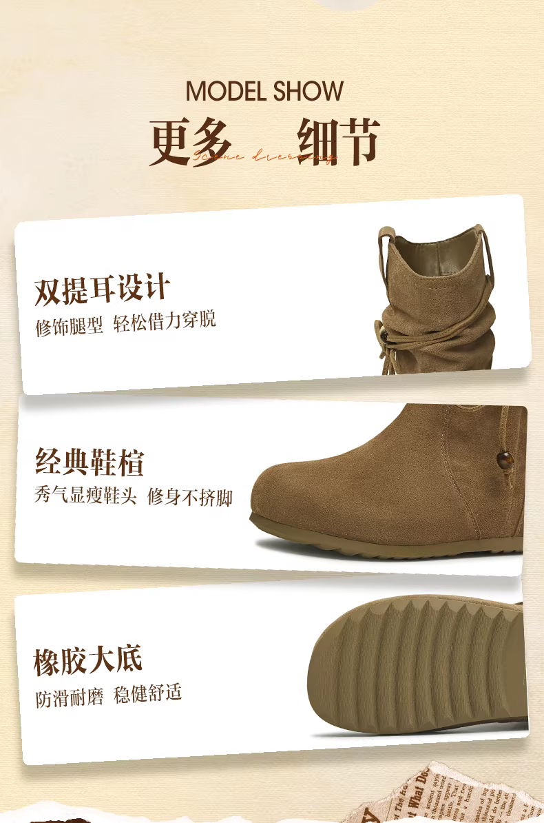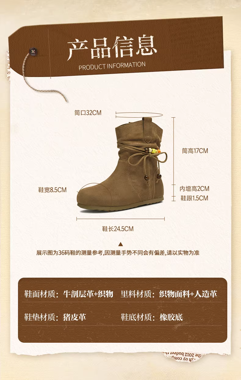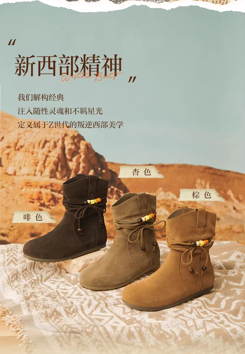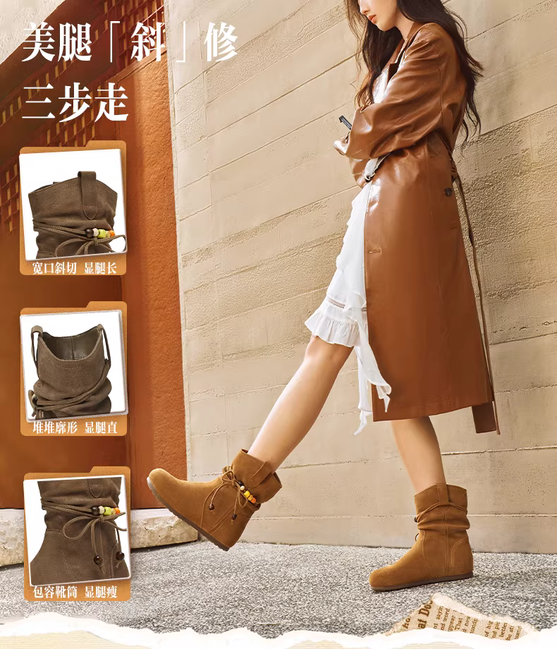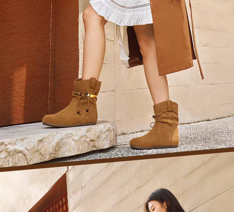- Giày bốt cổ cao kiểu retro tăng chiều cao Tianmeiyi, bốt đế xuồng, bốt ngắn nữ tính, mẫu mới mùa đông 2025 KXZ18DZ5