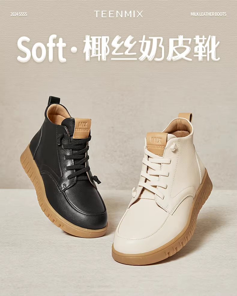 - Giày bốt cổ điển đế mềm Tianmeiyi có lông cừu, bốt thời trang, giày nữ, bốt ngắn đế dày, bốt da, phong cách mùa đông mới